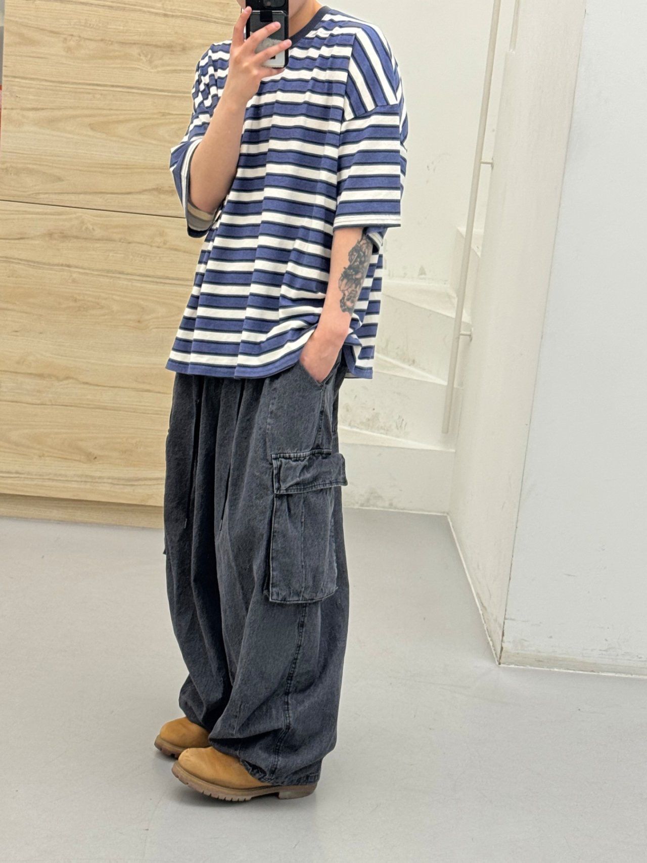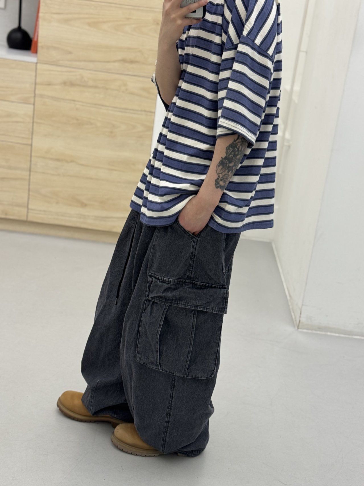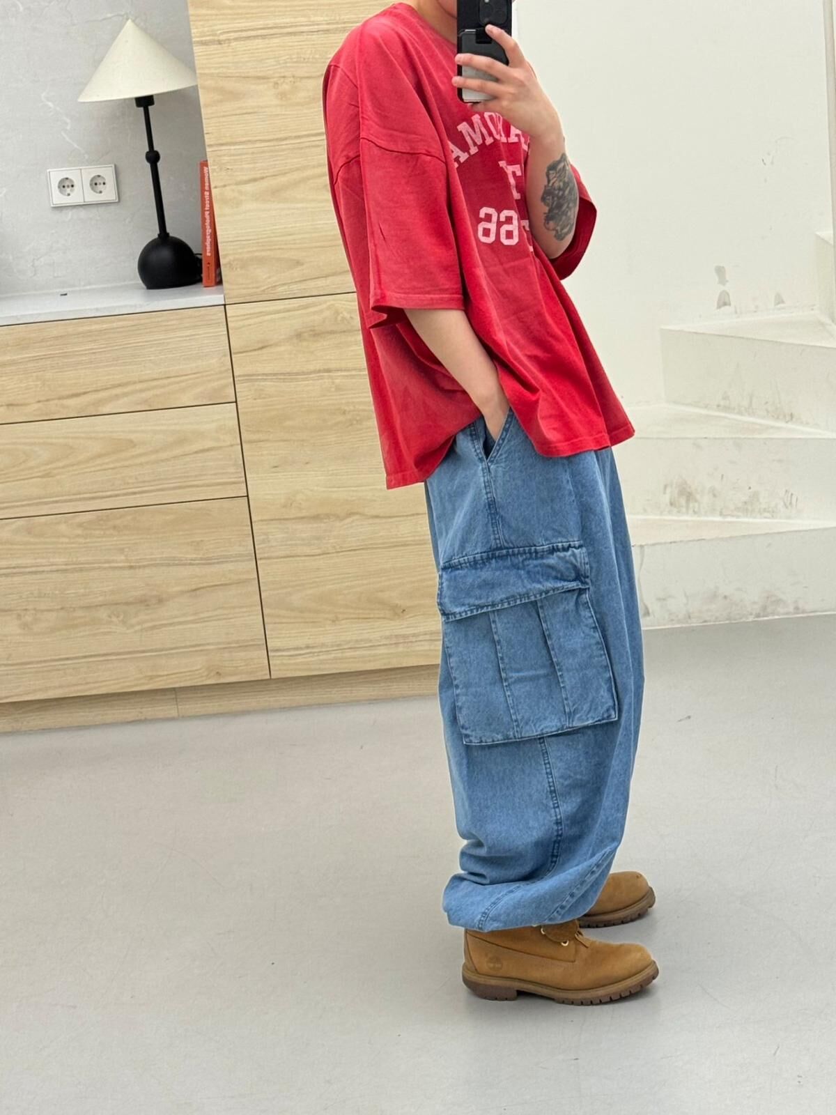 洗水可束腳工裝牛仔鬆身褲 FARMERS-133J