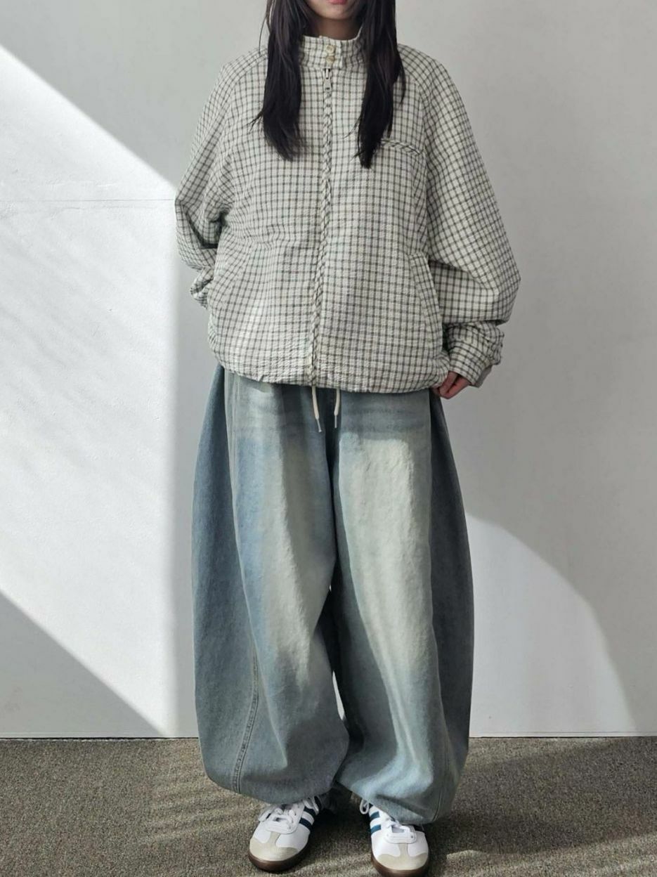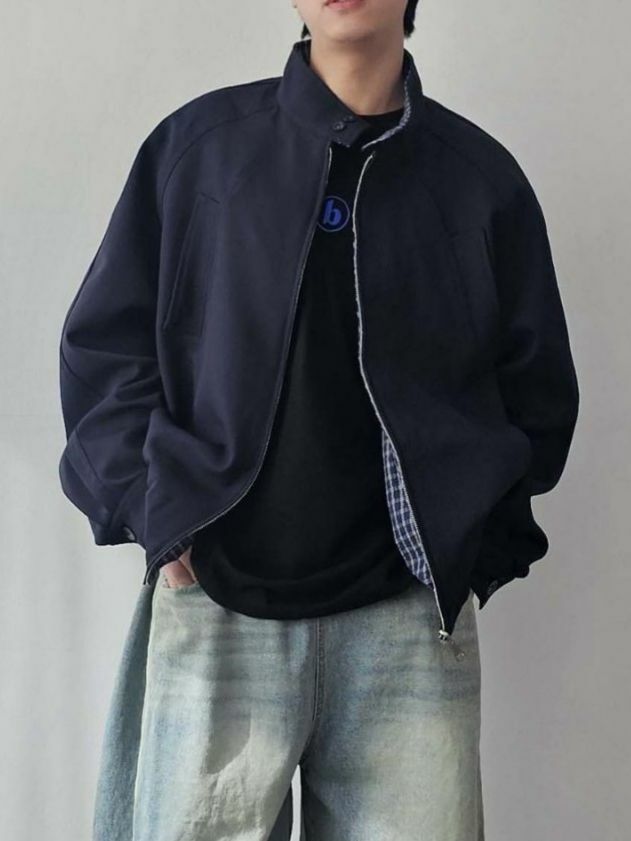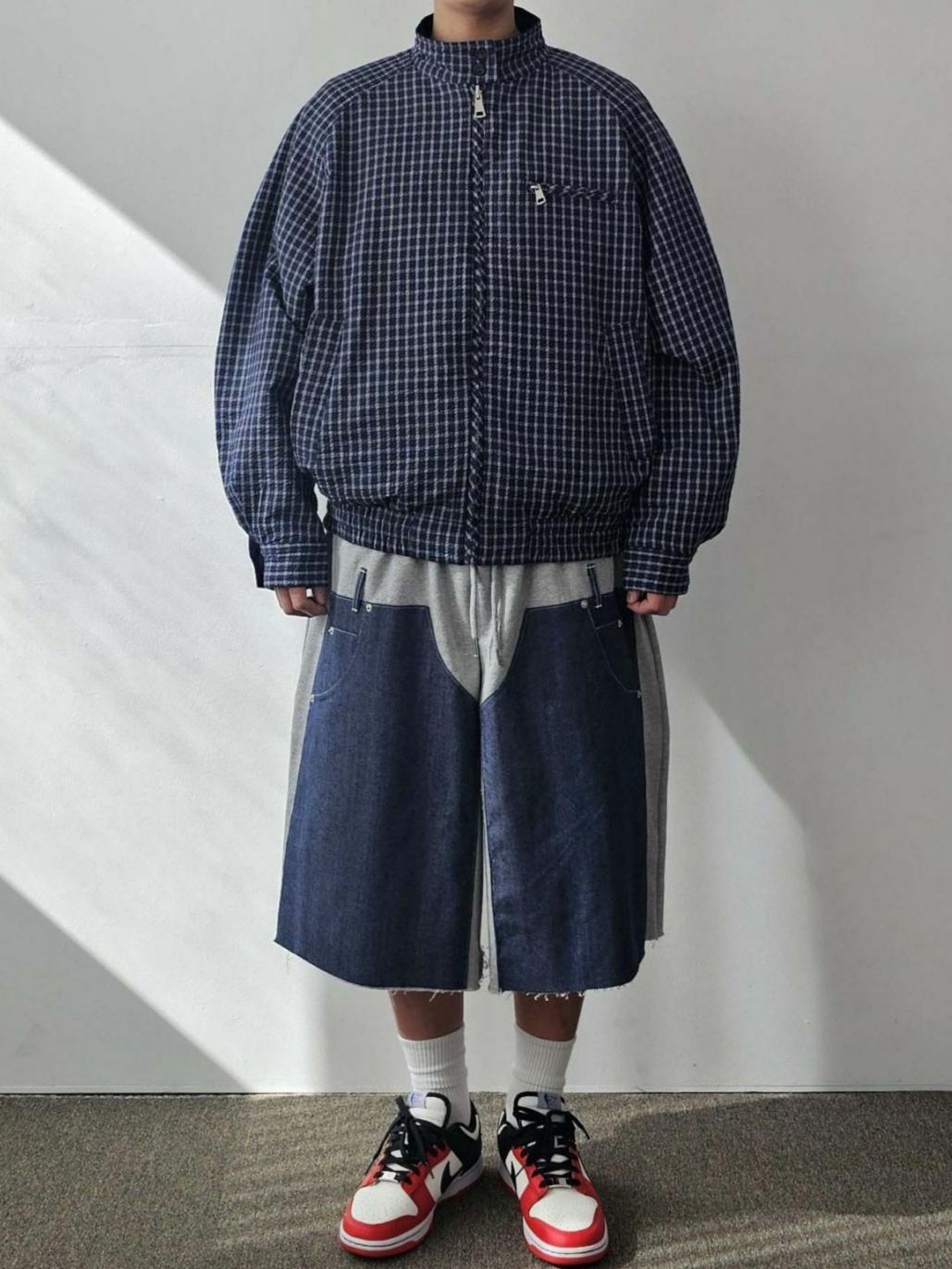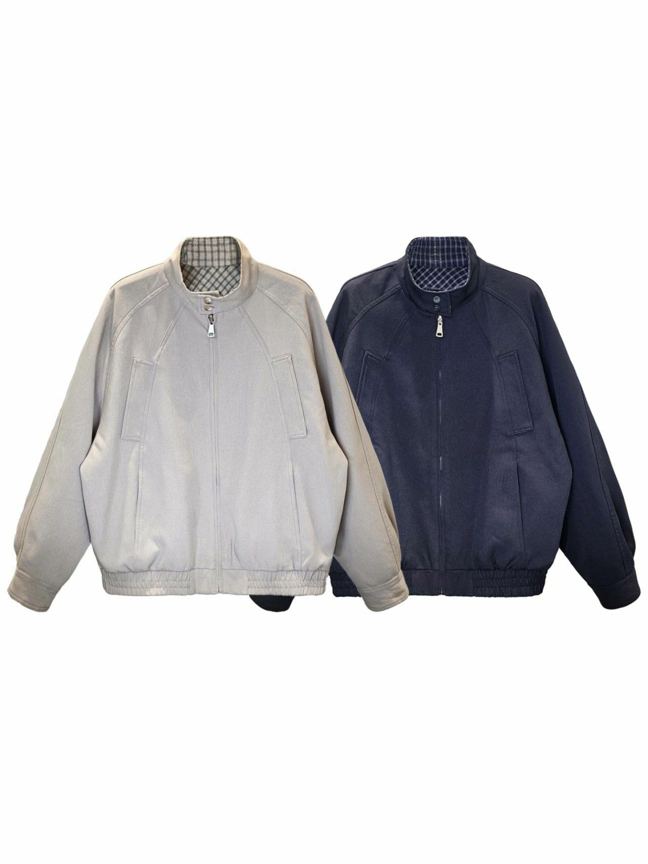 企領拼格仔拉鍊外套(雙面)F&c-060JK