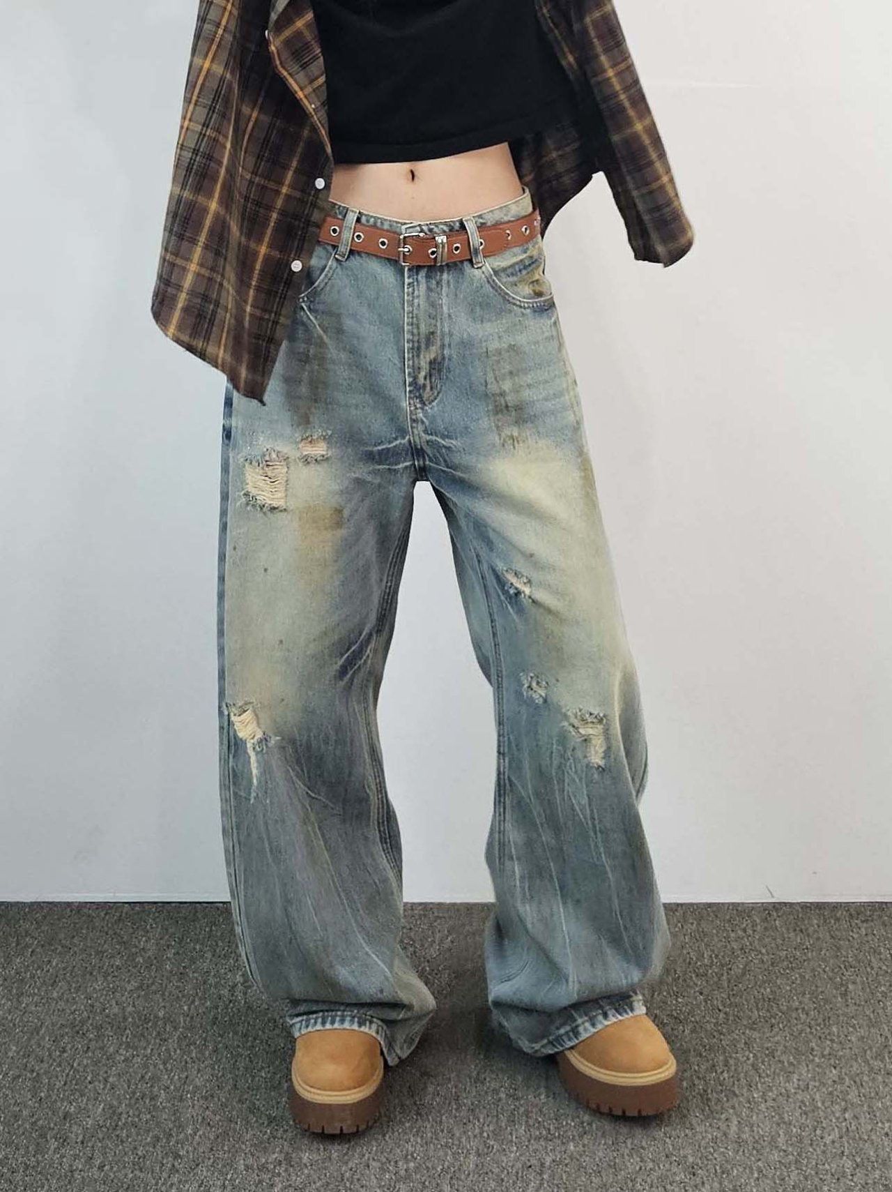 洗水破洞鬆身牛仔褲 F&c-094P