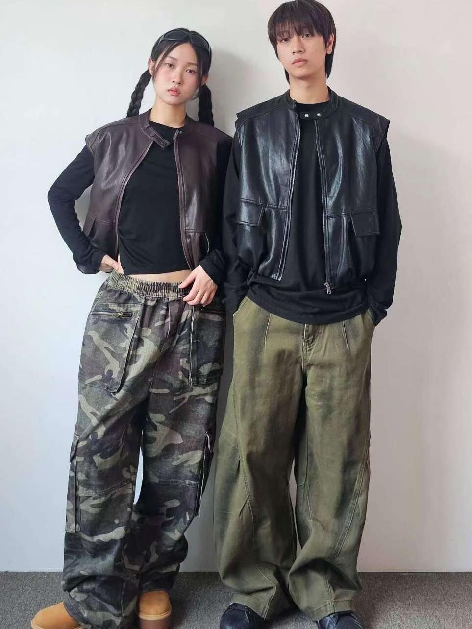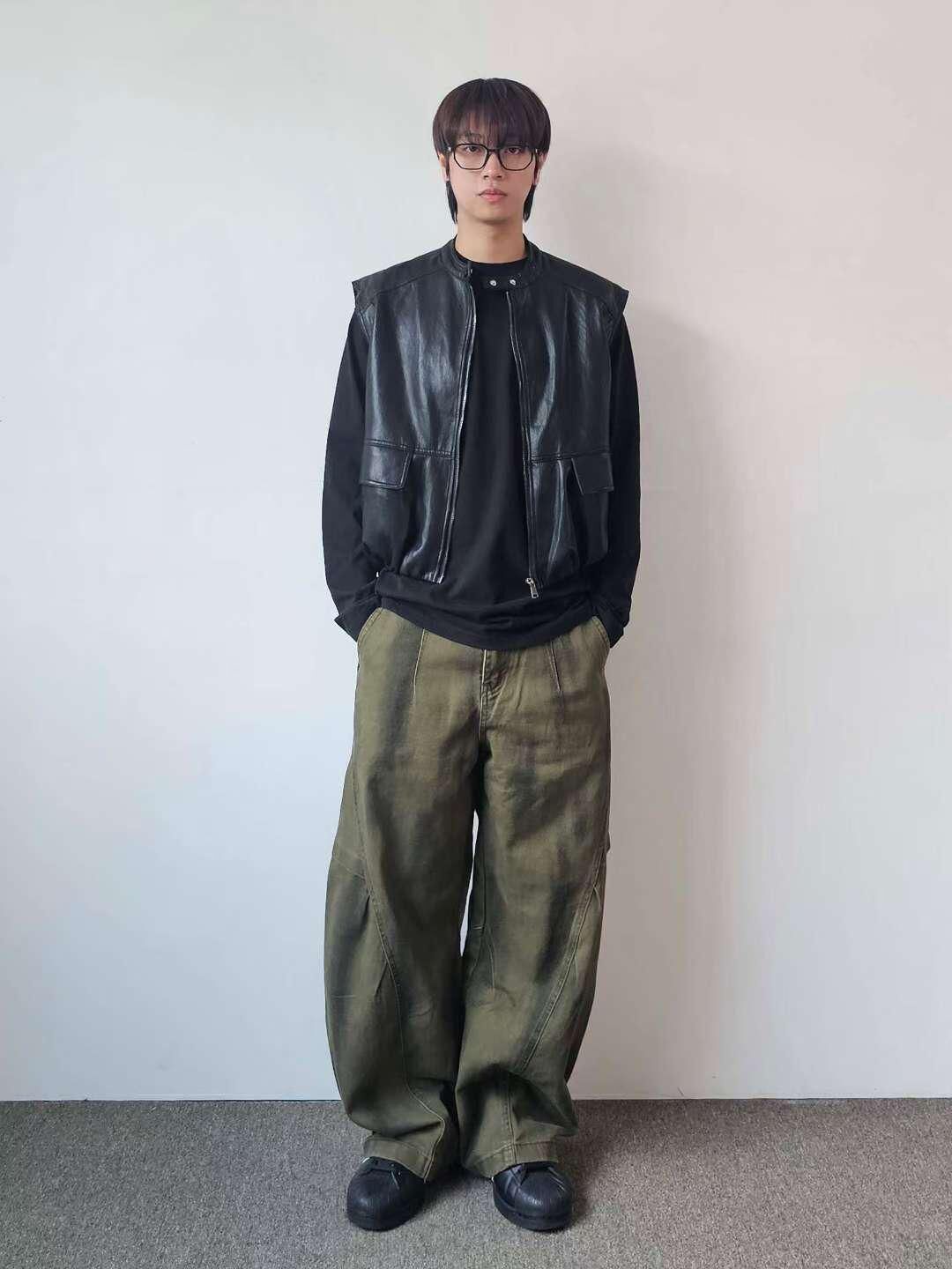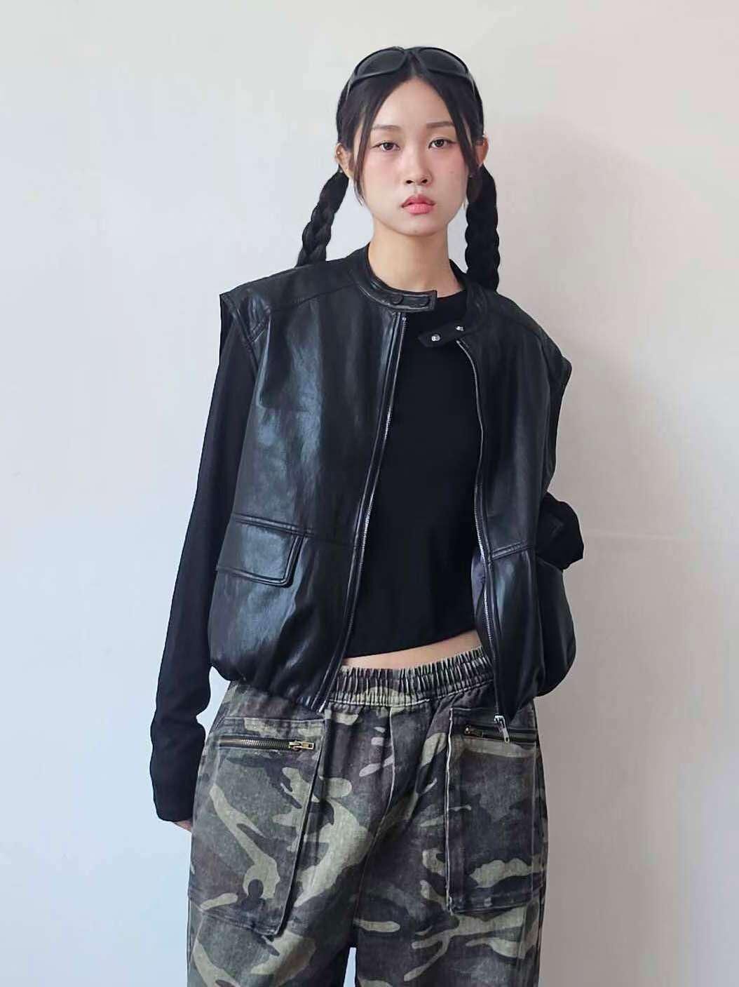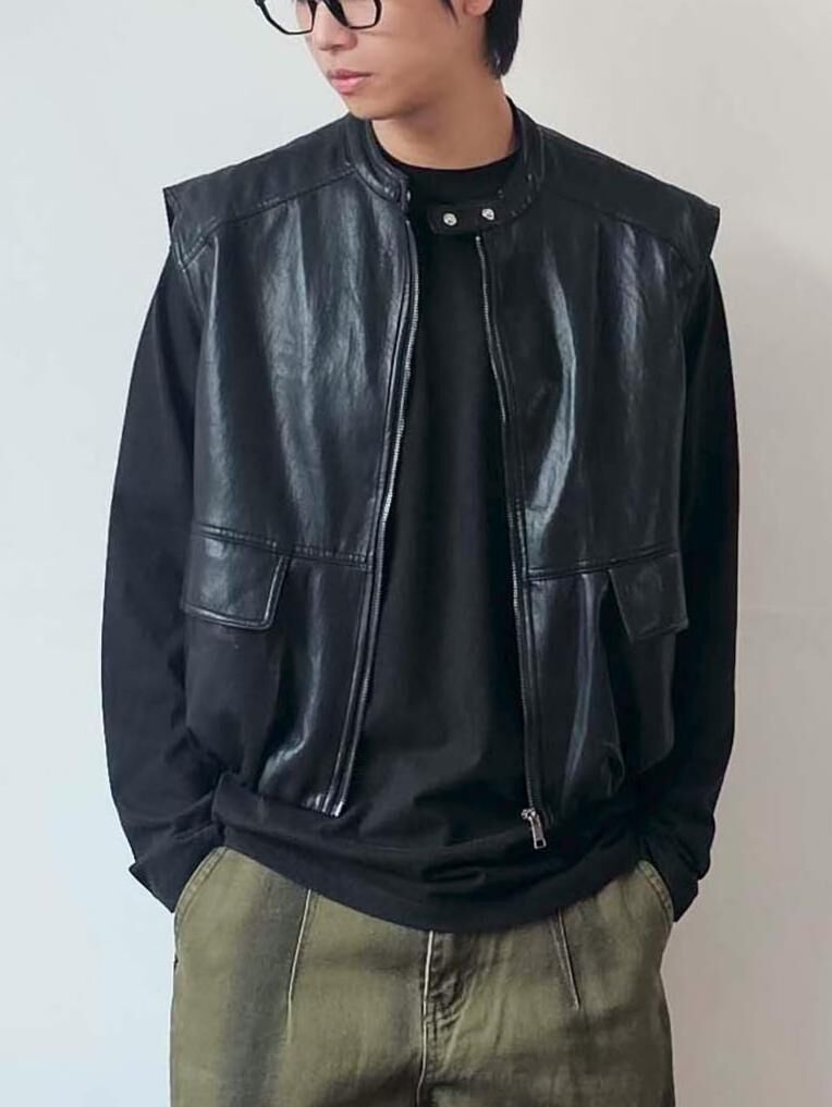 企領合成皮拉鍊背心褸 F&c-103V