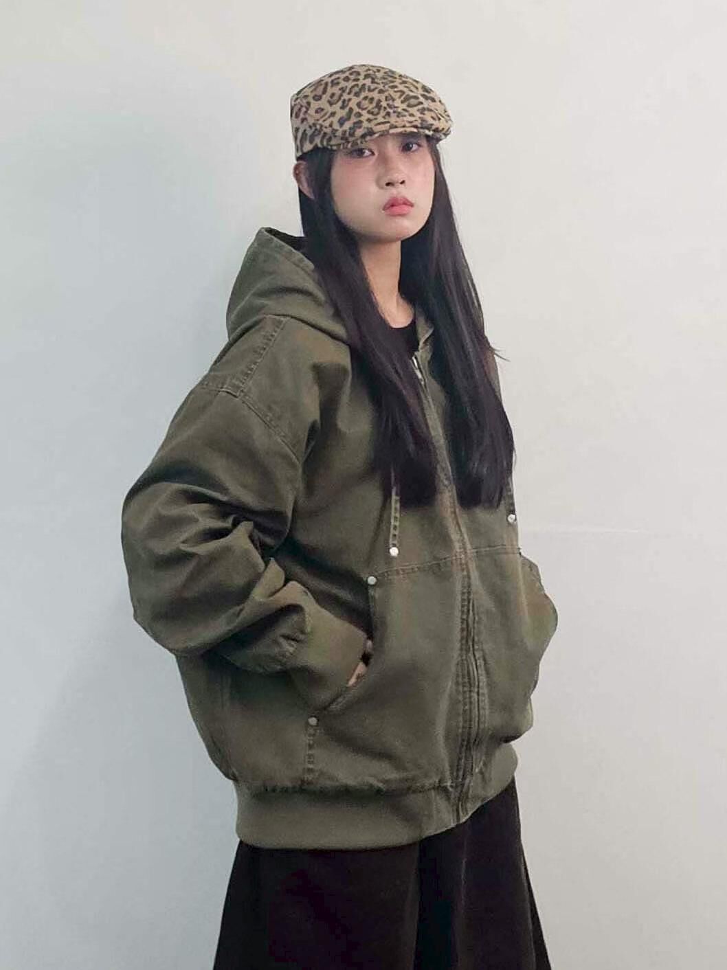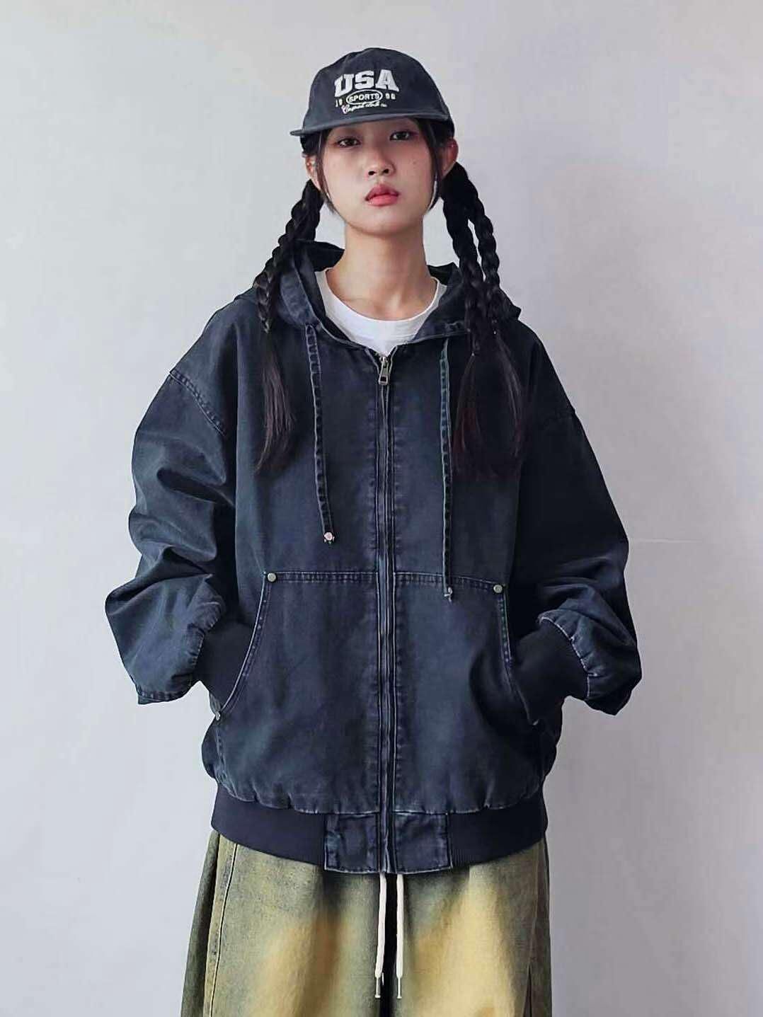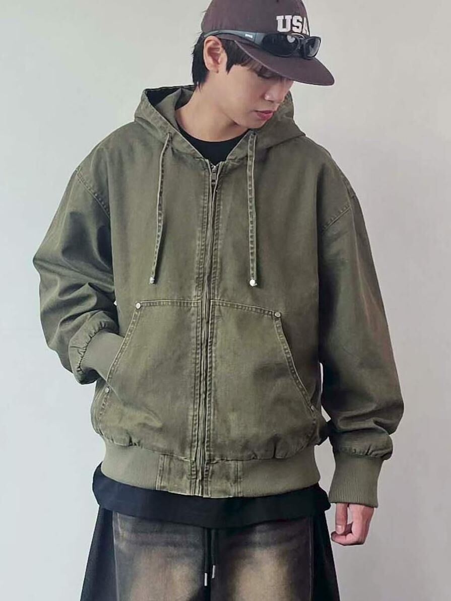 洗水淨色連帽拉鍊外套 F&c-112JK