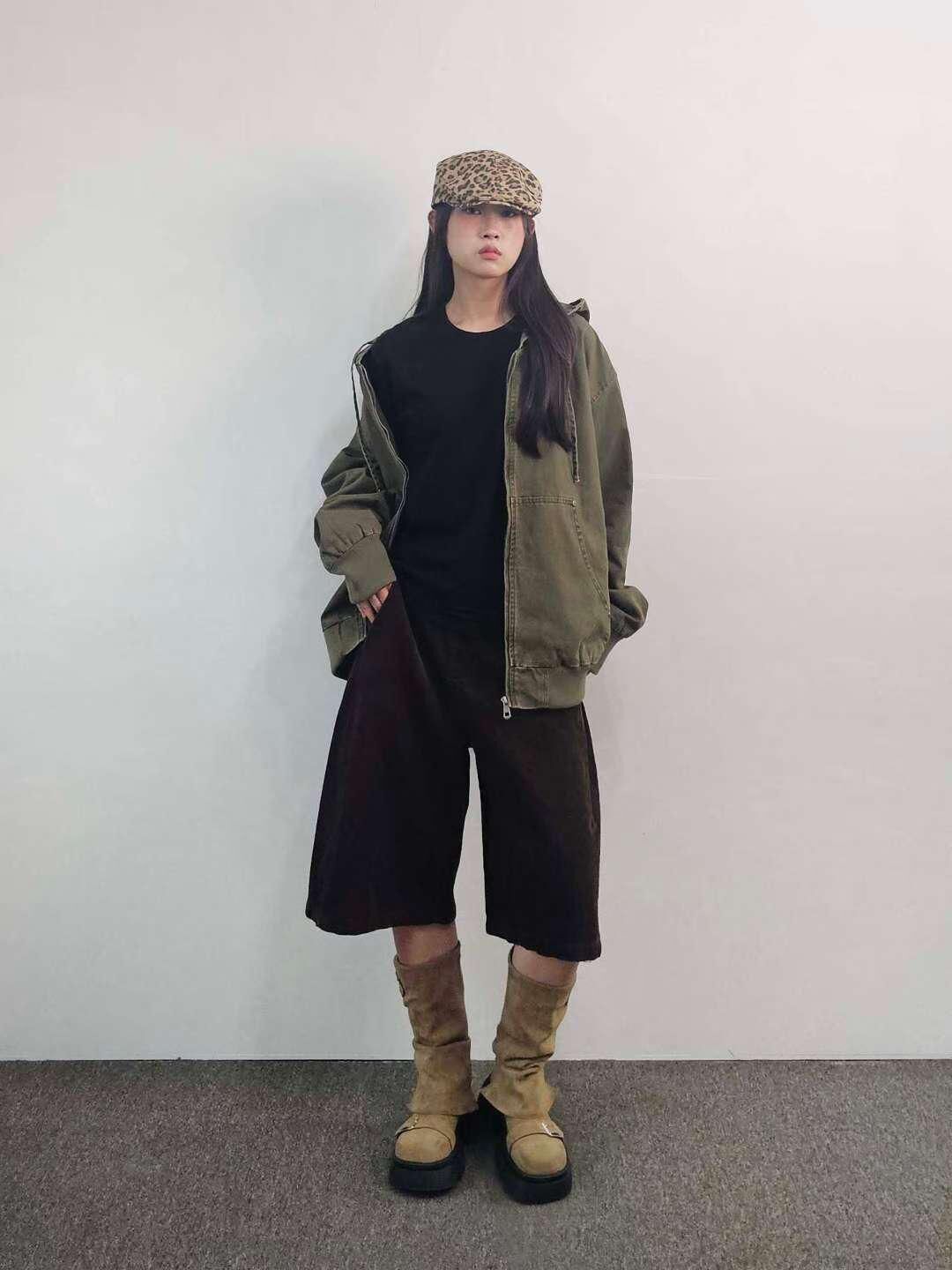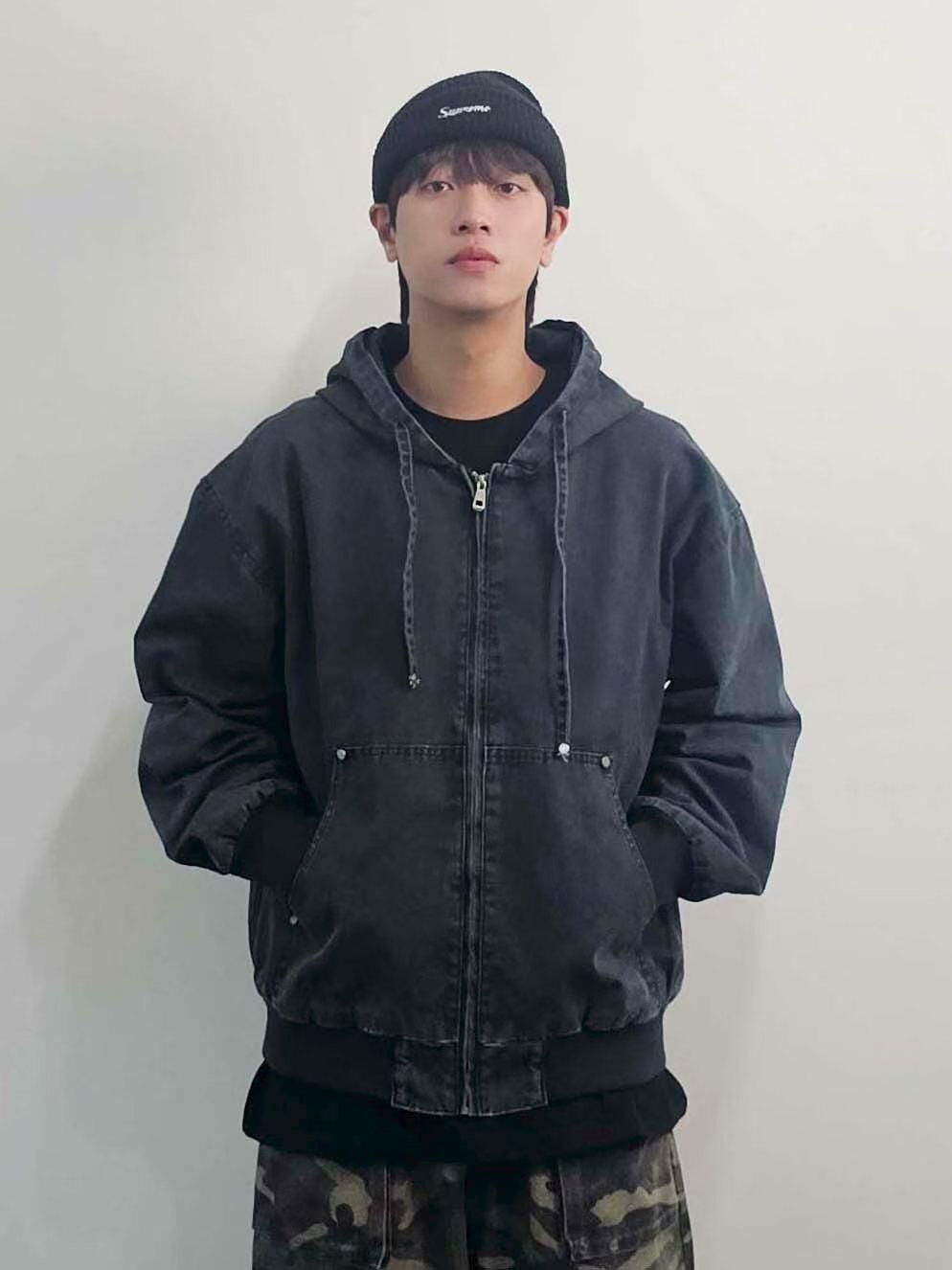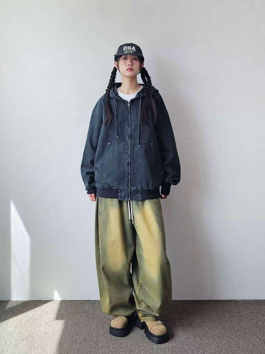 洗水淨色連帽拉鍊外套 F&c-112JK