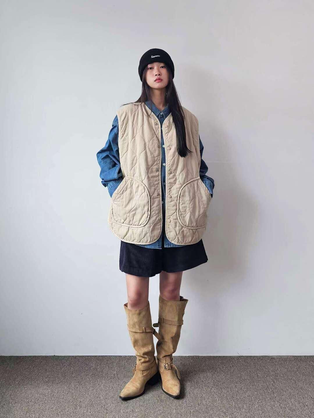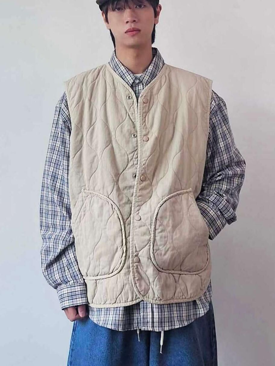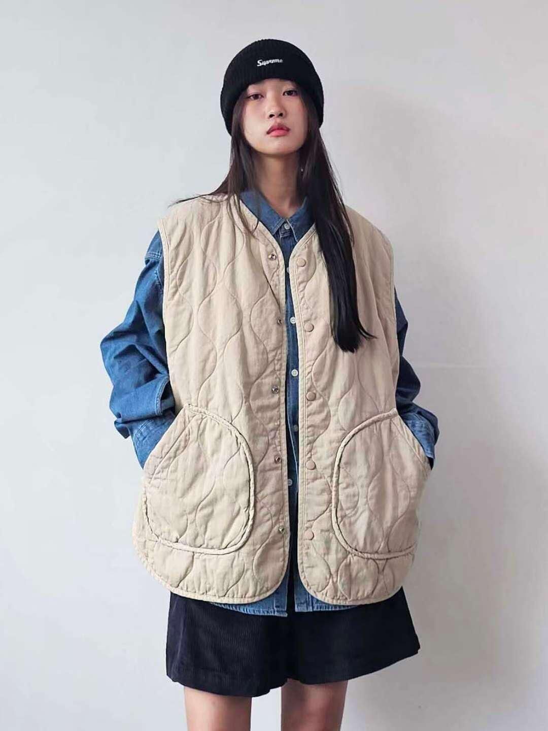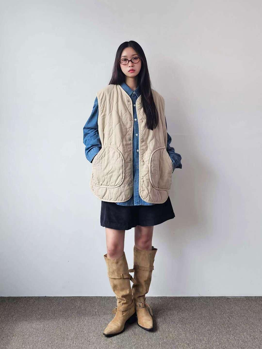 暗格紋開胸背心褸(薄夾棉) F&c-114V