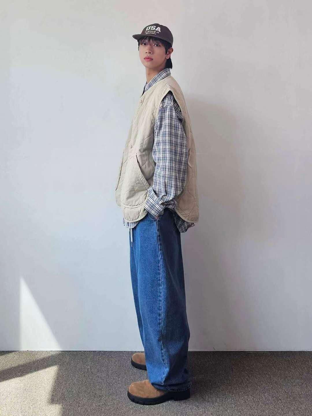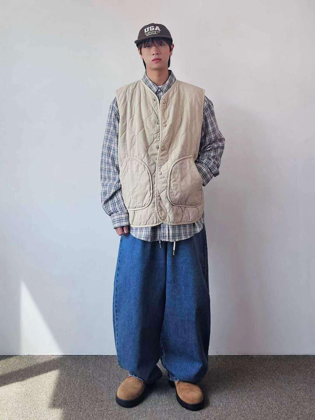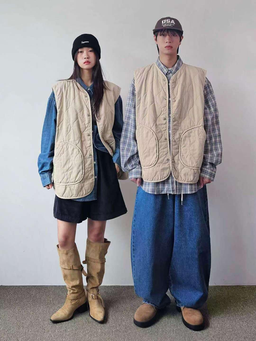 暗格紋開胸背心褸(薄夾棉) F&c-114V