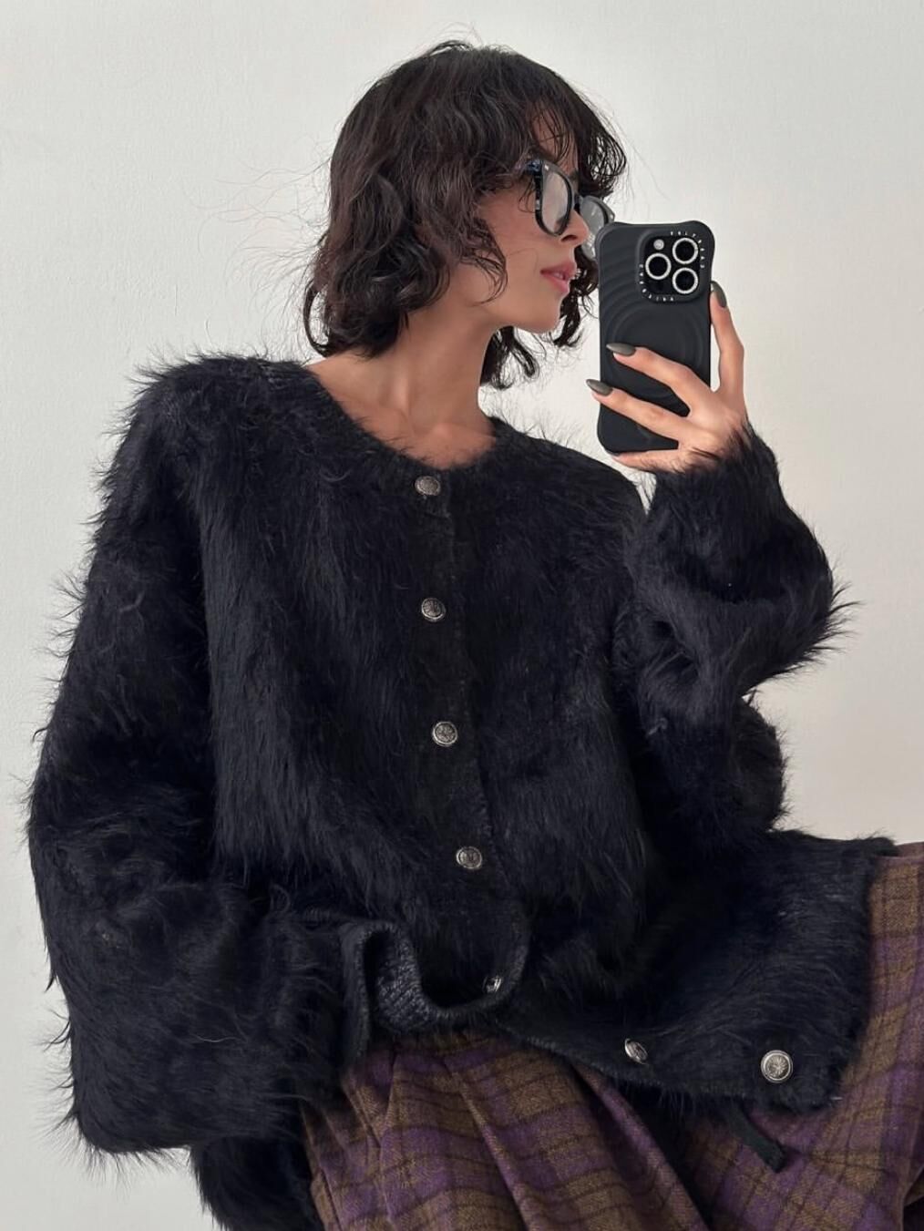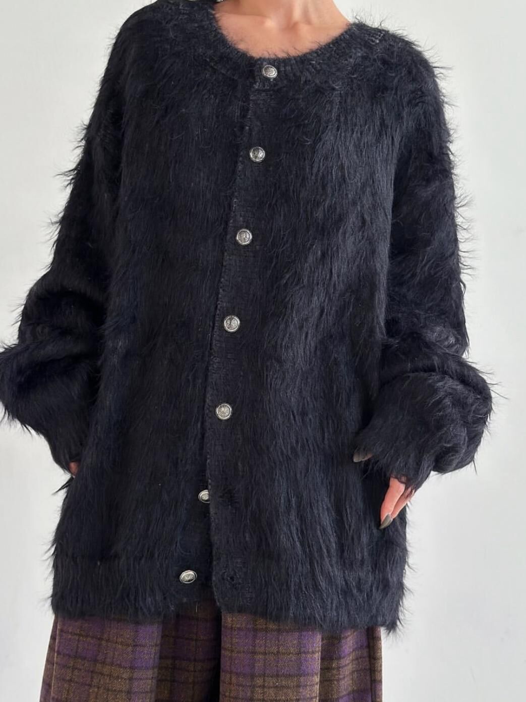 淨色毛毛開胸針織外套 FLEUR-016JK