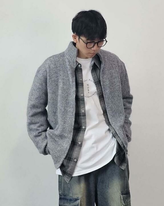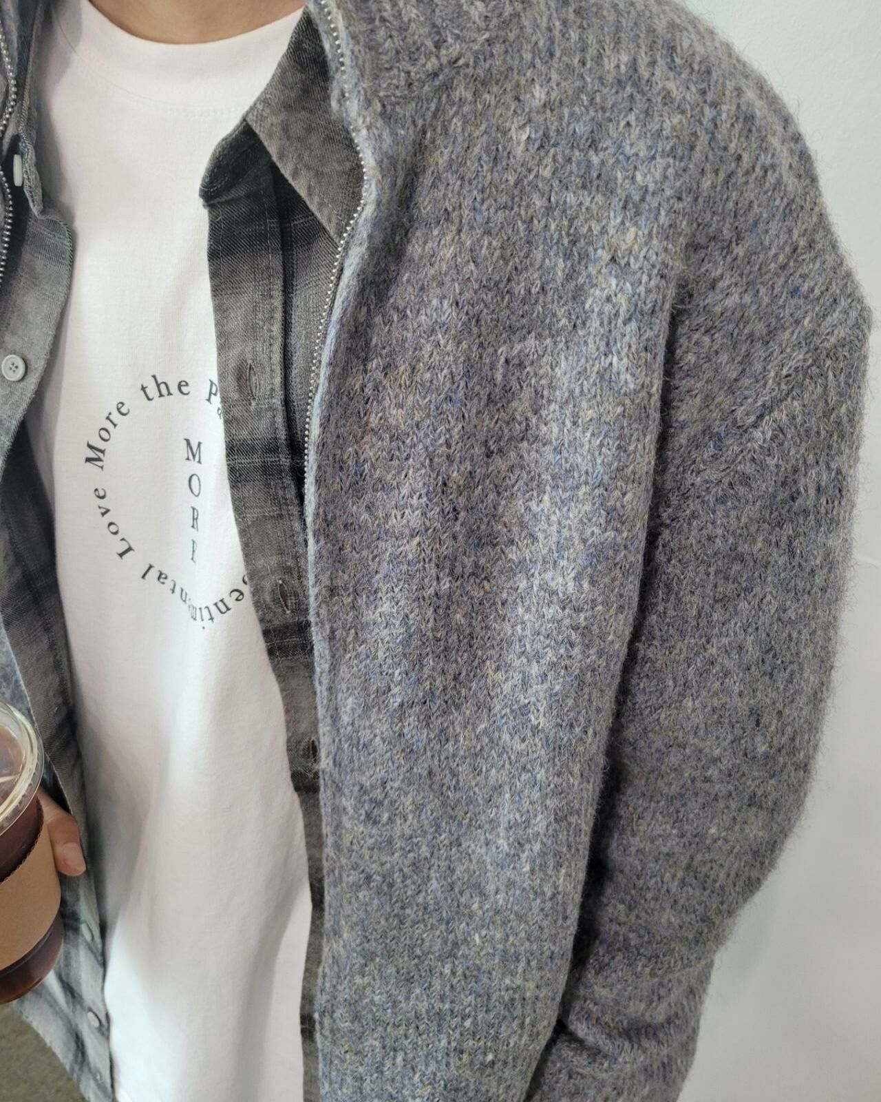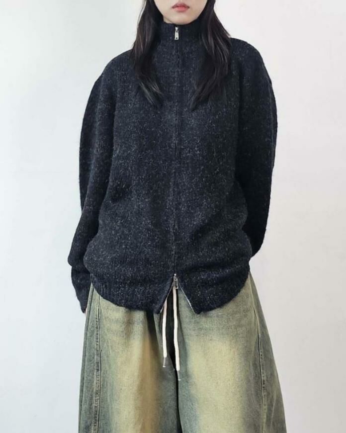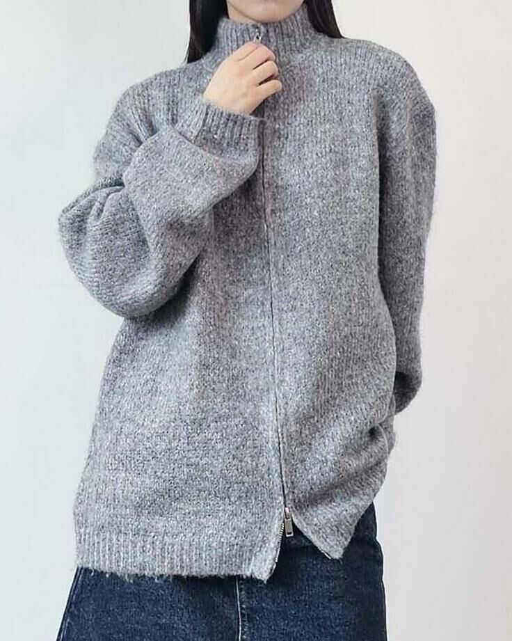 淨色企領拉鍊針織外套 Floor&co-031JK