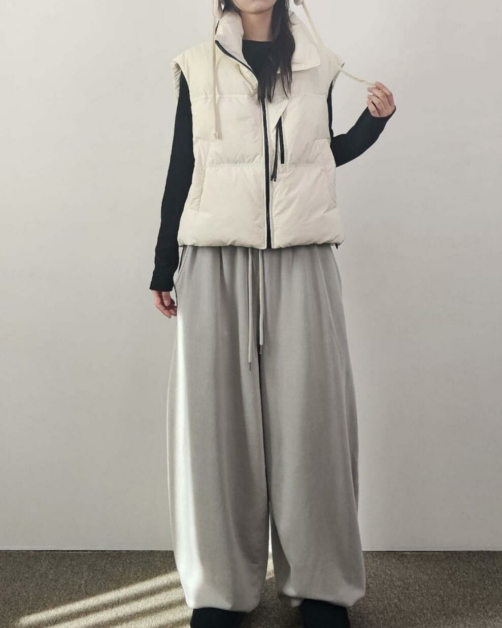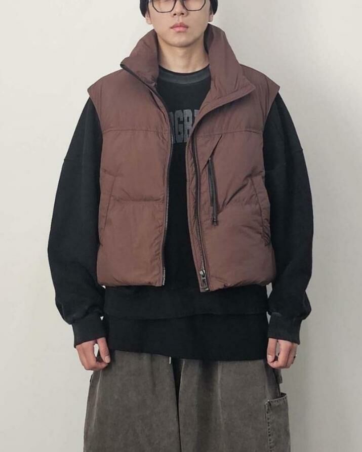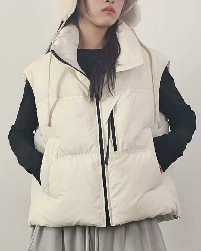 淨色反領拉鍊背心褸(夾棉) Floor&co-038V