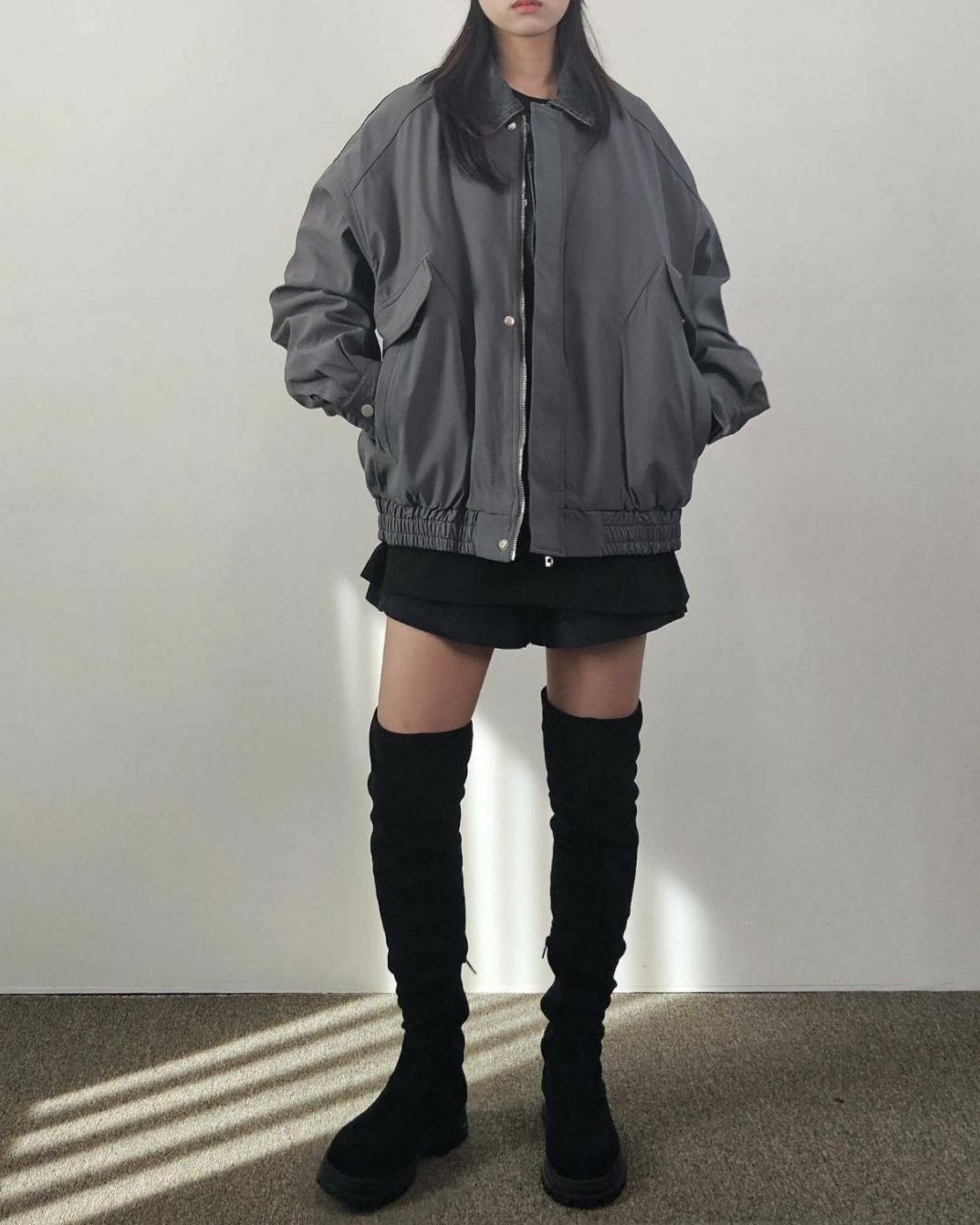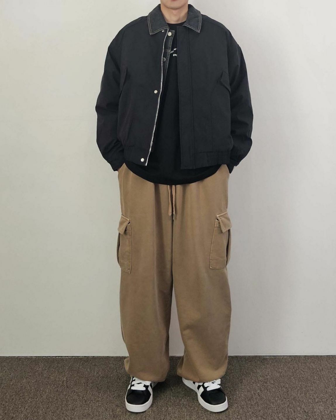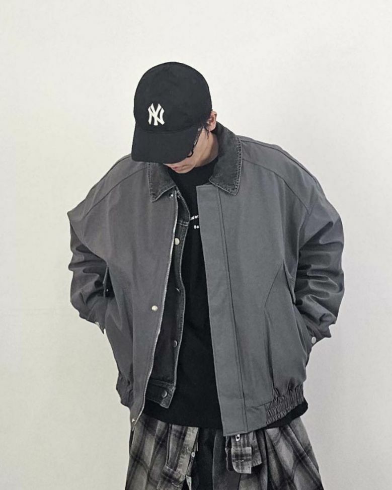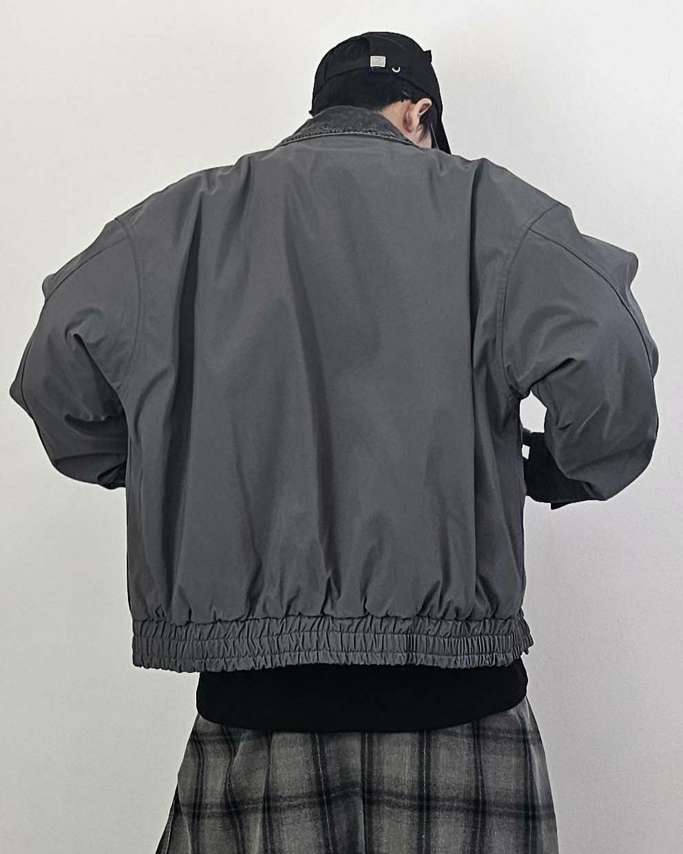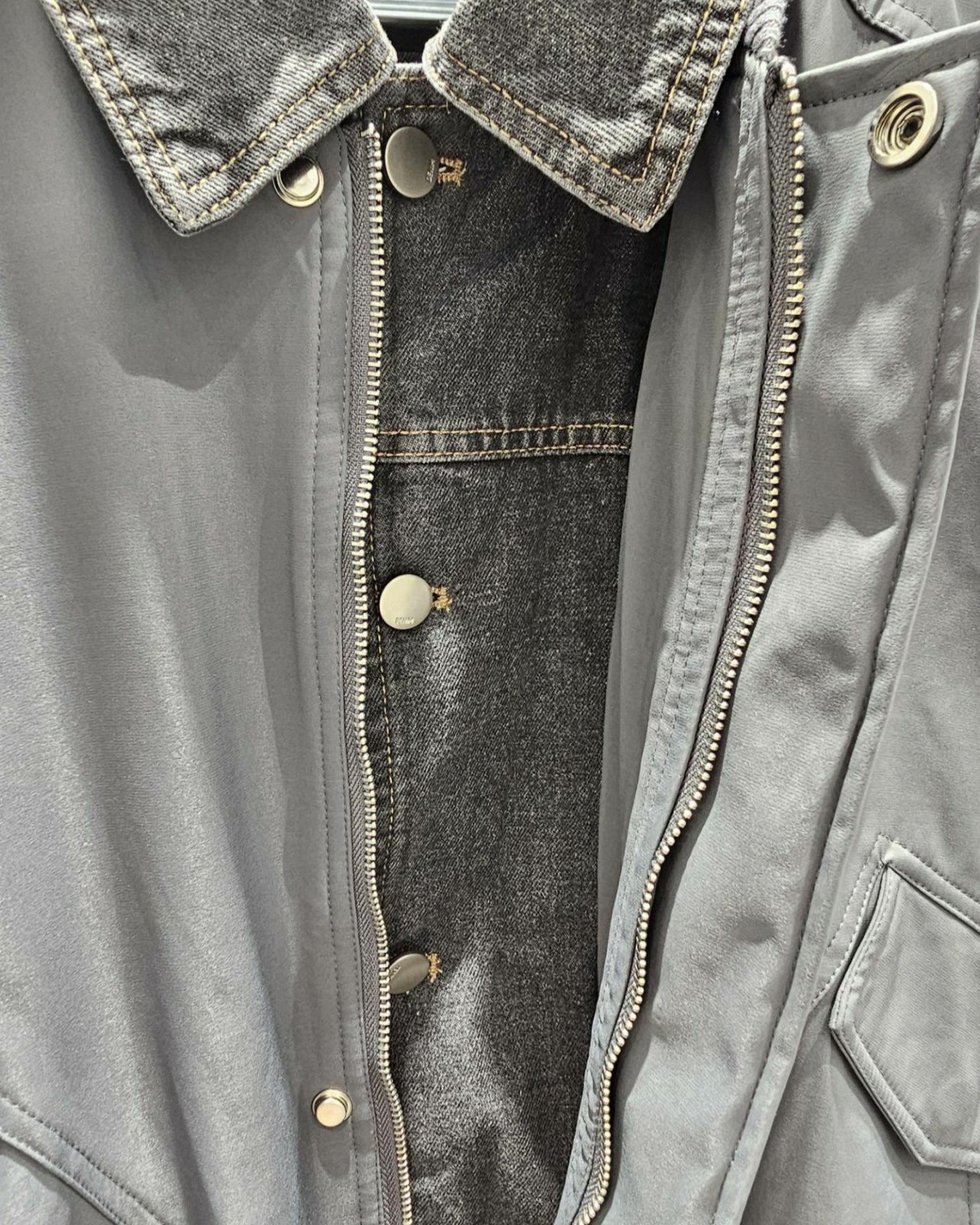 拼牛仔領拉鍊外套(薄夾棉) Floor&co-043JK