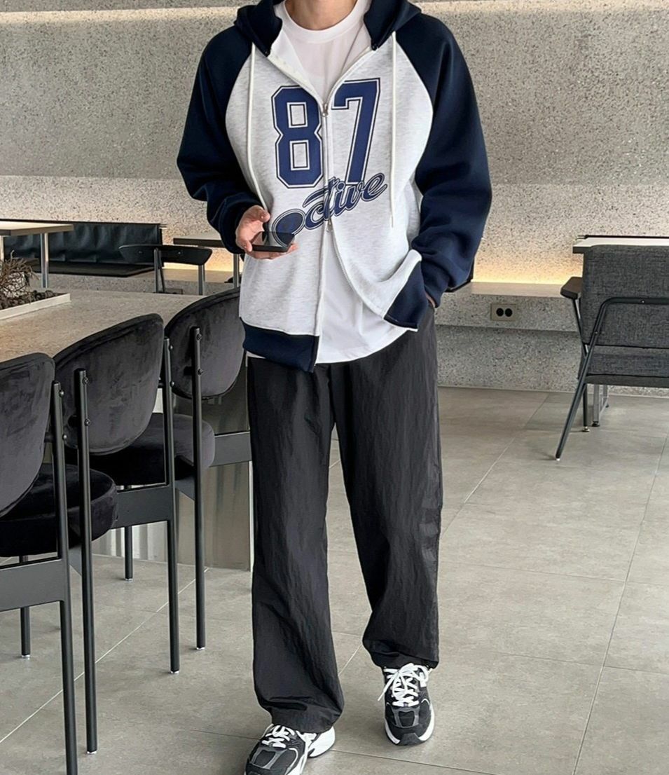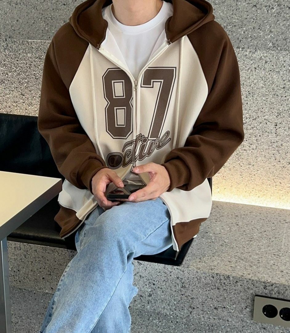 拼色數字連帽拉鍊外套 GAMBLE-035T