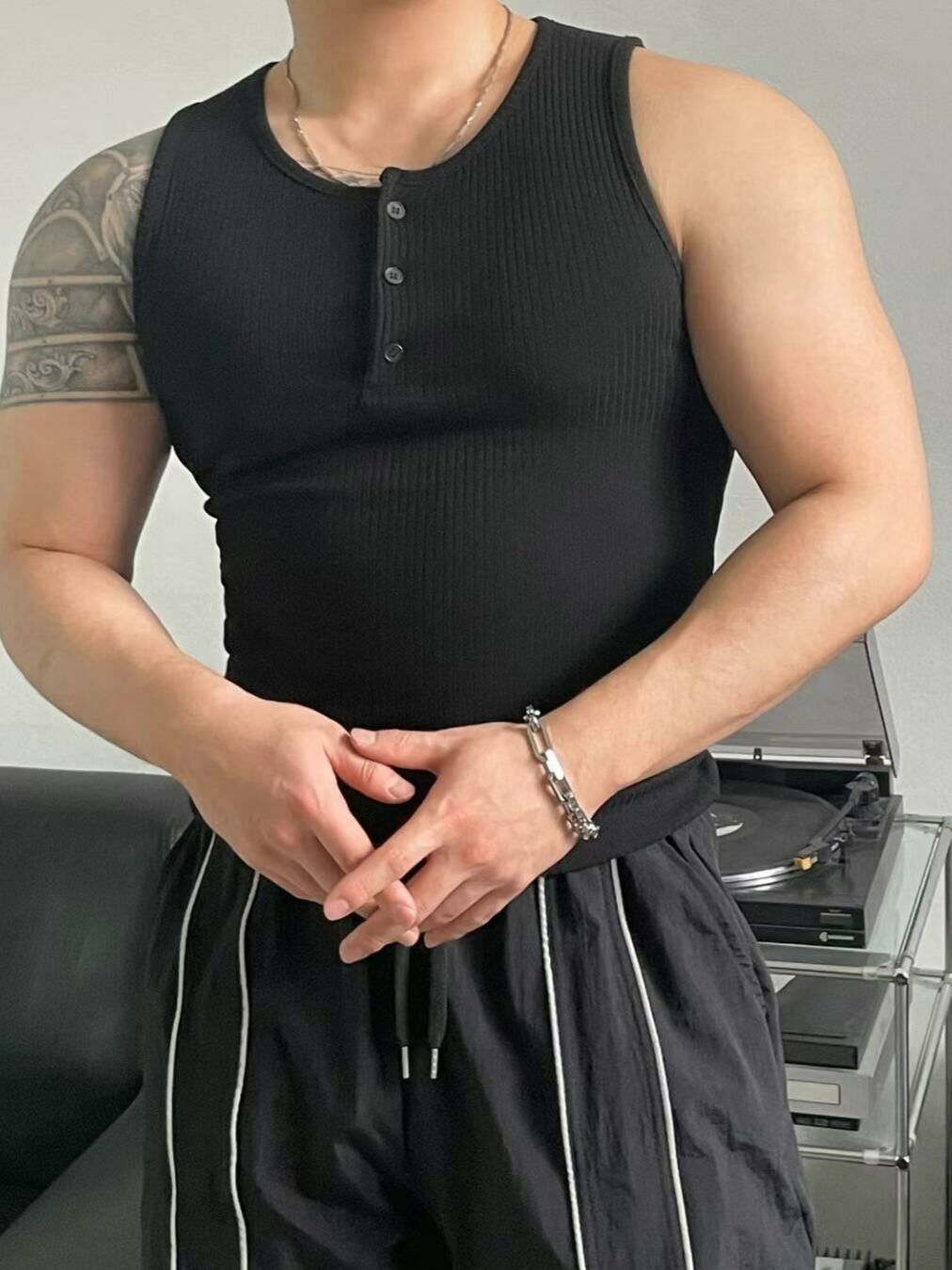 淨色暗紋半開胸背心 GAMBLE-053V