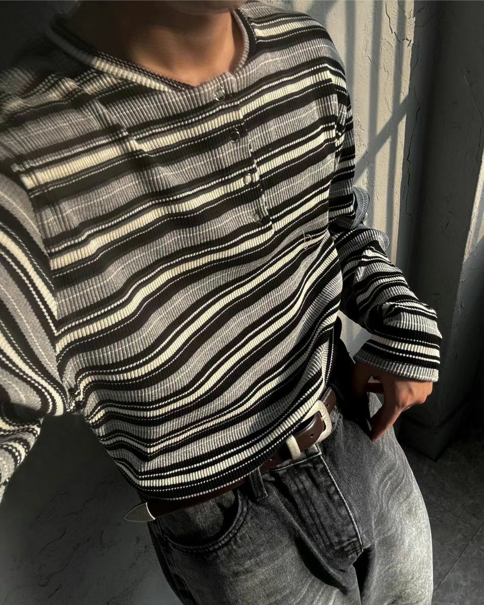 半扣鈕橫間長袖衫 GARMENTS-007T