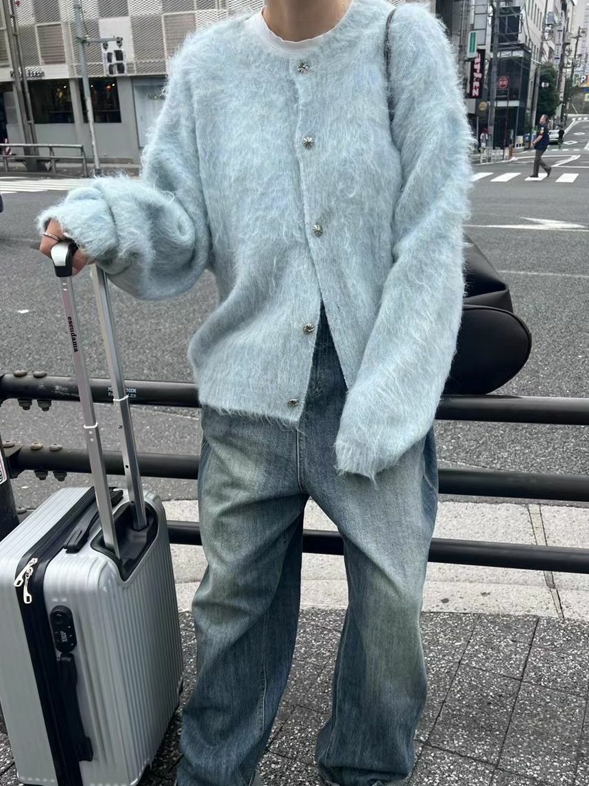 淨色圓領開胸針織外套 GARMENTS-013JK