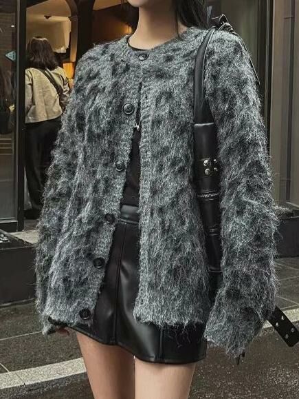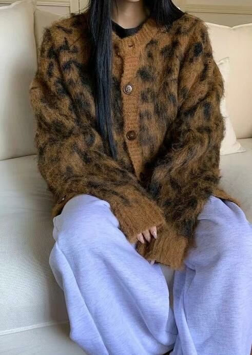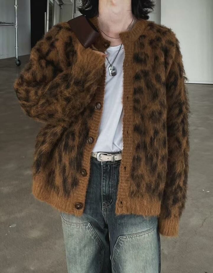 圓領豹紋開胸針織外套 GARMENTS-016JK