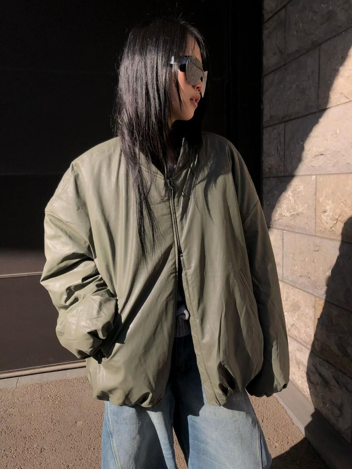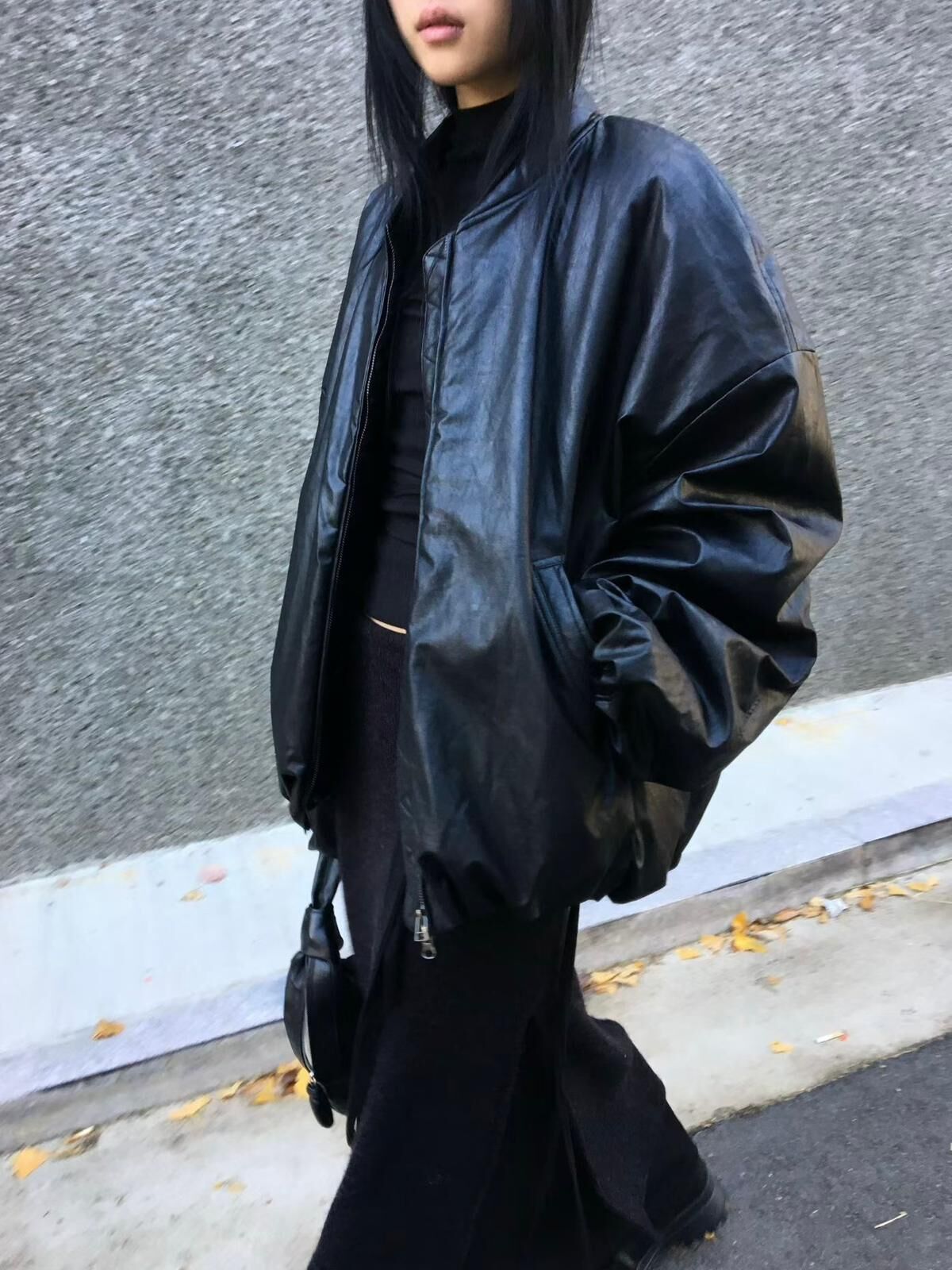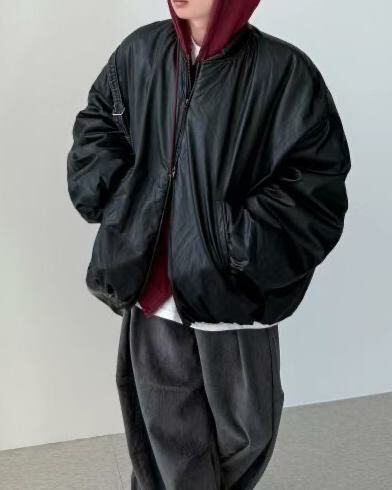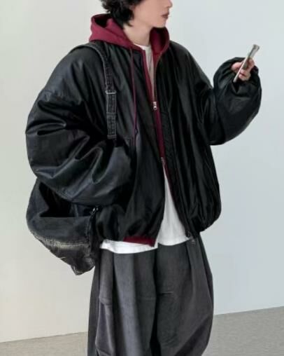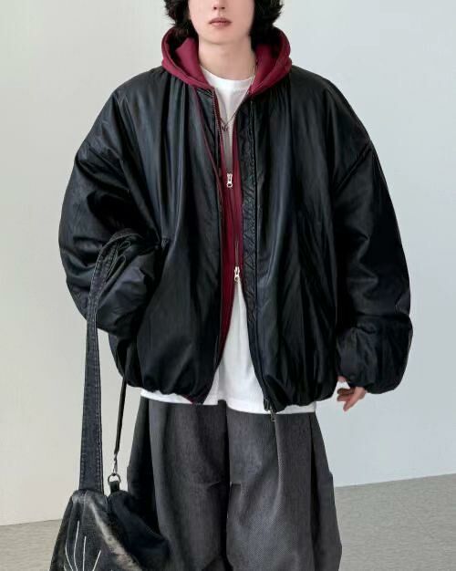 淨色拉鍊合成皮褸(夾棉) GARMENTS-017JK