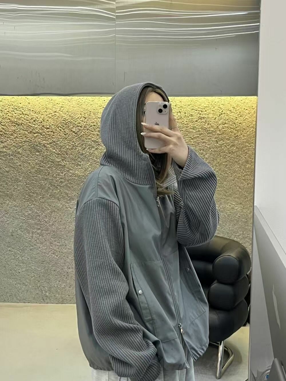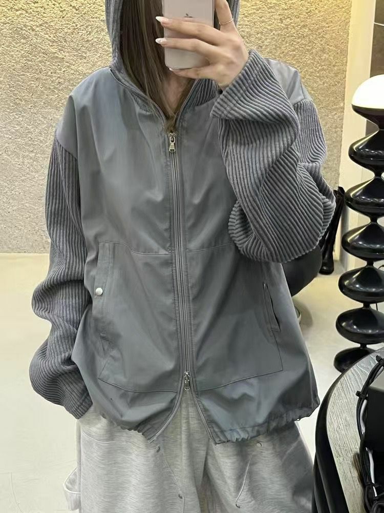 拼布連帽拉鍊外套 GARMENTS-022JK