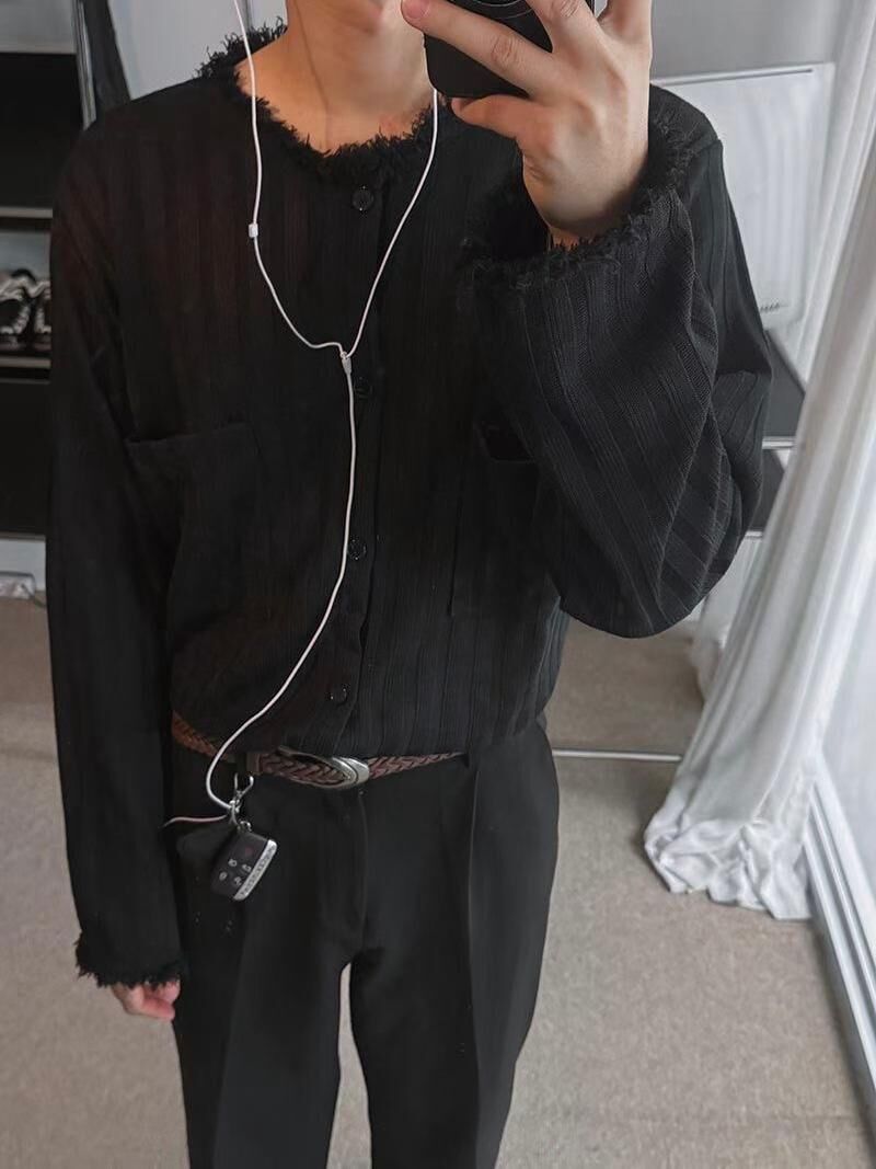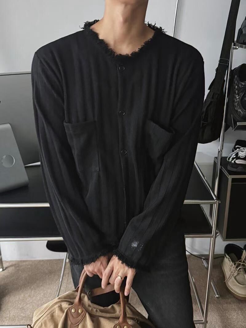 淨色暗直紋開胸外套 GARMENTS-049JK