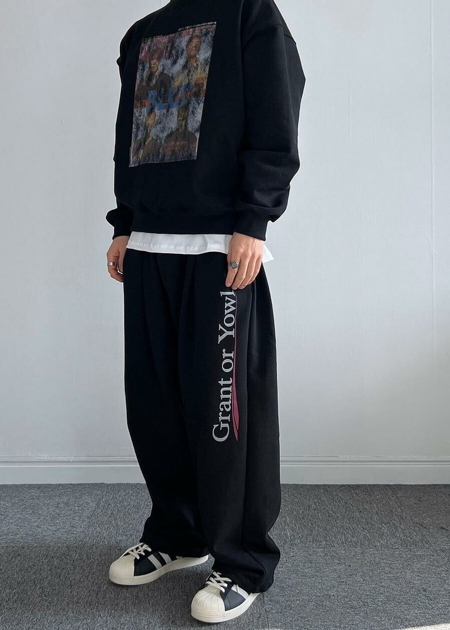 英文字可束腳棉質運動褲 GATHER-014P