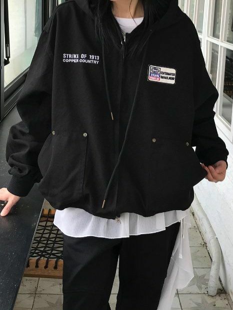英文字連帽拉鍊外套 GATHER-024JK