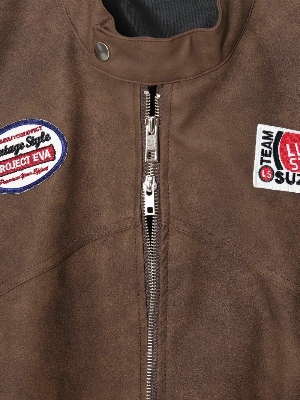 企領綉章拉鍊合成皮褸 GATHER-029JK