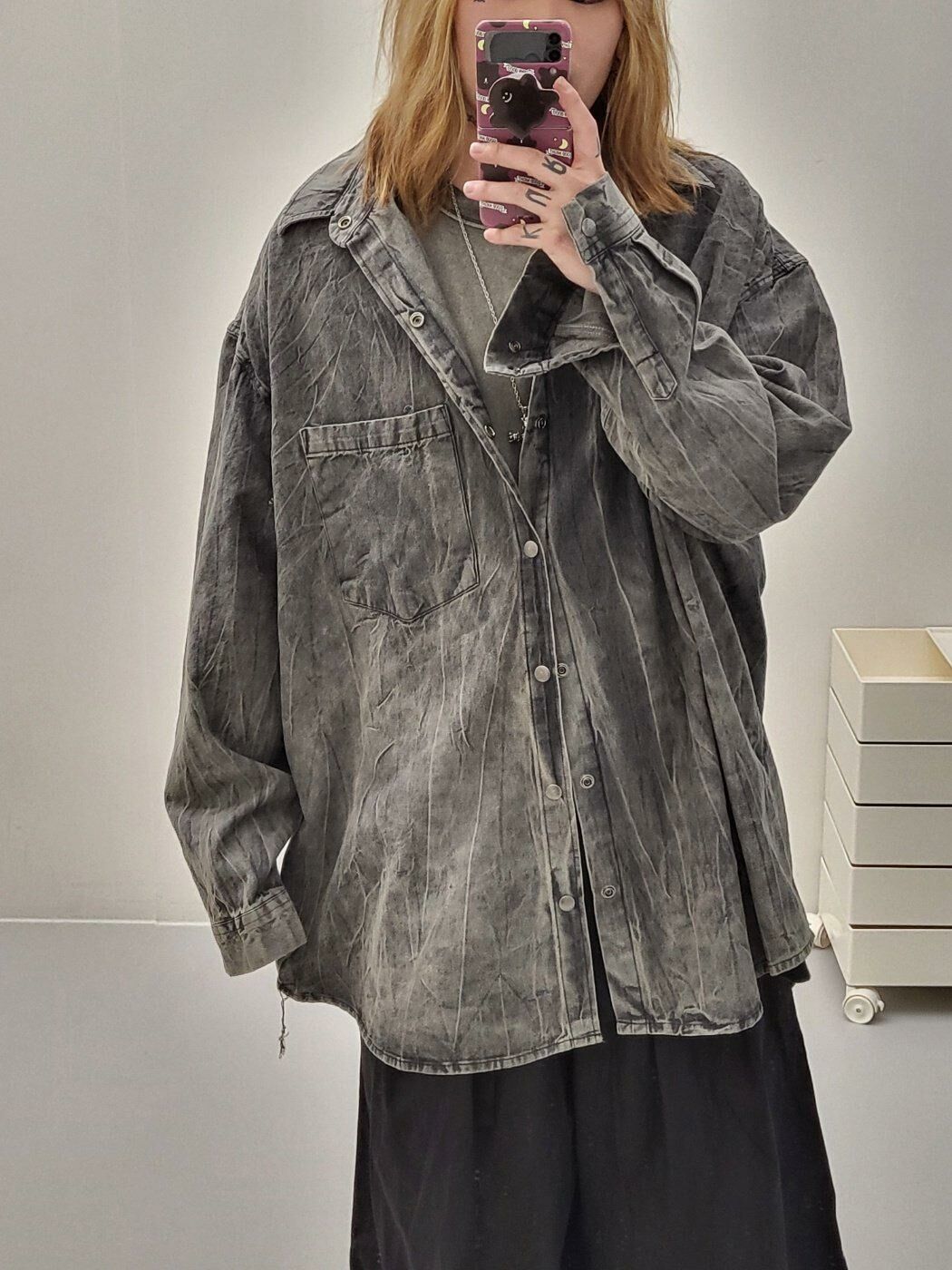 洗水牛仔長袖恤衫 GLAMOUR-019S