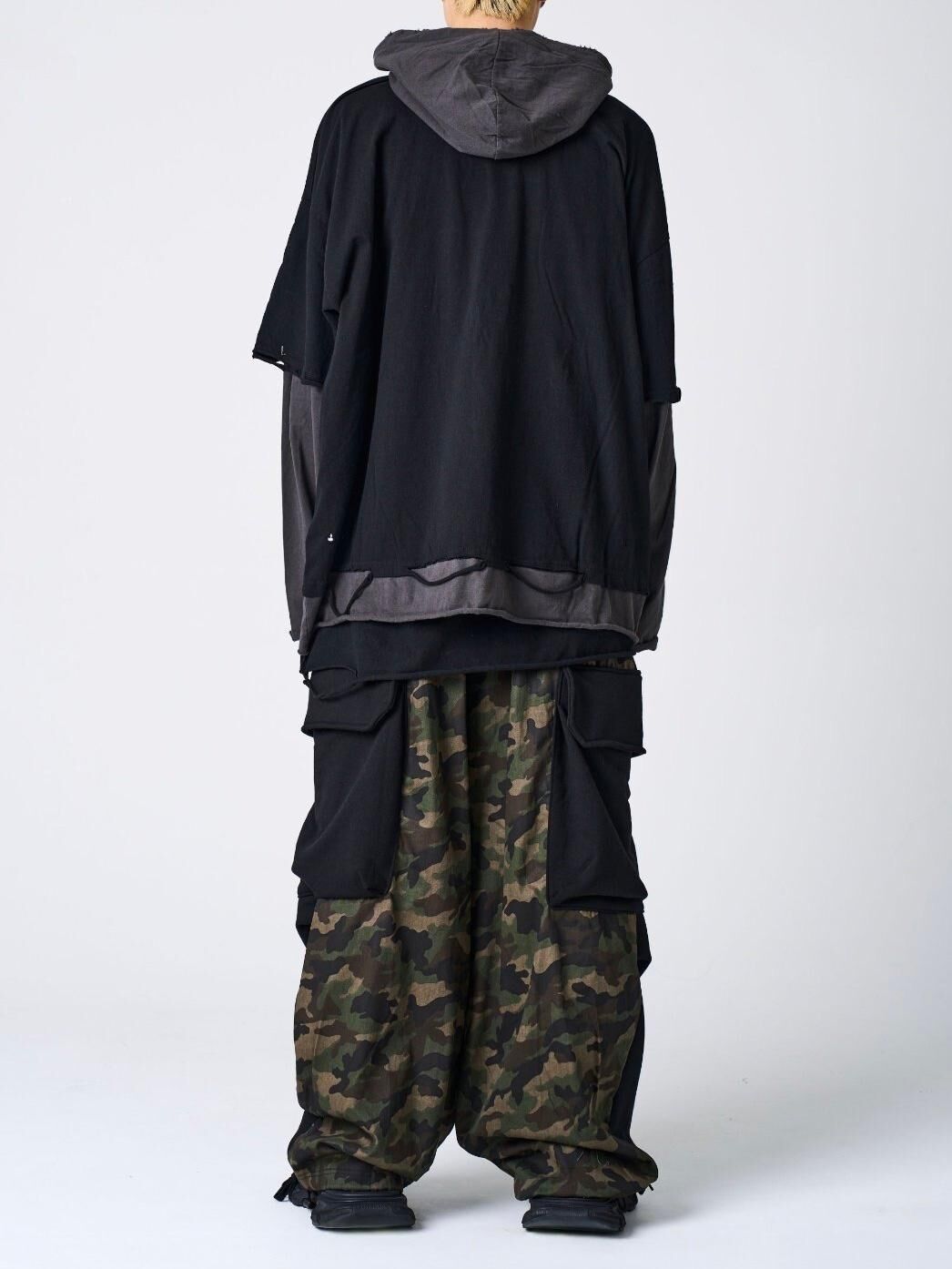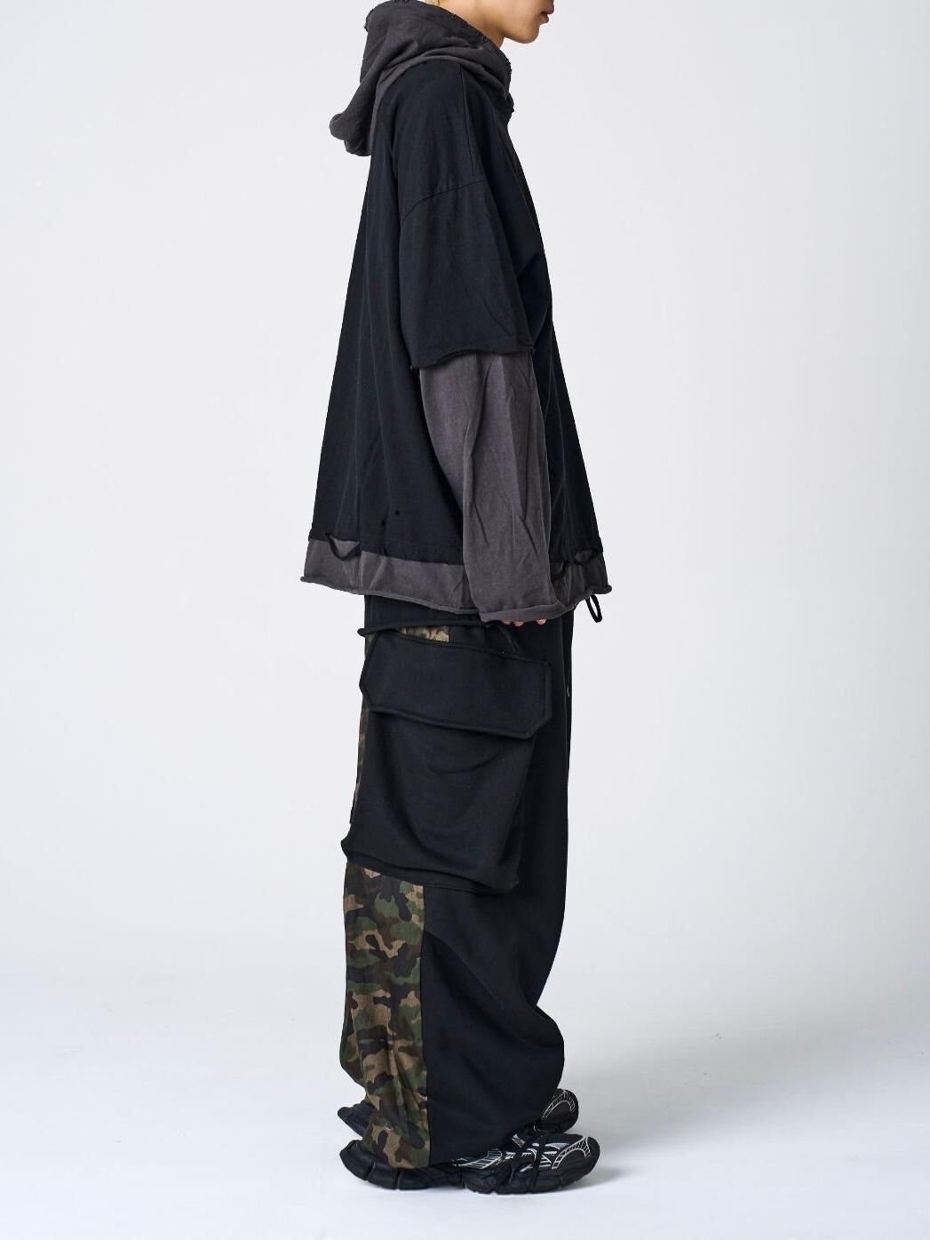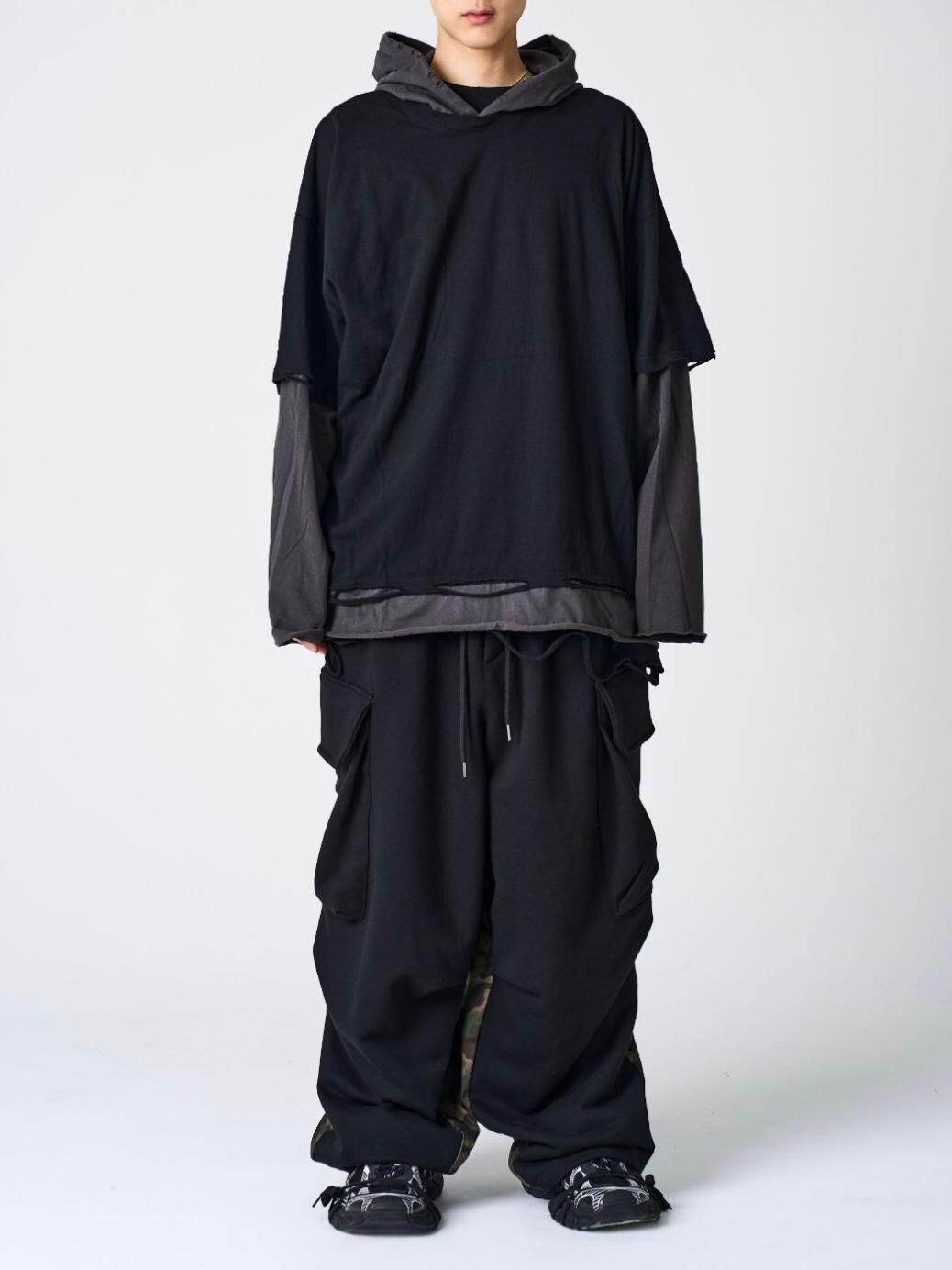 Oversize拼色假兩件連帽長袖衫 GLAMOUR-037T