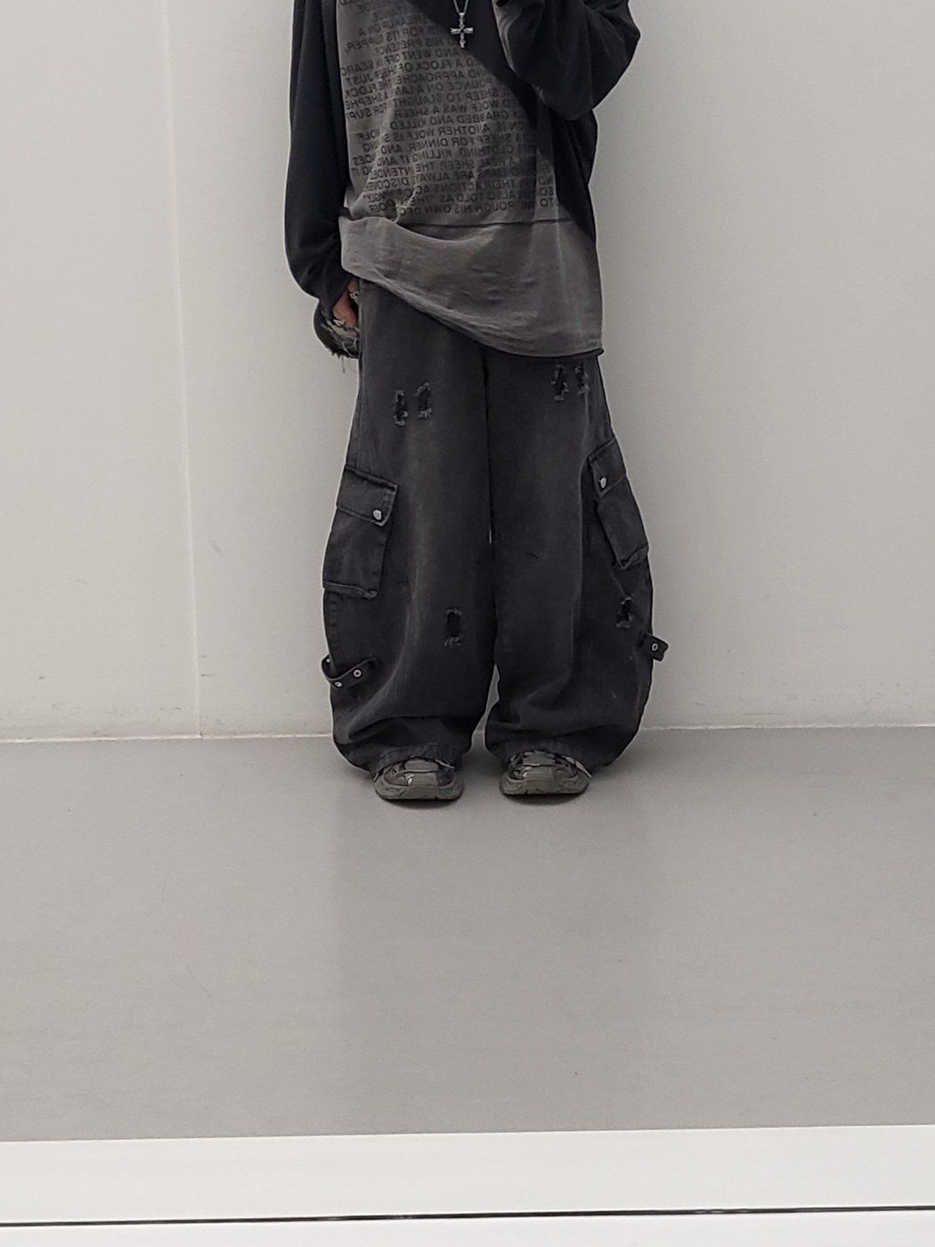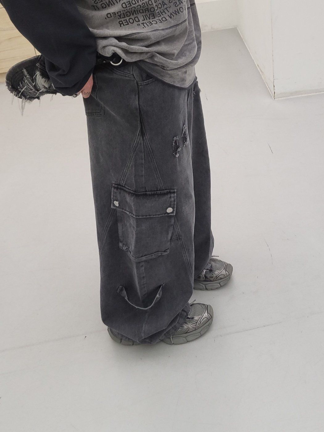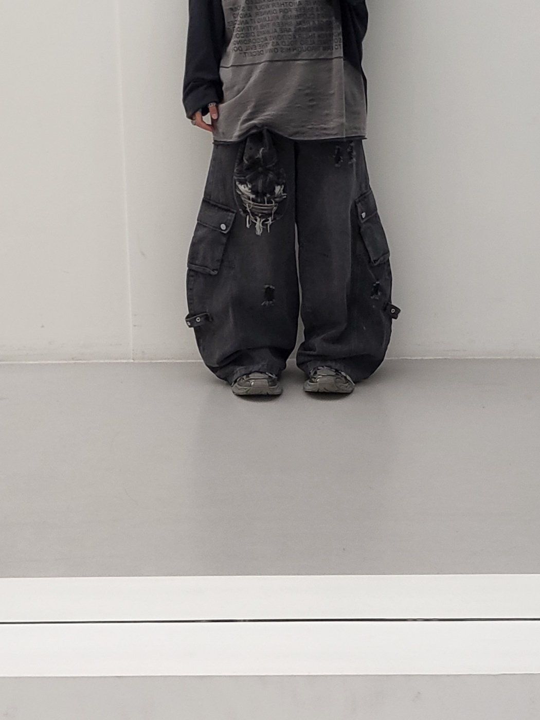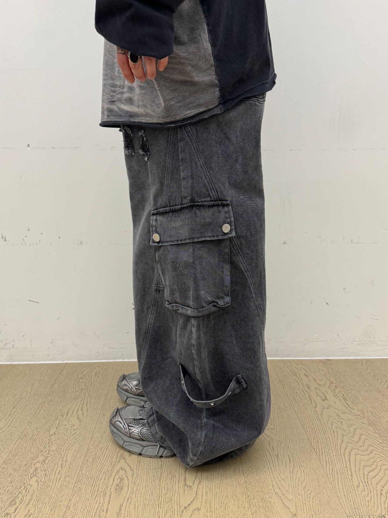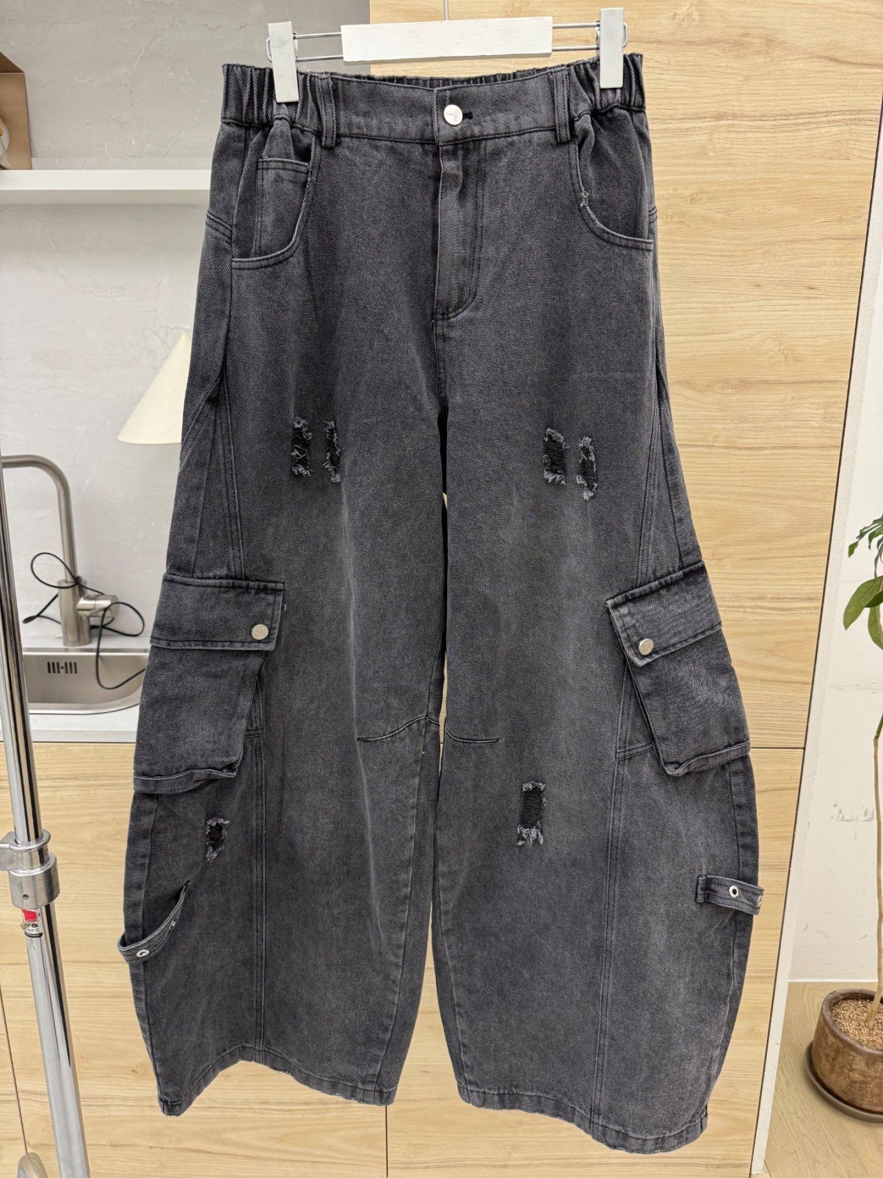 淨色工裝鬆身牛仔彎刀褲 GLAMOUR-116P