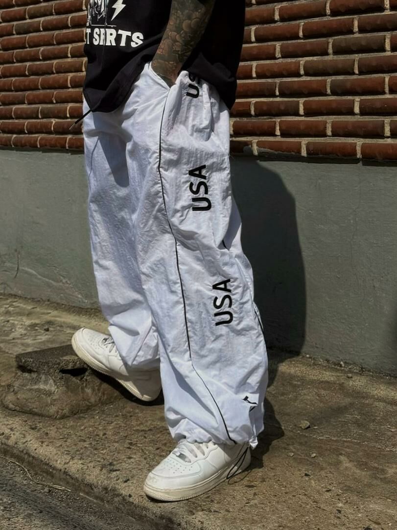 英文字可束腳鬆身褲 GUNNER-003P