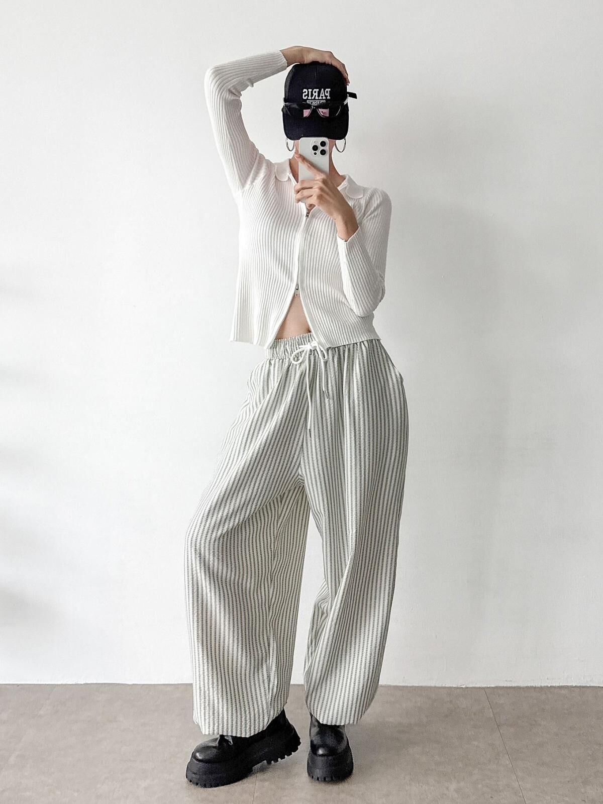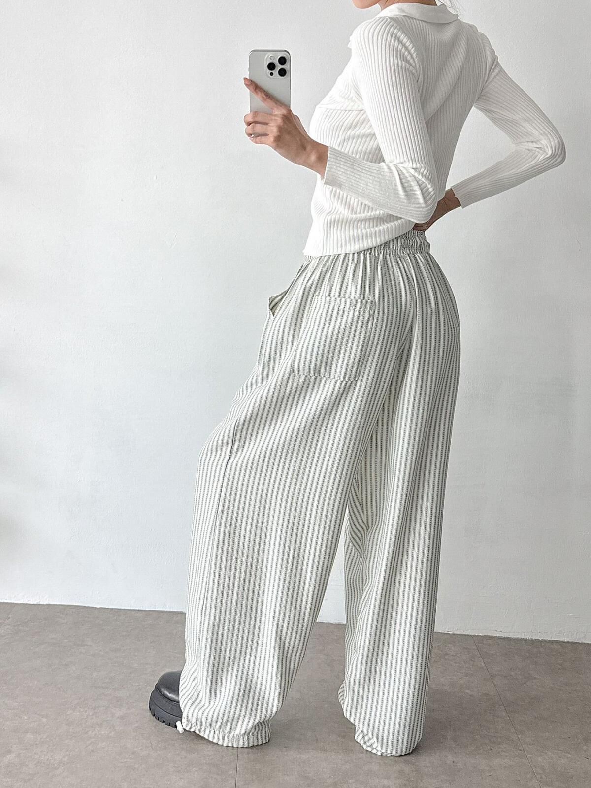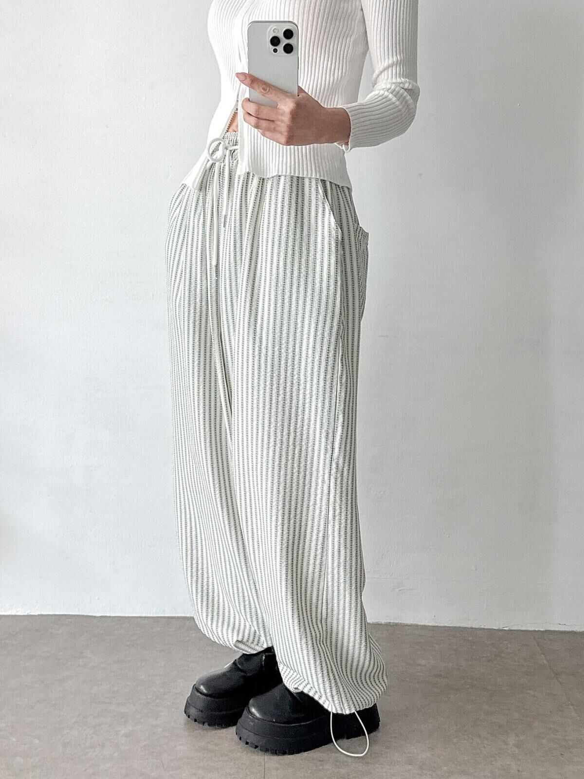 直紋可束腳鬆身褲 GUNNER-023P