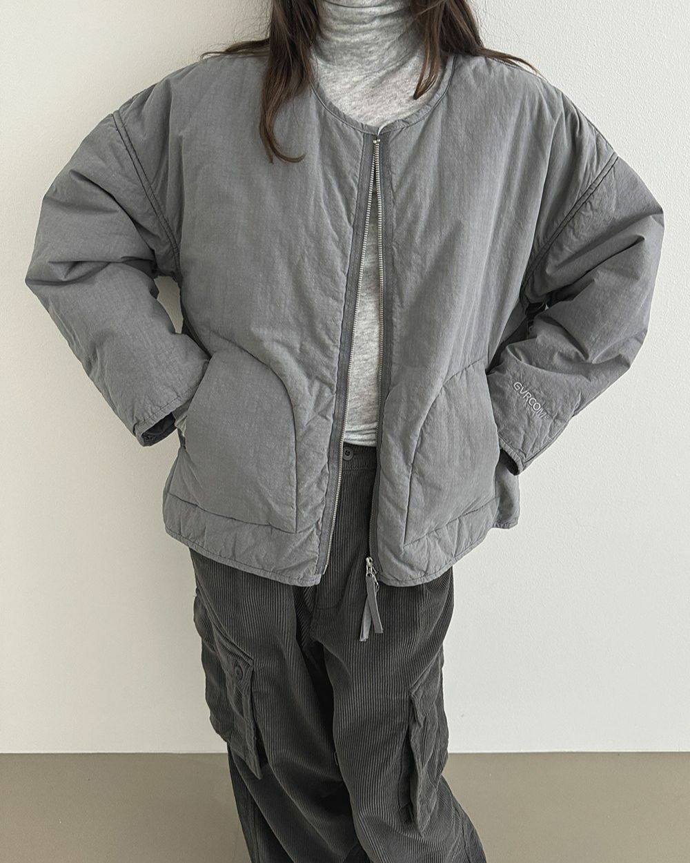 淨色圓領拉鍊外套(薄夾棉) GVR-054JK