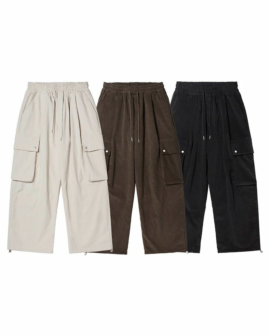 薄燈心絨可束腳工裝鬆身褲 HAMEL-008P