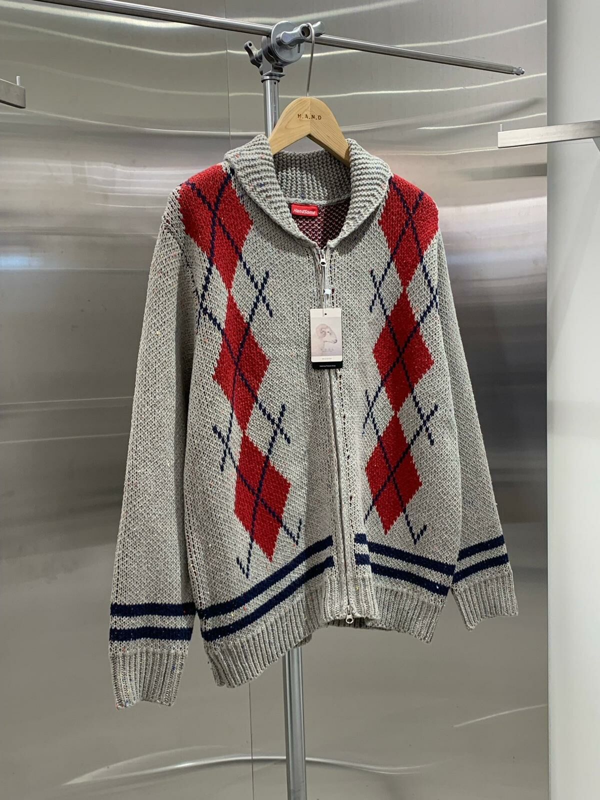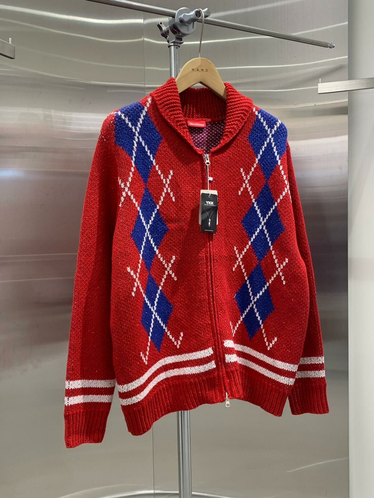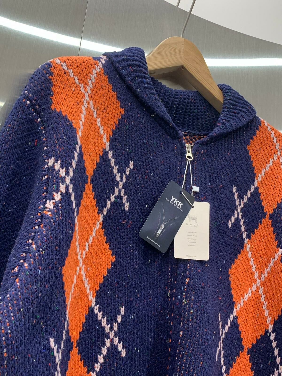 反領菱格拉鍊針織外套 HAND-048JK