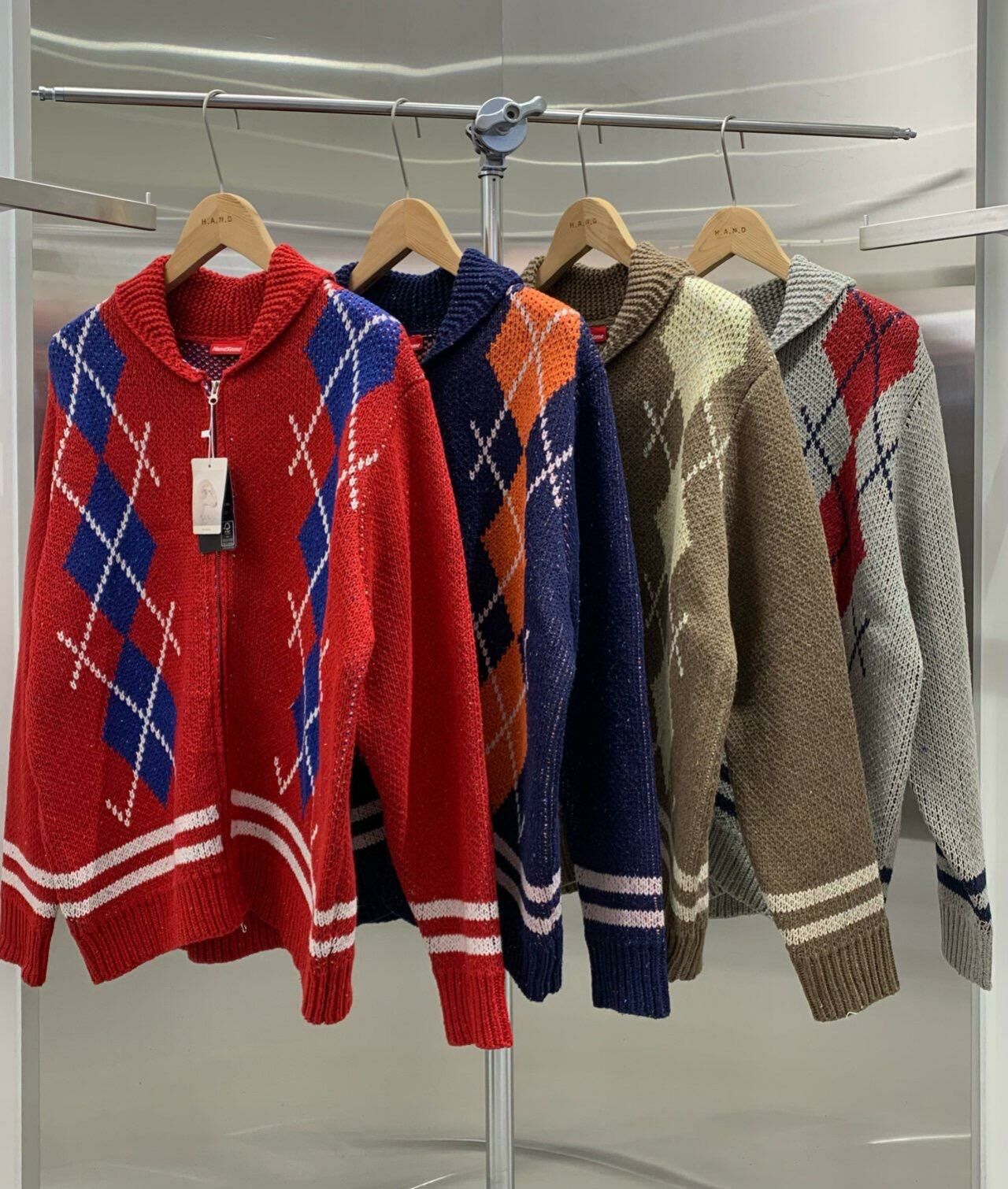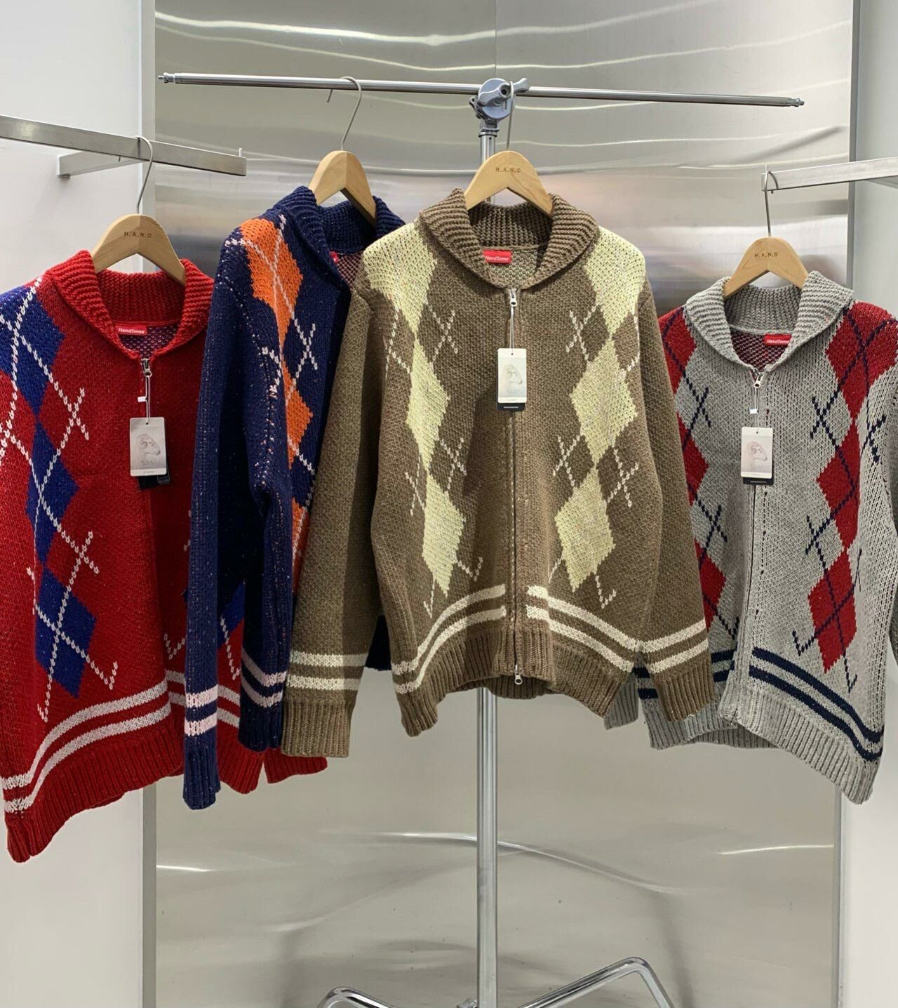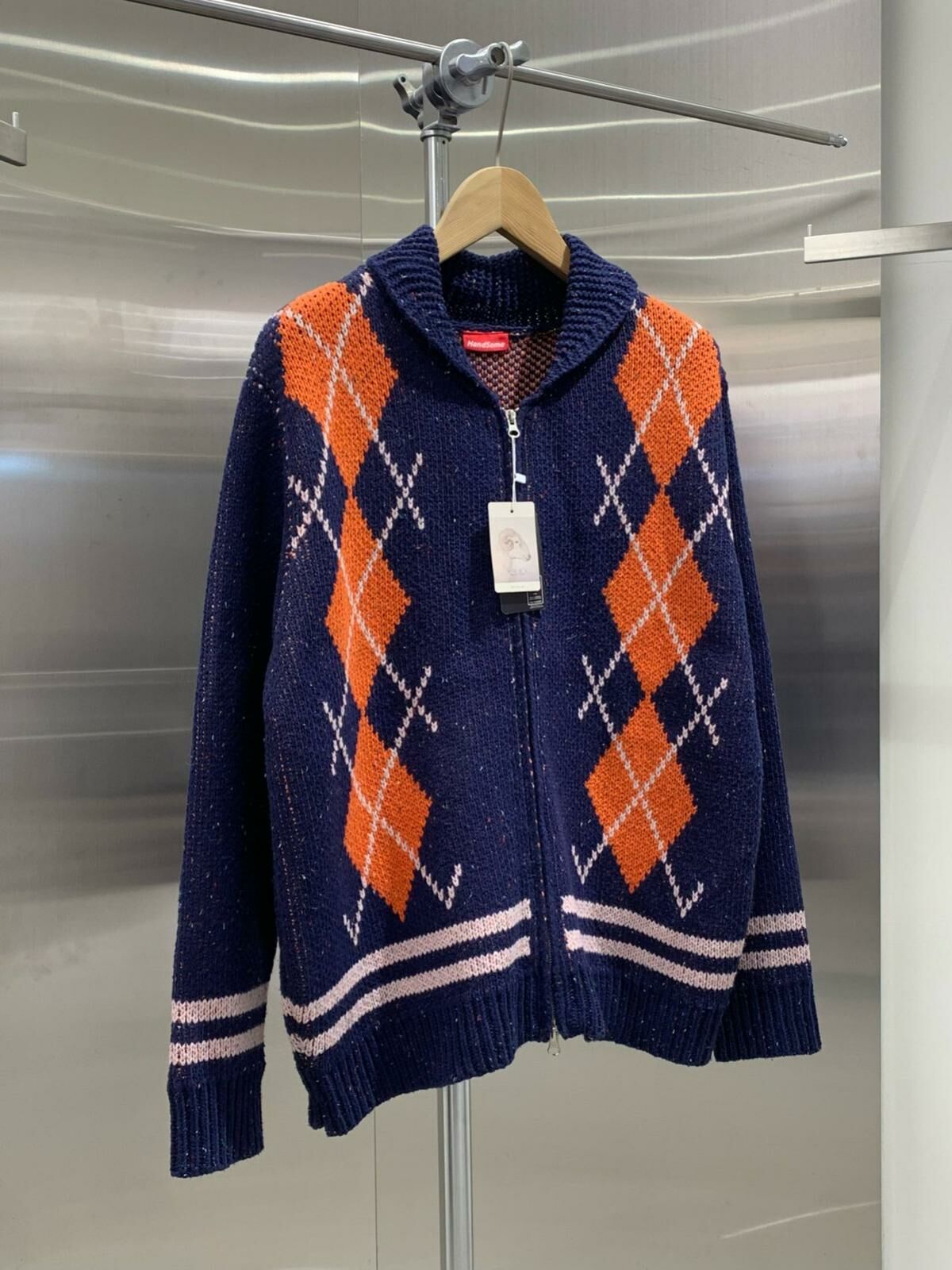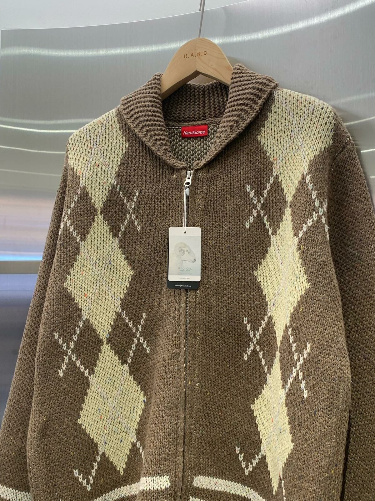 反領菱格拉鍊針織外套 HAND-048JK