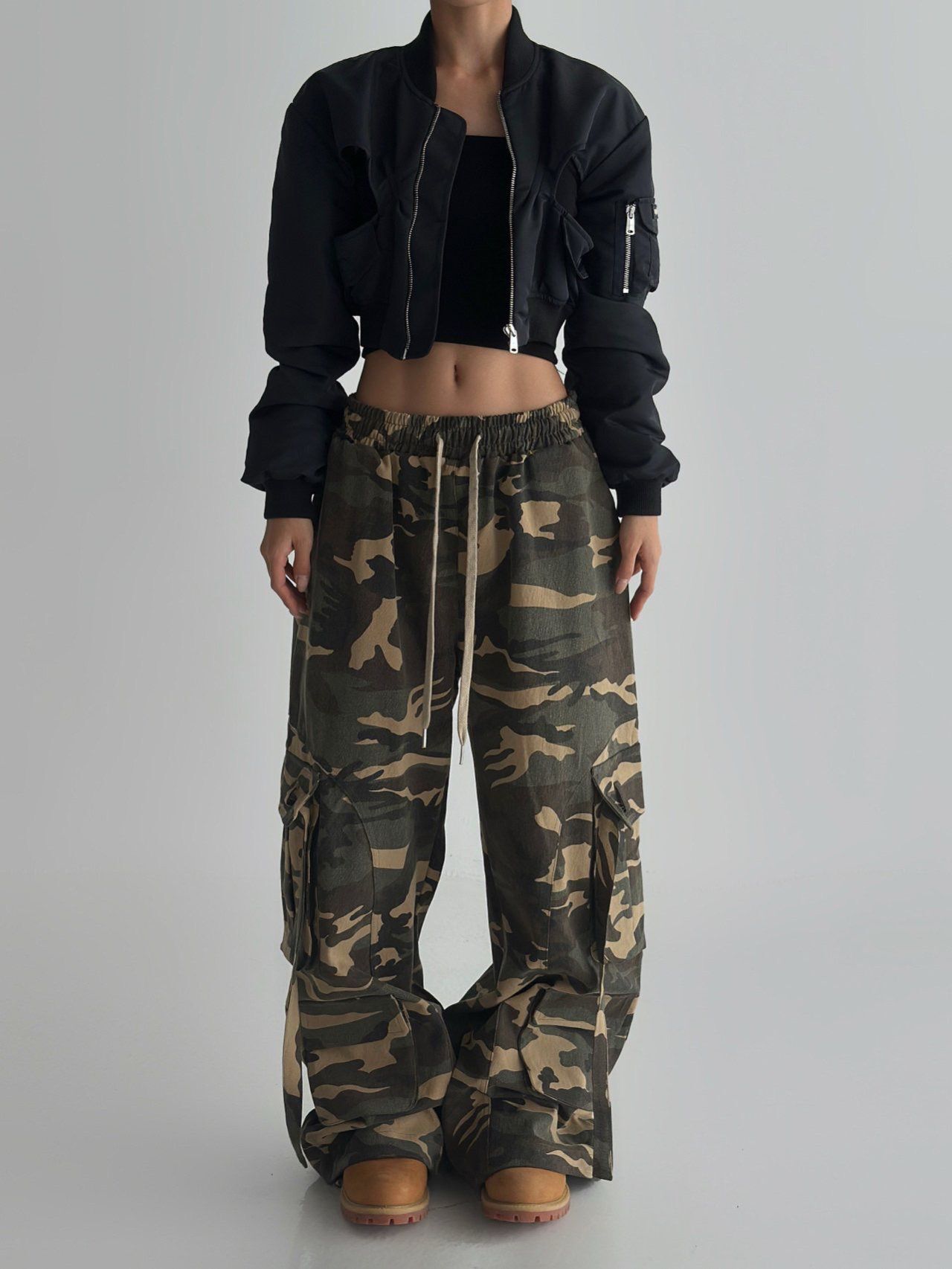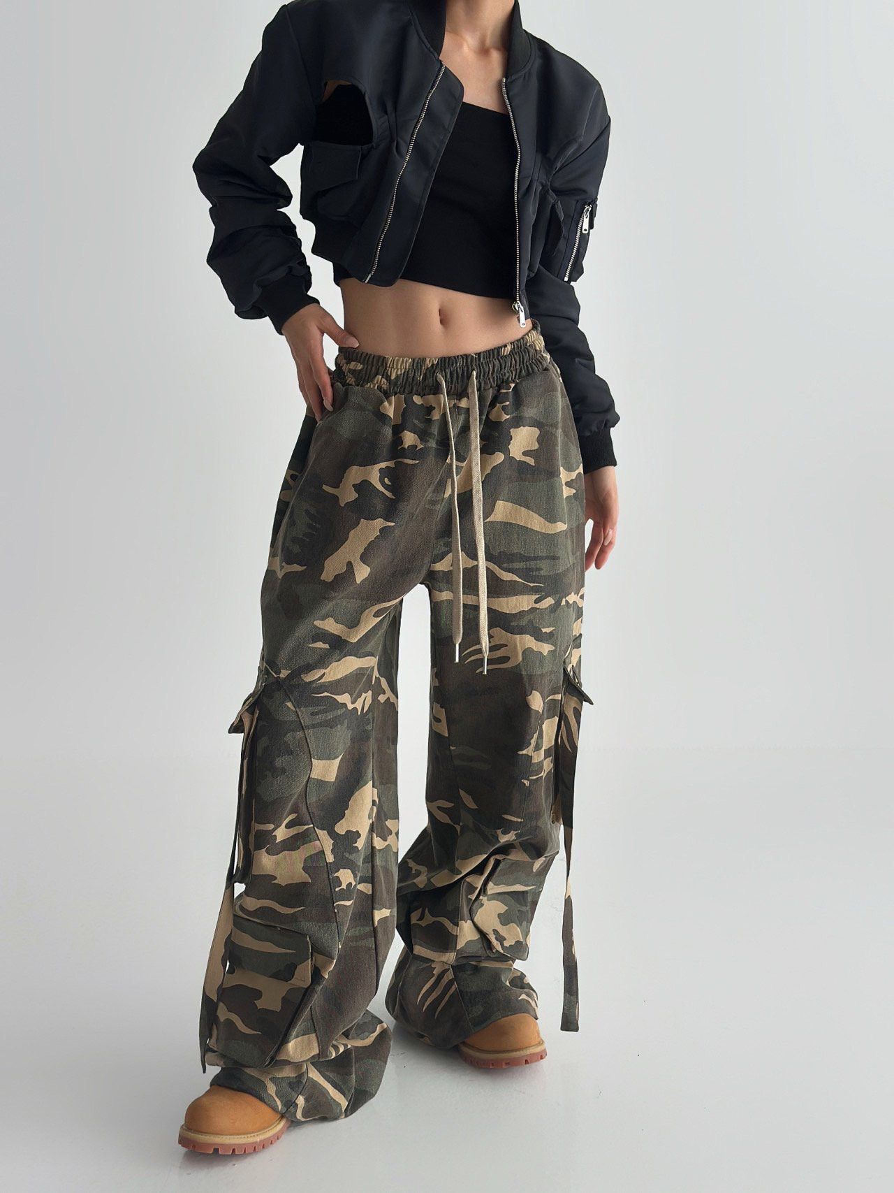迷彩可束腳工裝鬆身褲 Hashtag-052P