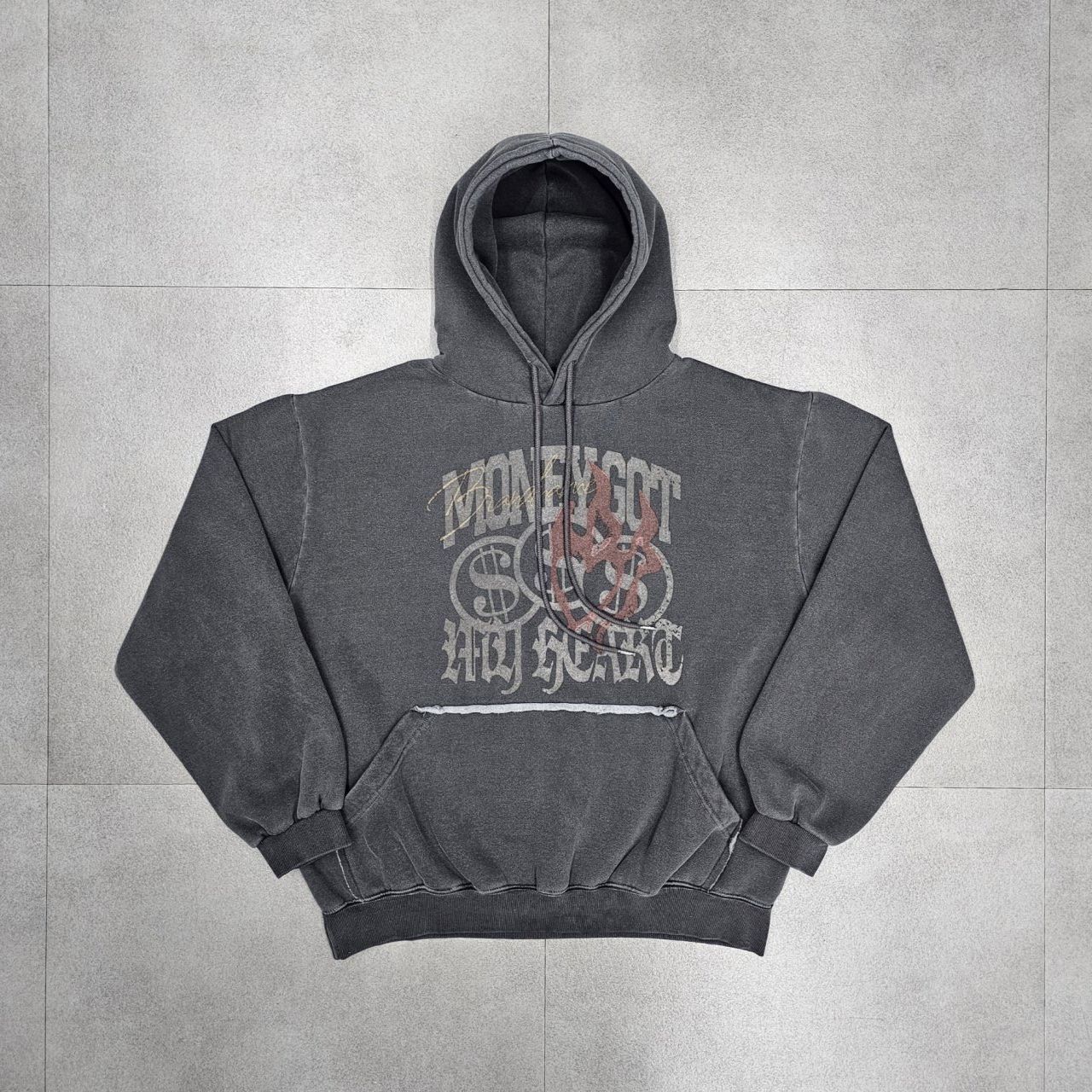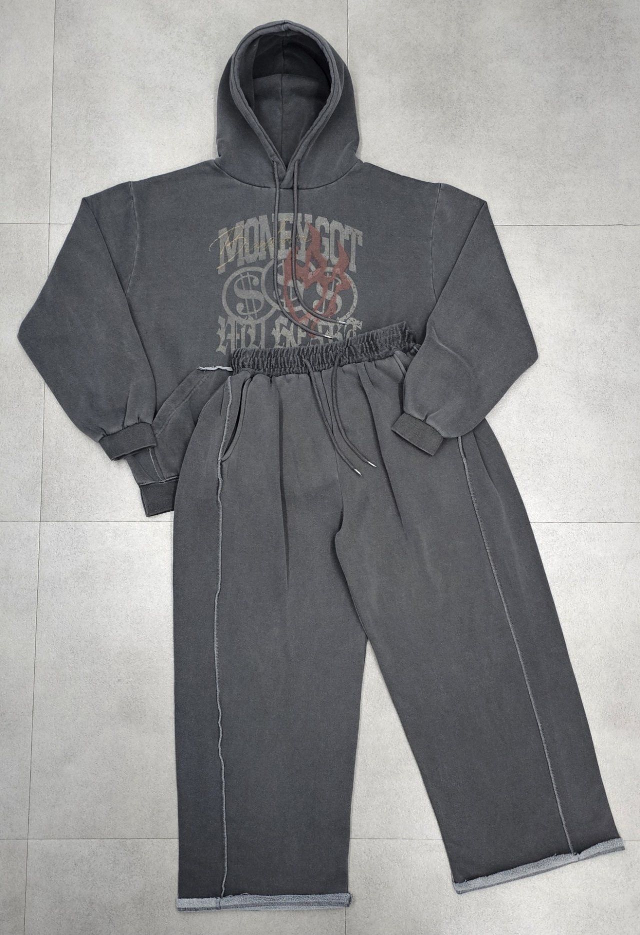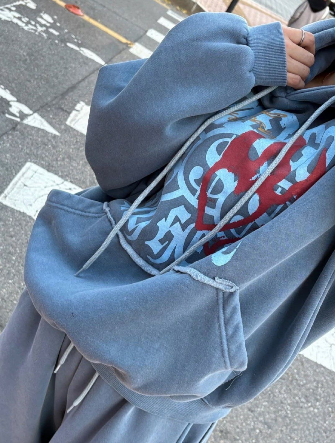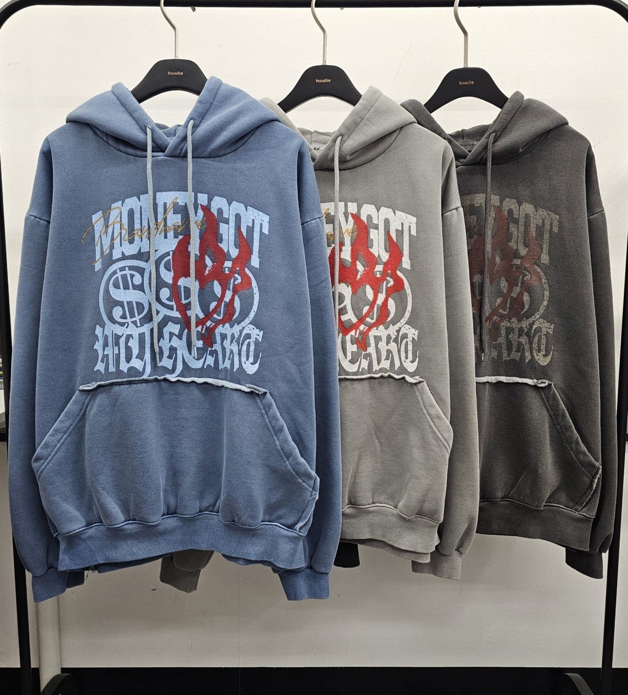 洗水英文字圖案連帽衛衣 HD-054T