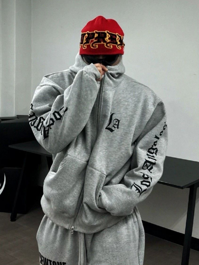 英文字連帽拉鍊外套 HD-057JK
