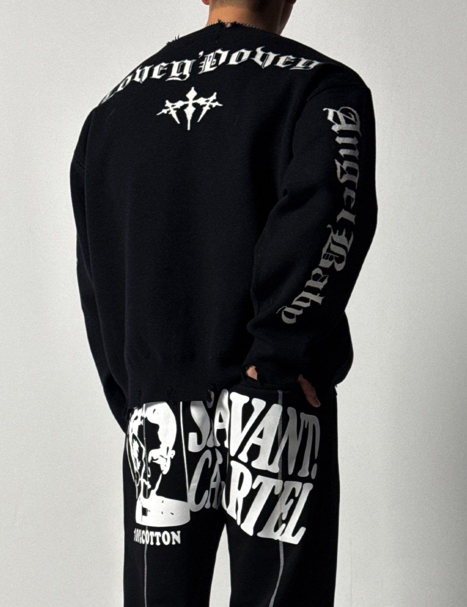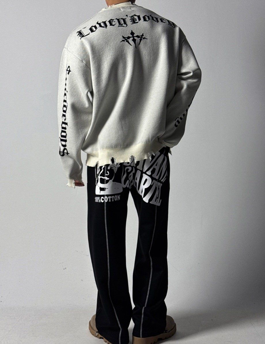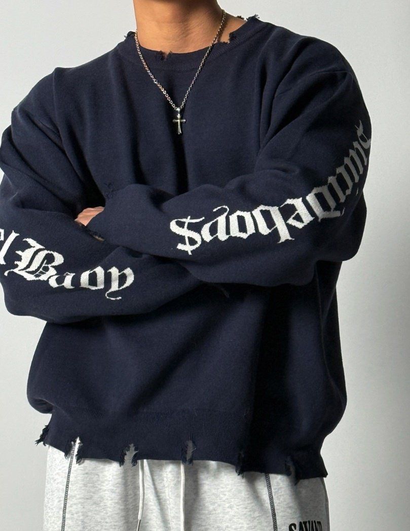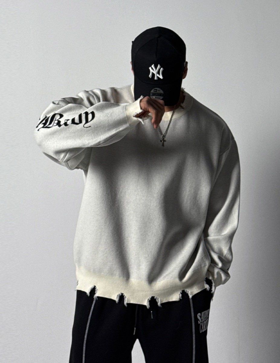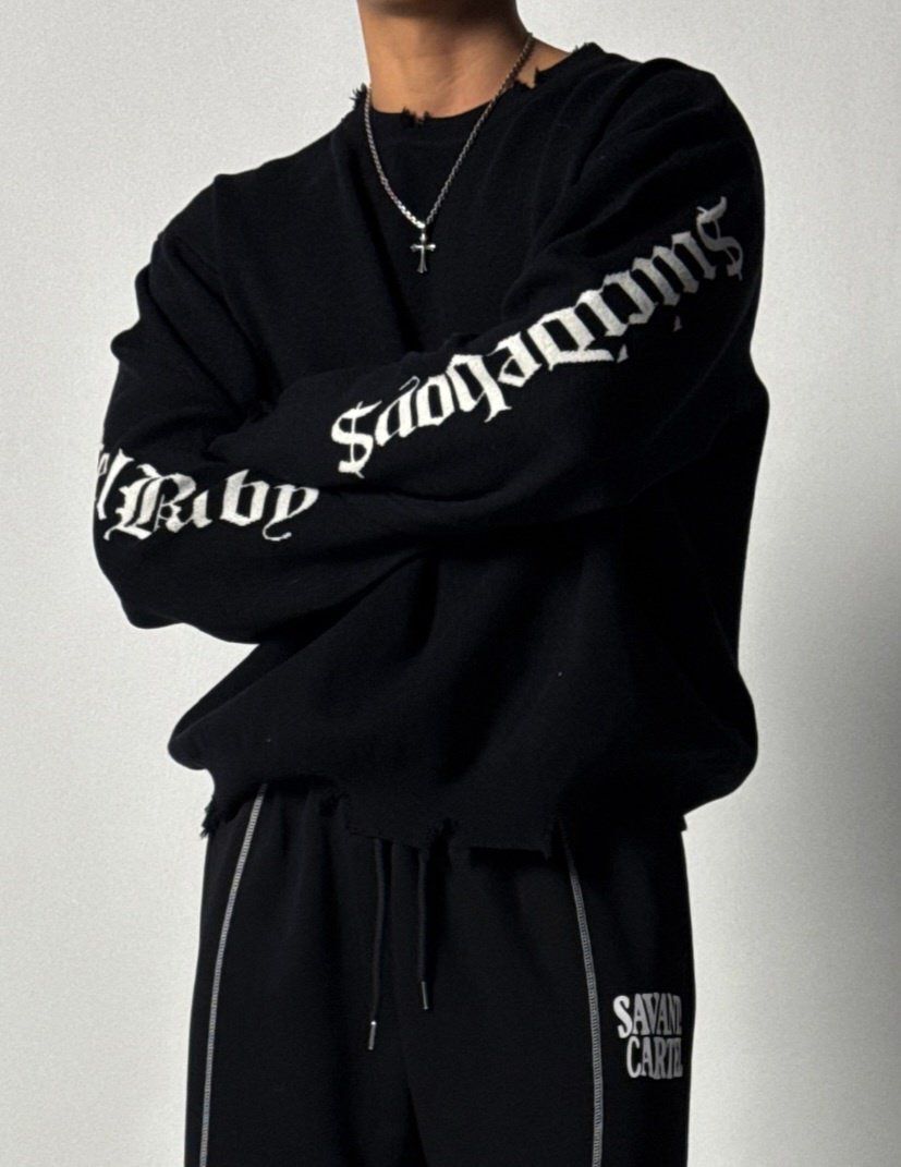 英文字破邊針織衫 HD-072T