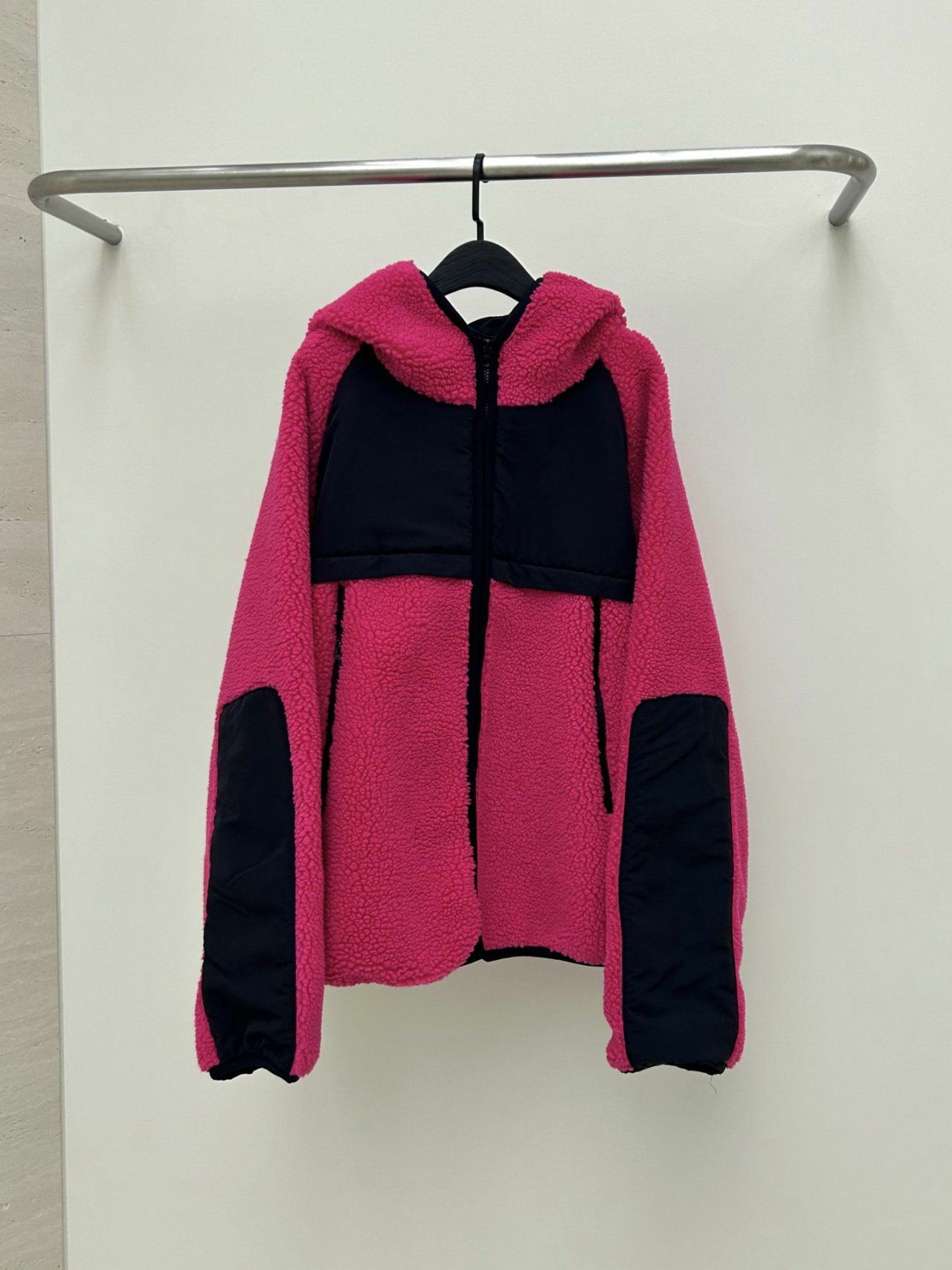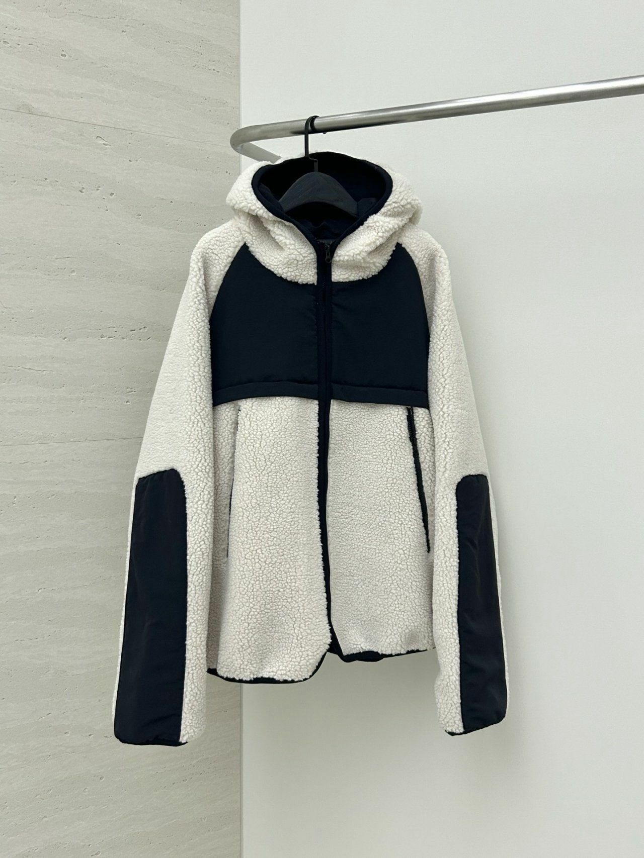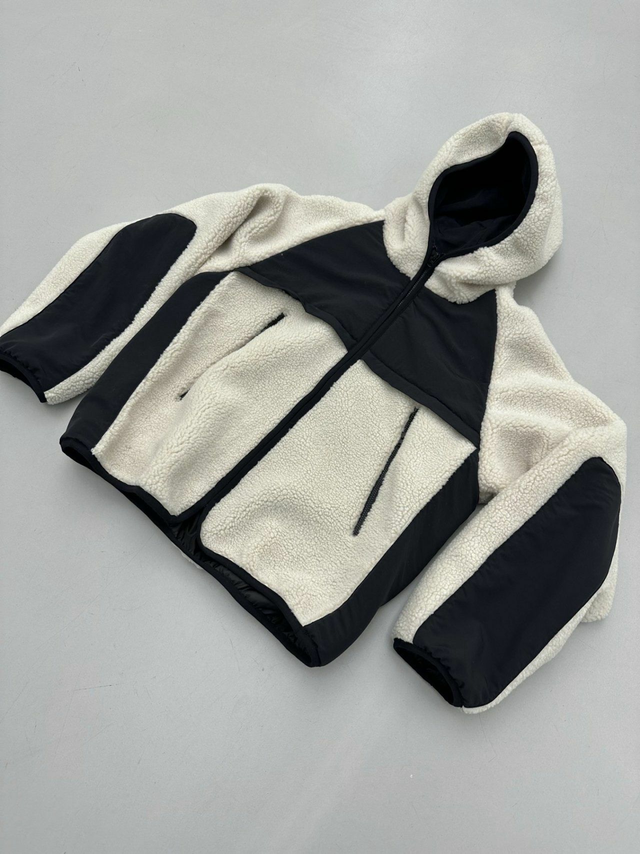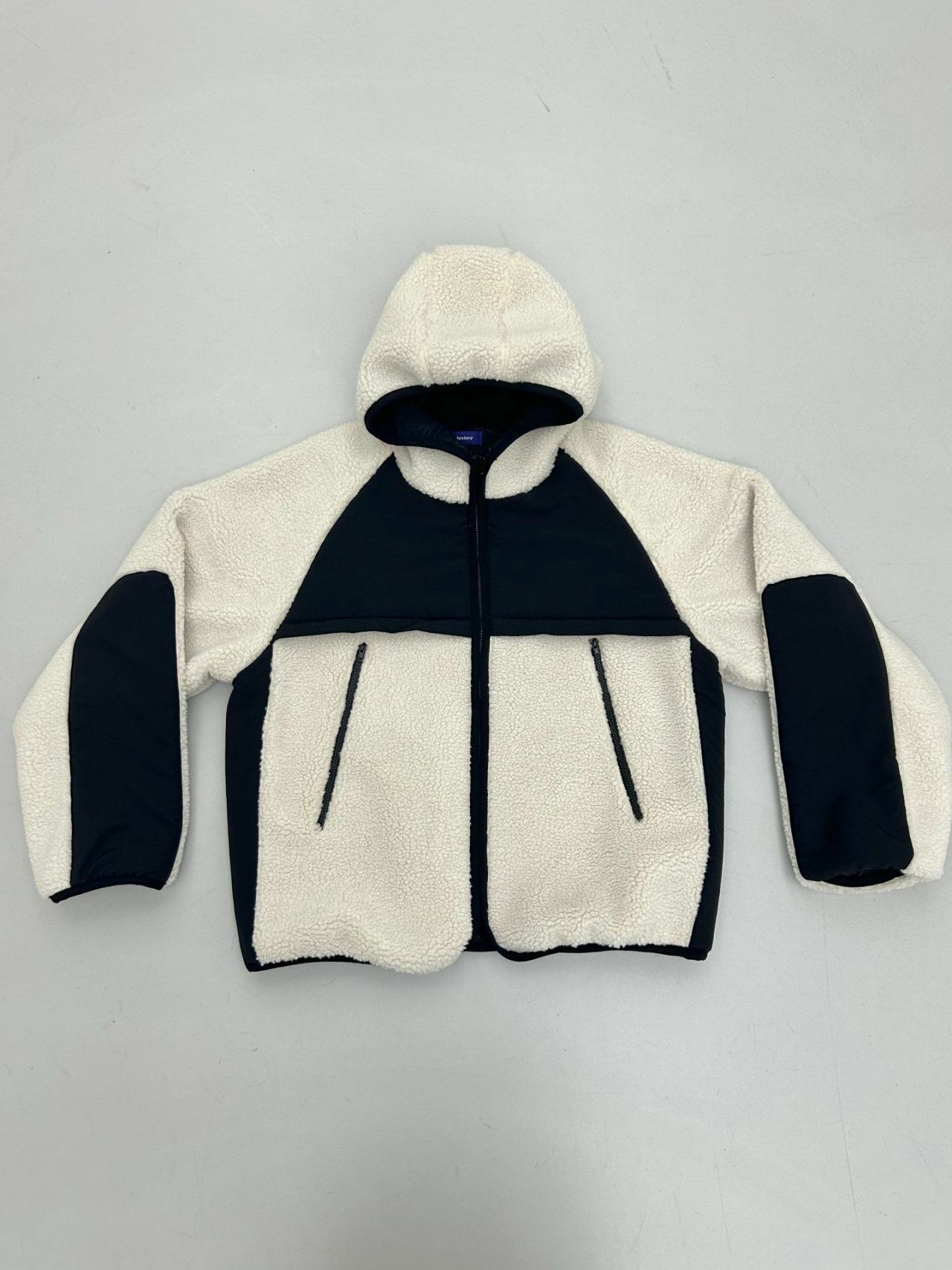 拼色絨毛連帽拉鍊外套 Hestory-032JK