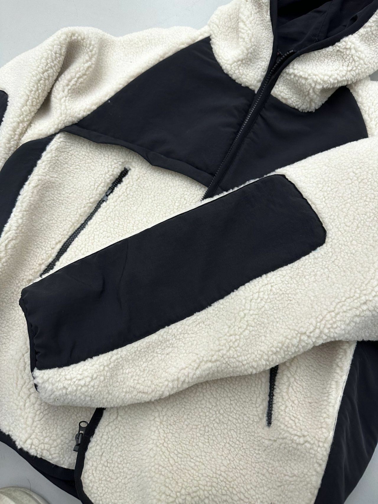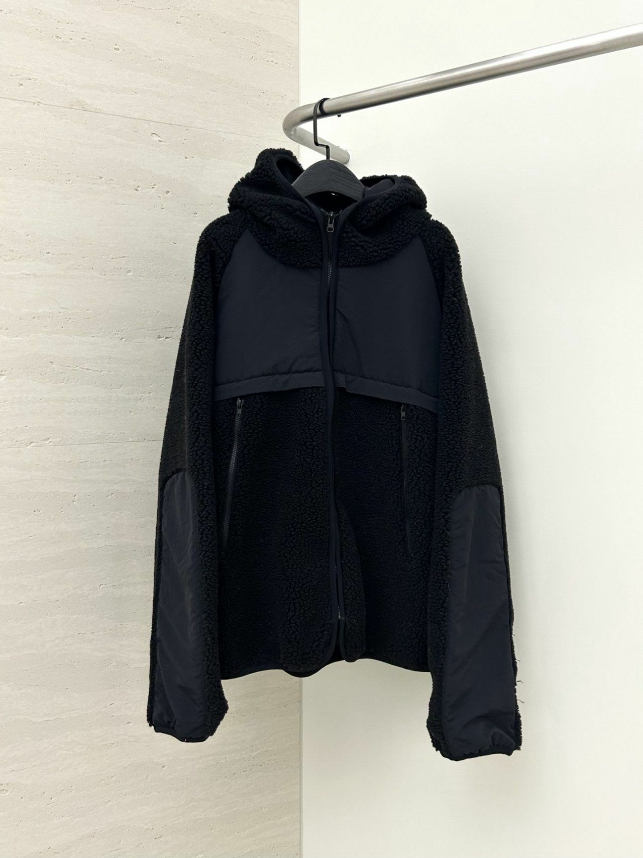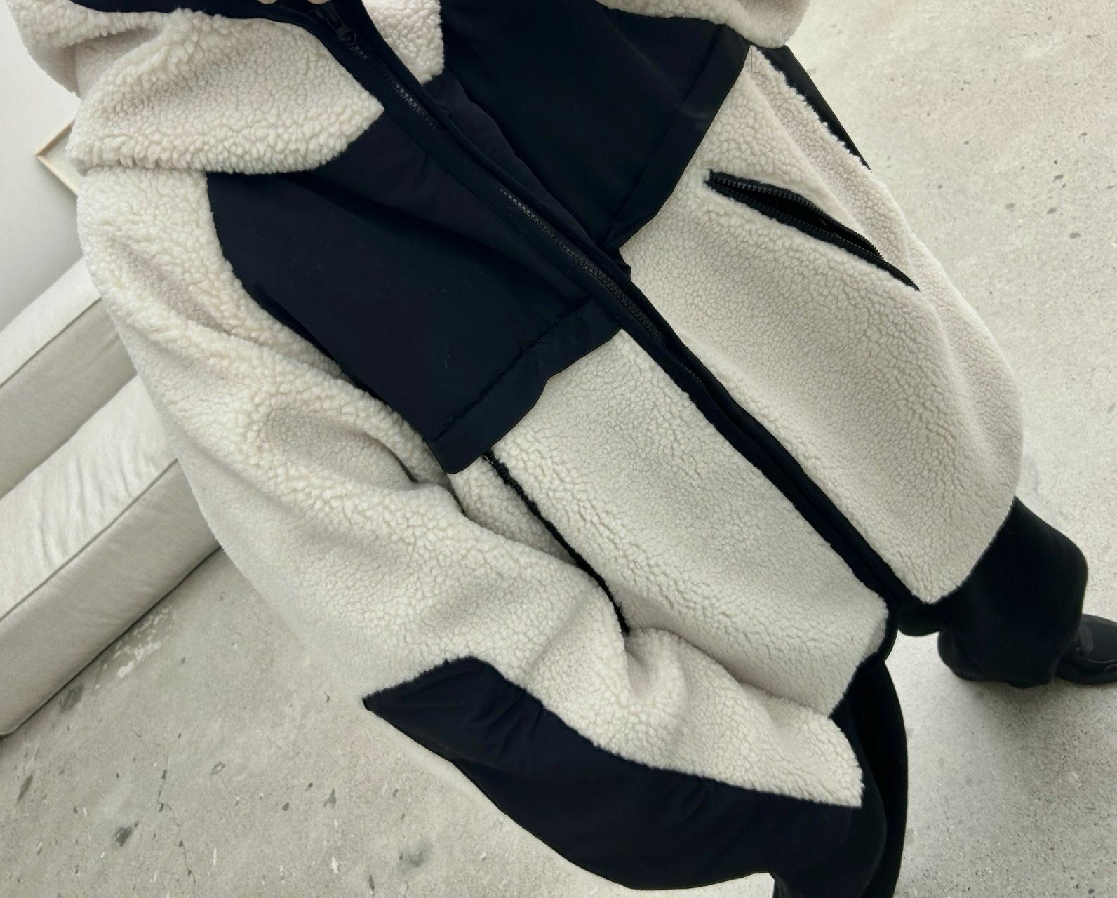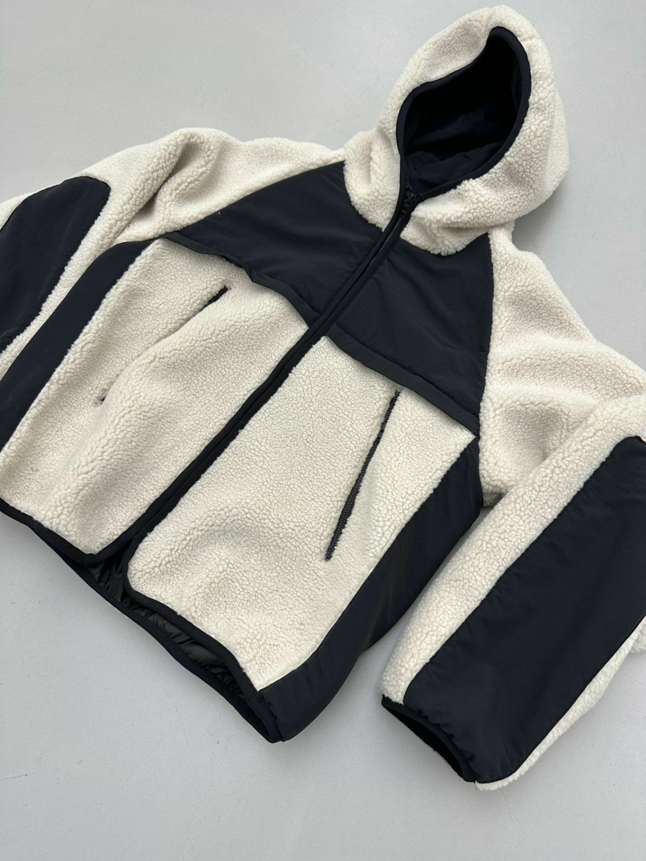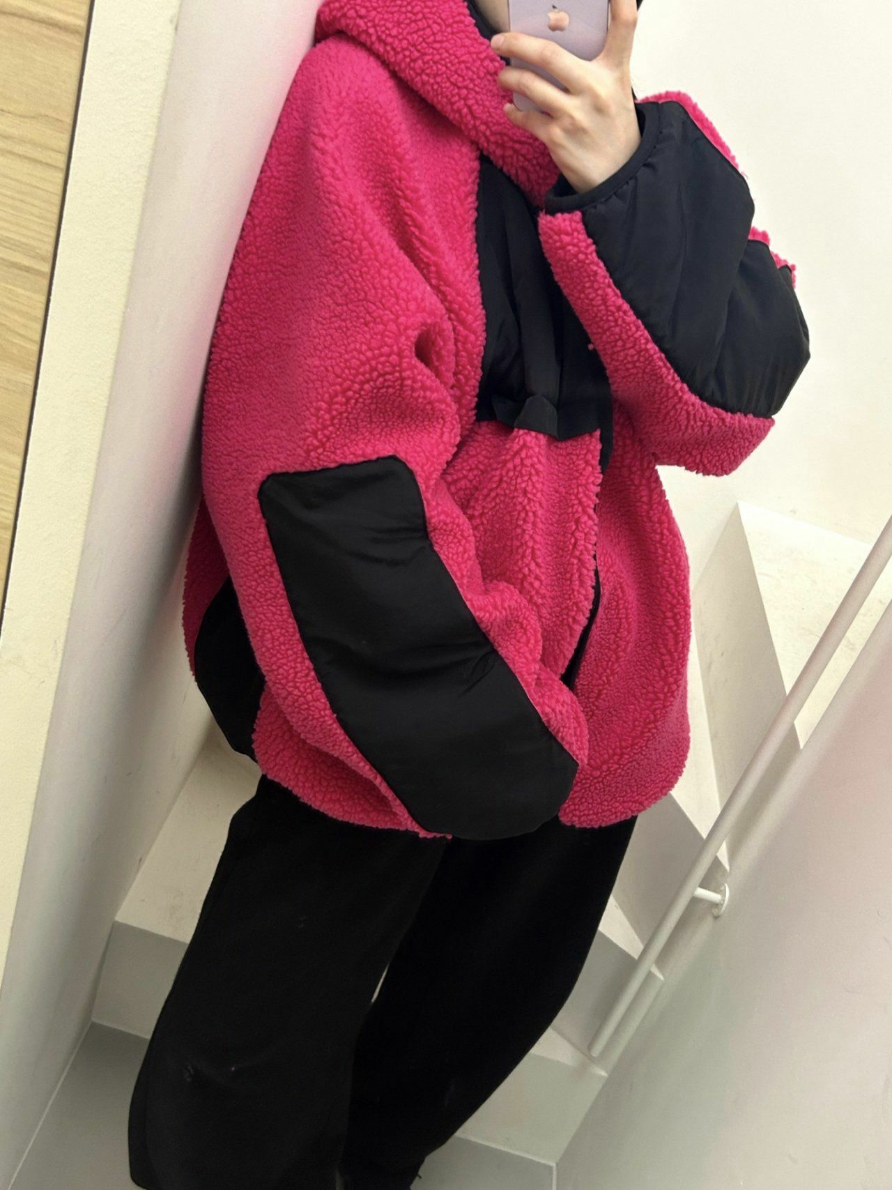 拼色絨毛連帽拉鍊外套 Hestory-032JK