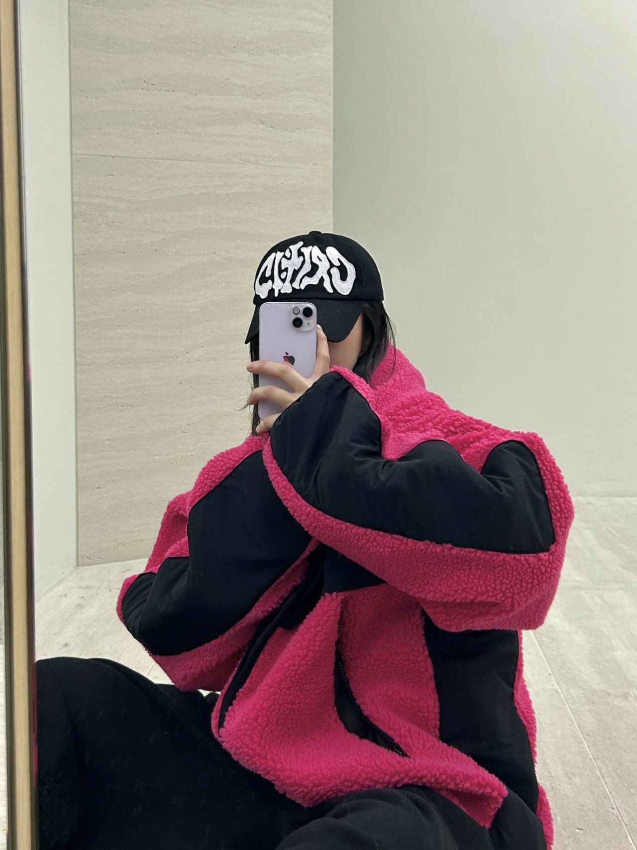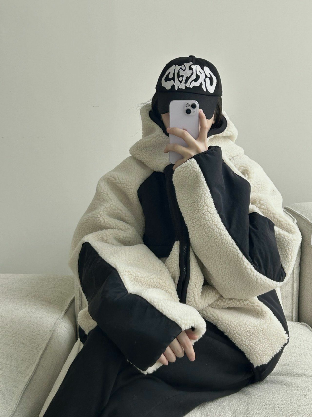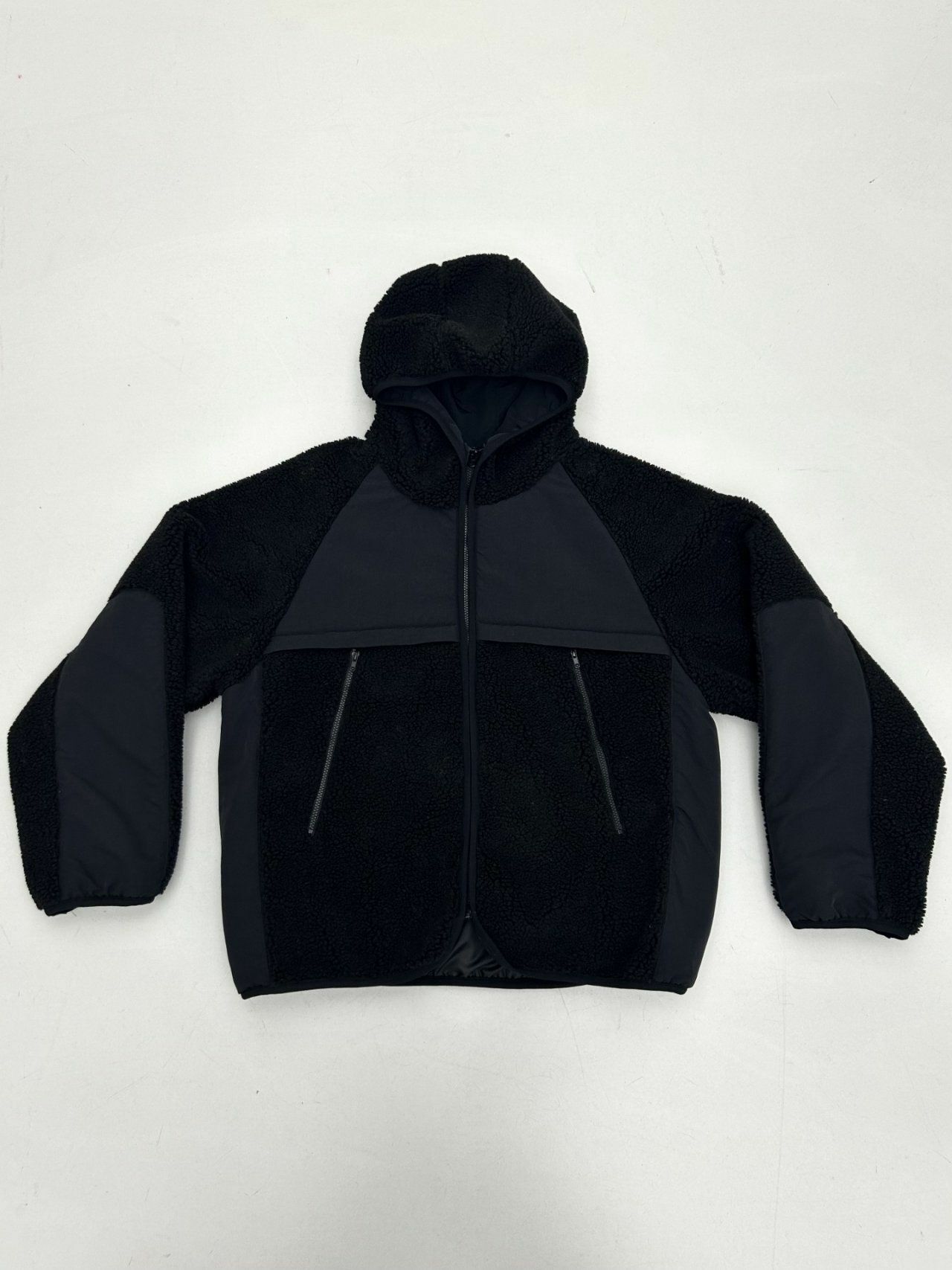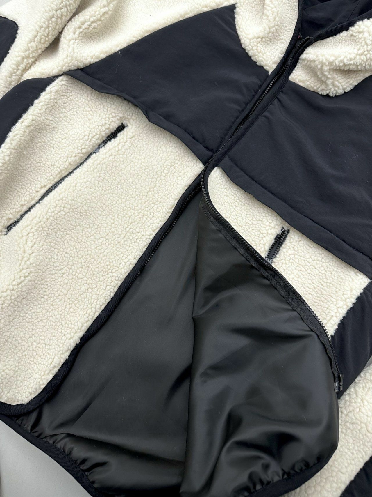 拼色絨毛連帽拉鍊外套 Hestory-032JK