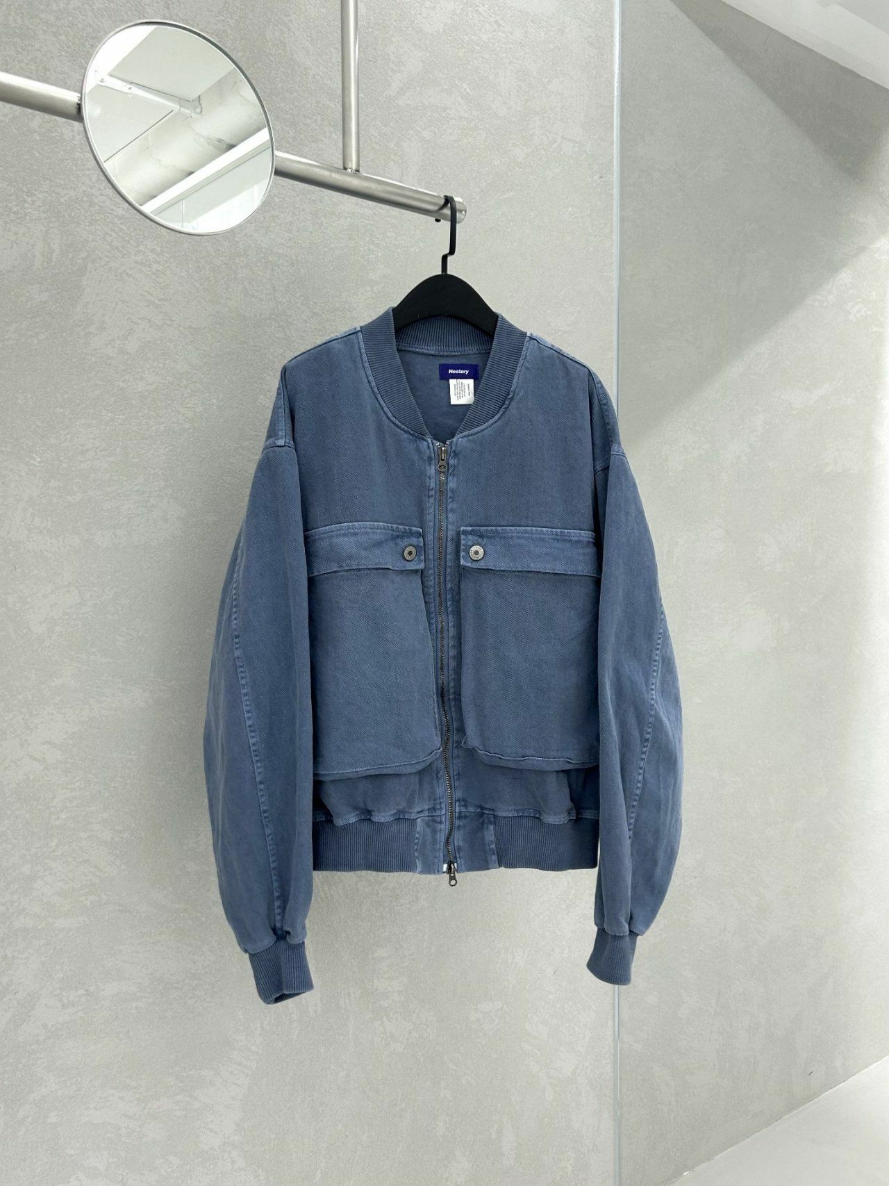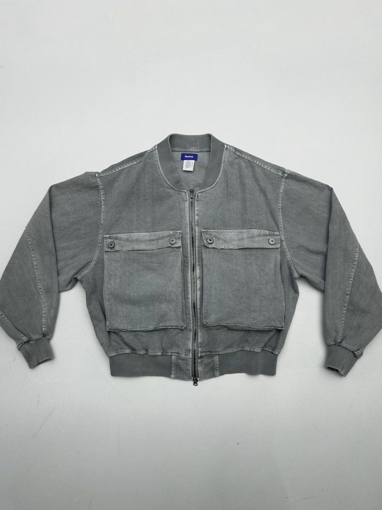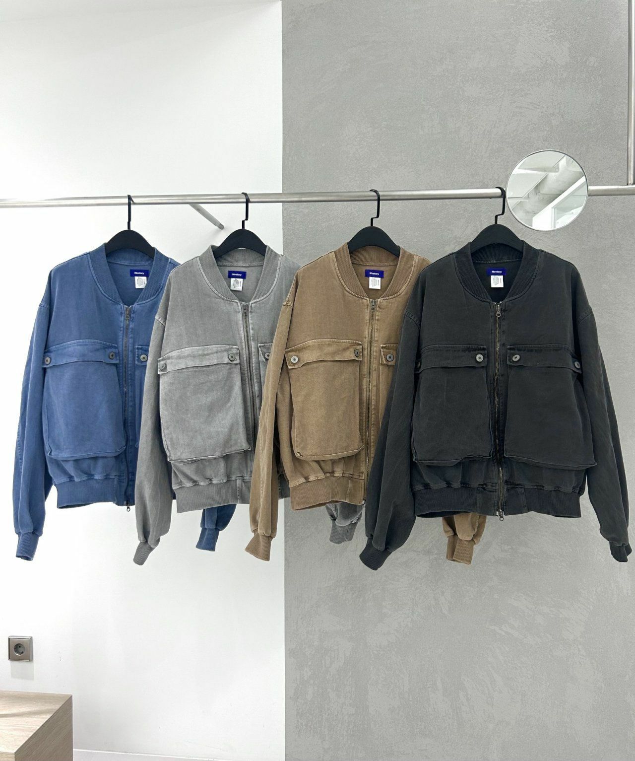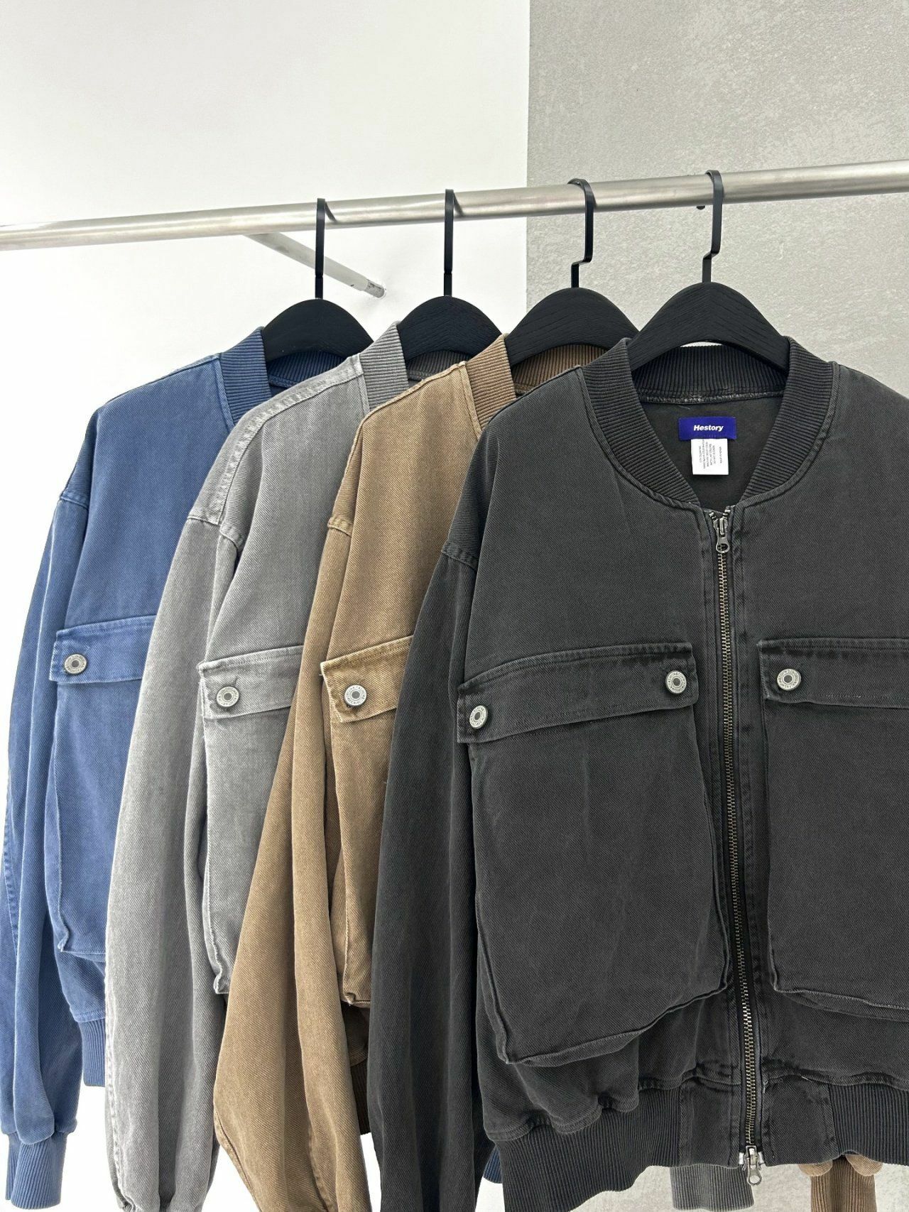 洗水淨色雙大袋拉鍊外套 Hestory-037JK
