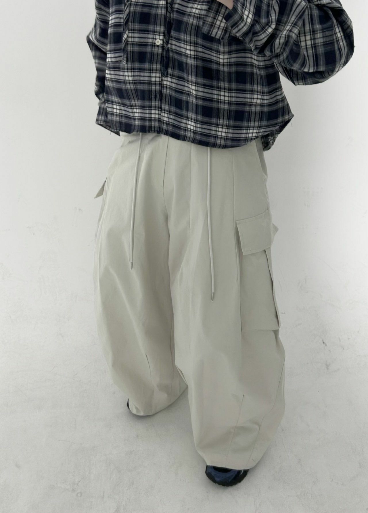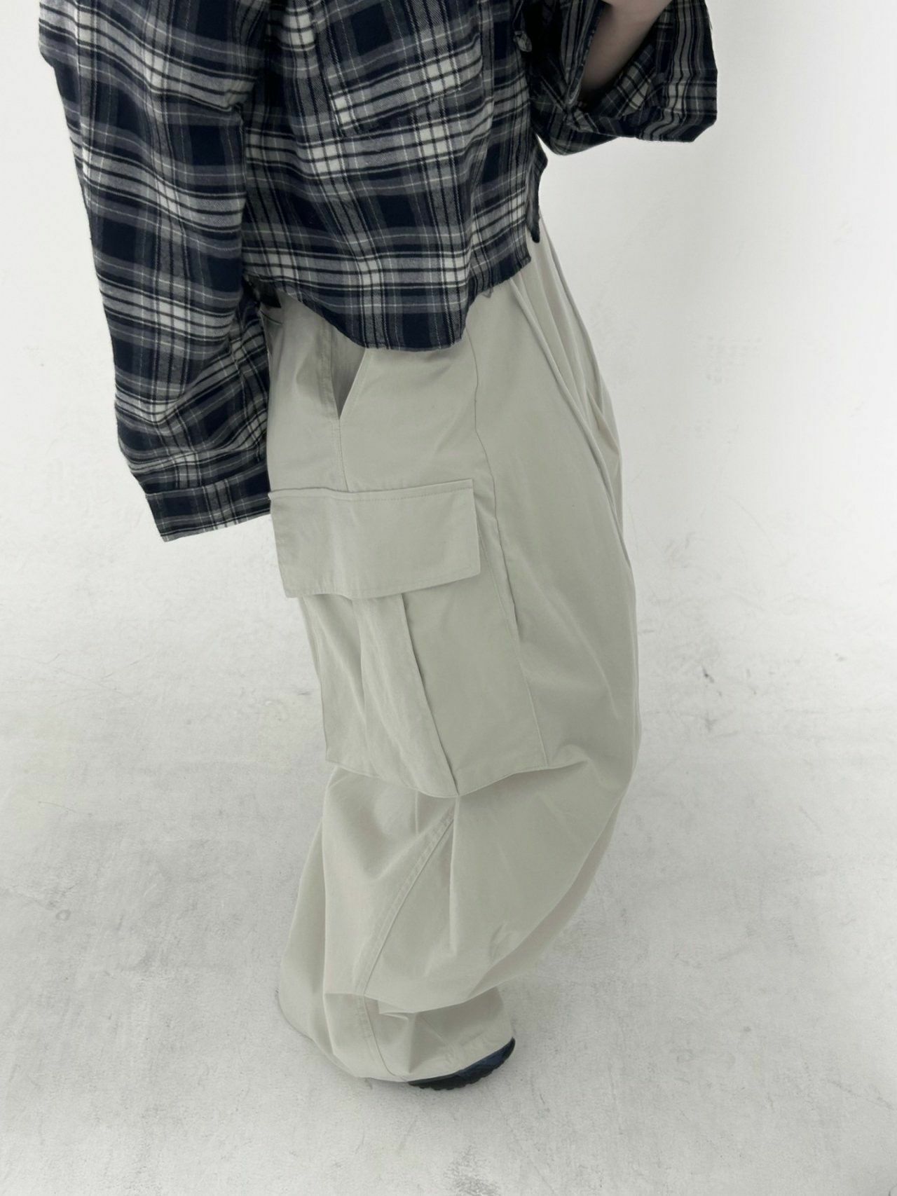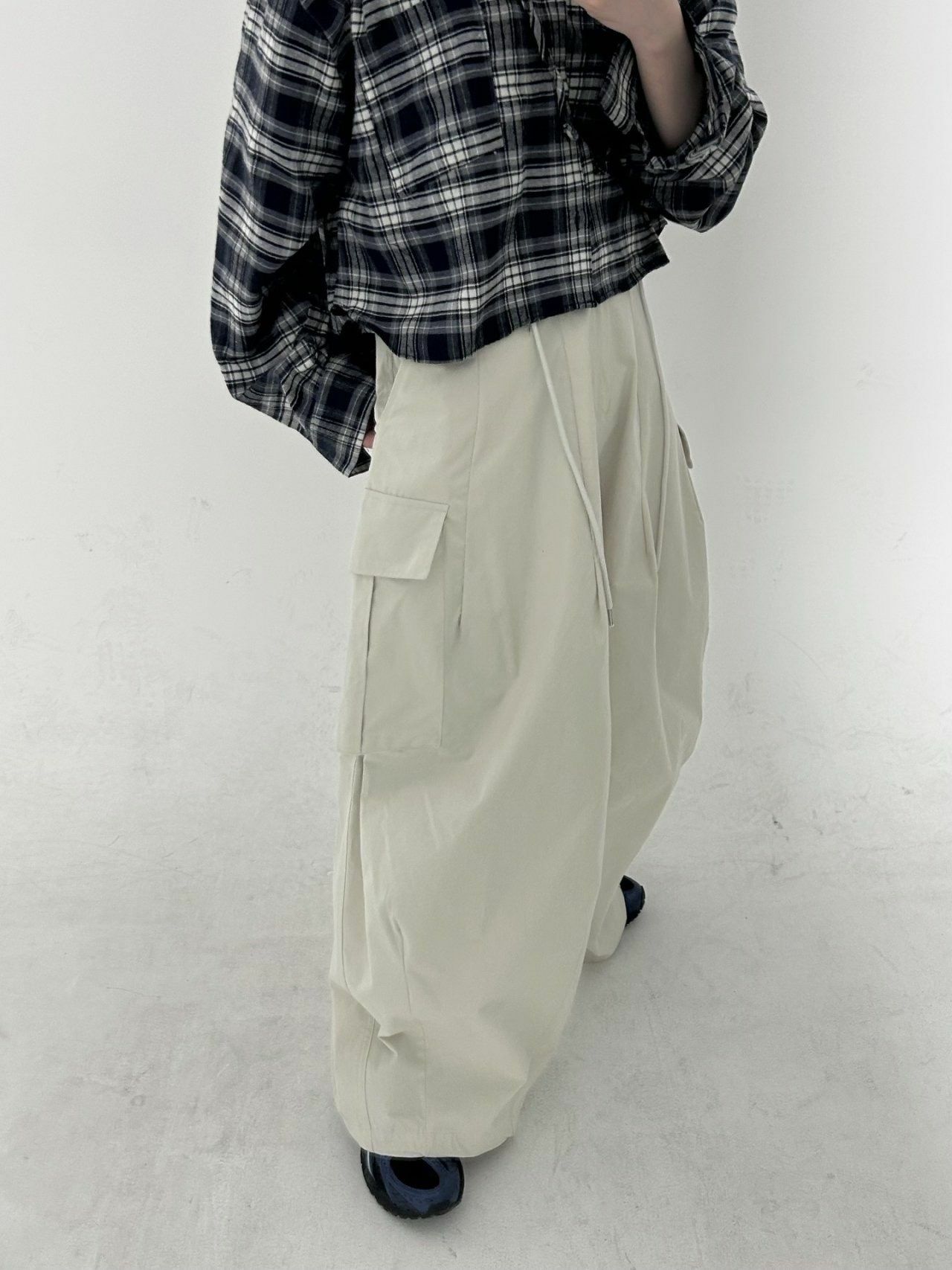 淨色可束腳工裝鬆身褲 Hestory-064P