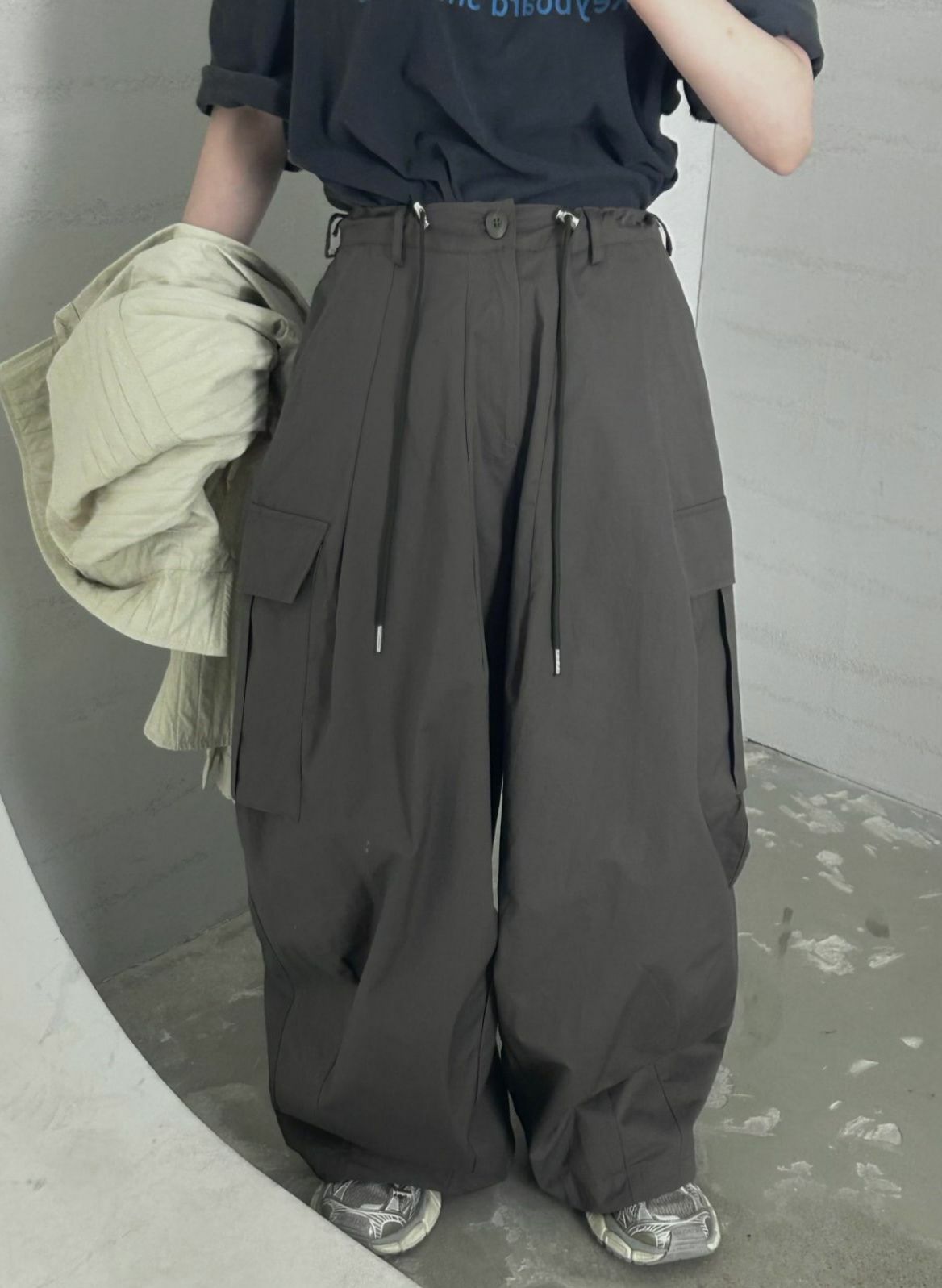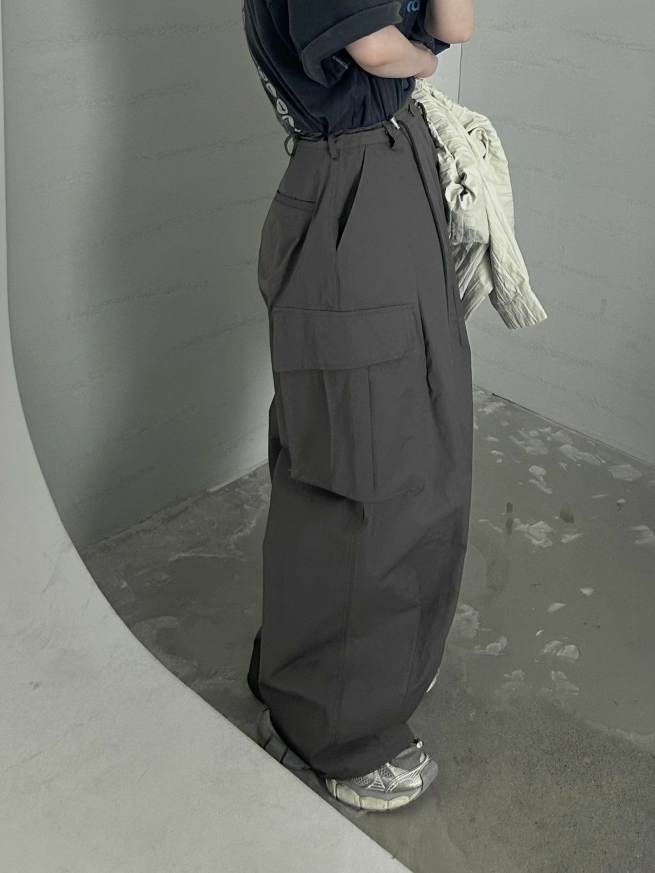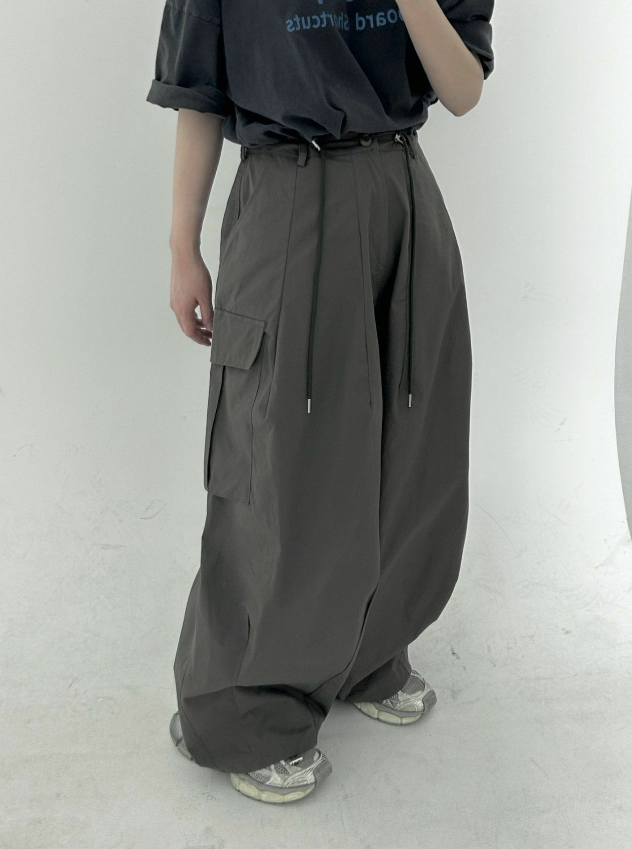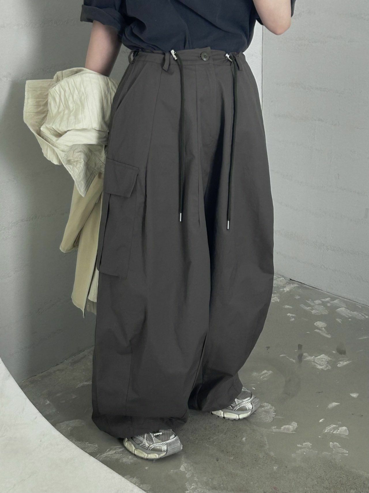 淨色可束腳工裝鬆身褲 Hestory-064P