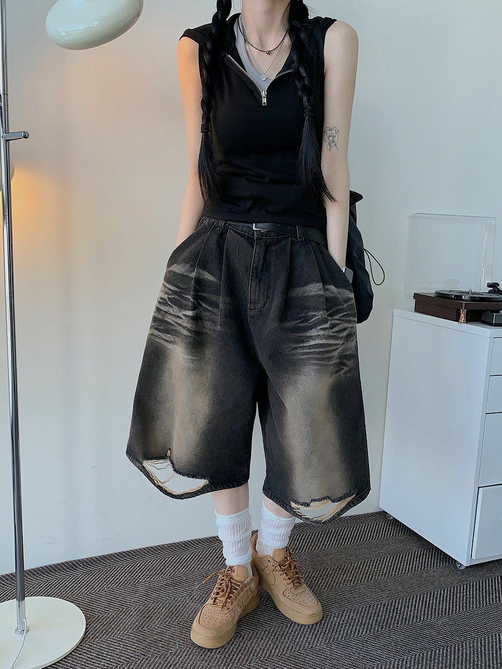 洗水破洞牛仔短褲 Hestory-067P