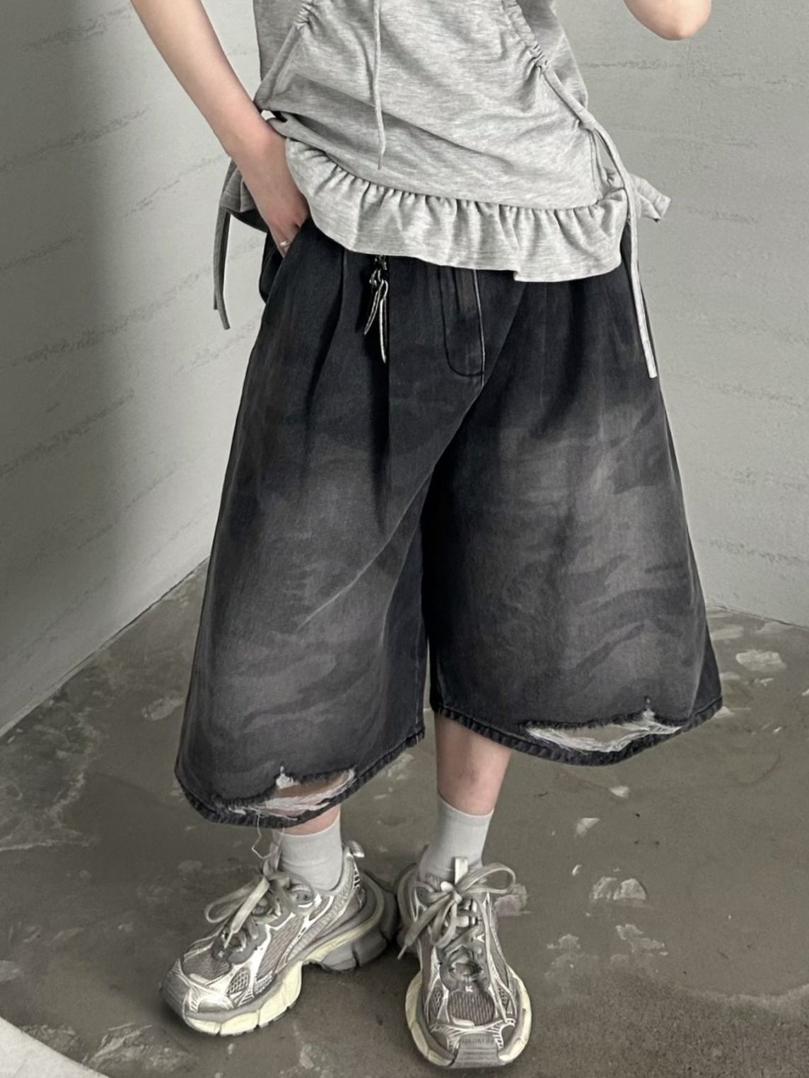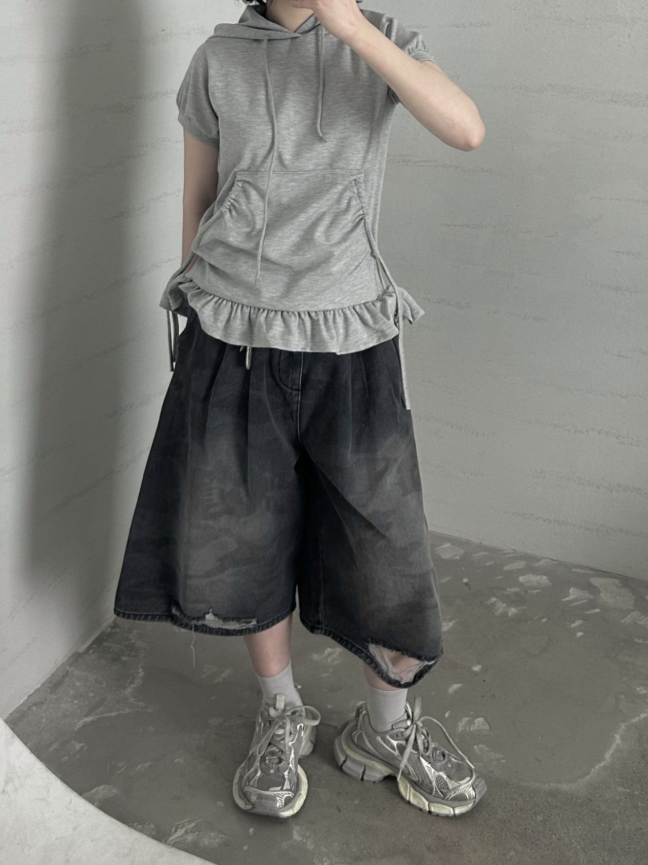 洗水迷彩牛仔短褲 Hestory-075P