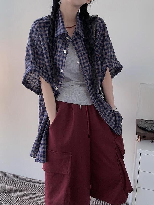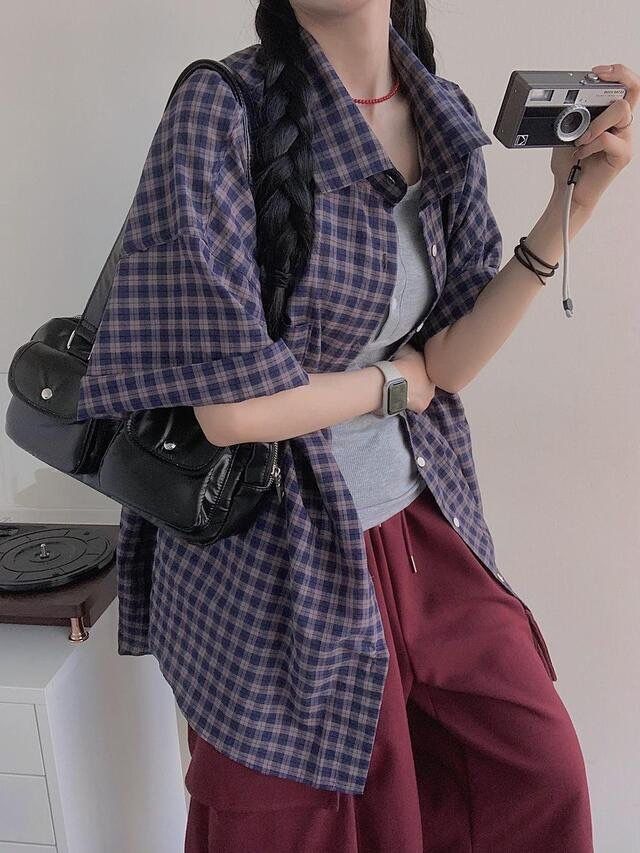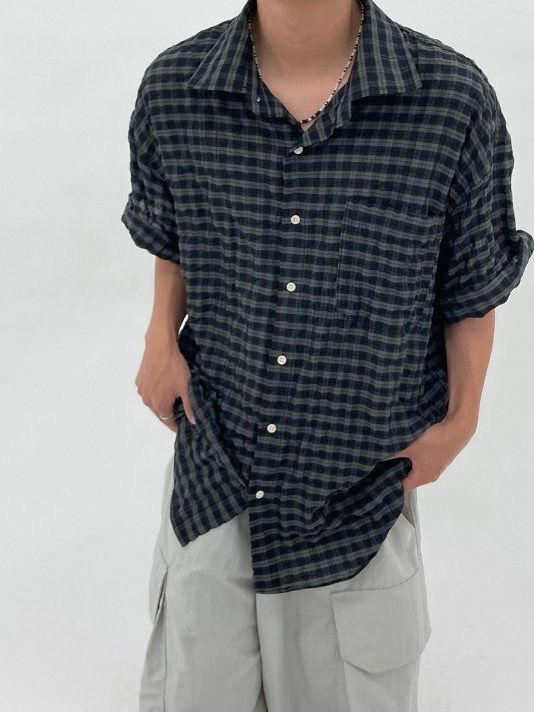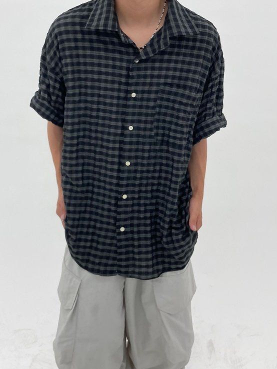 格仔短袖恤衫 Hestory-079S