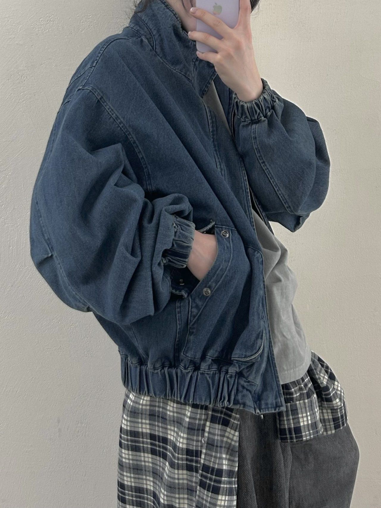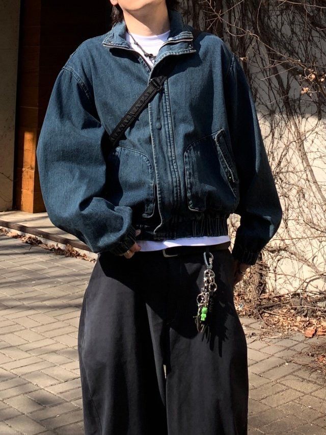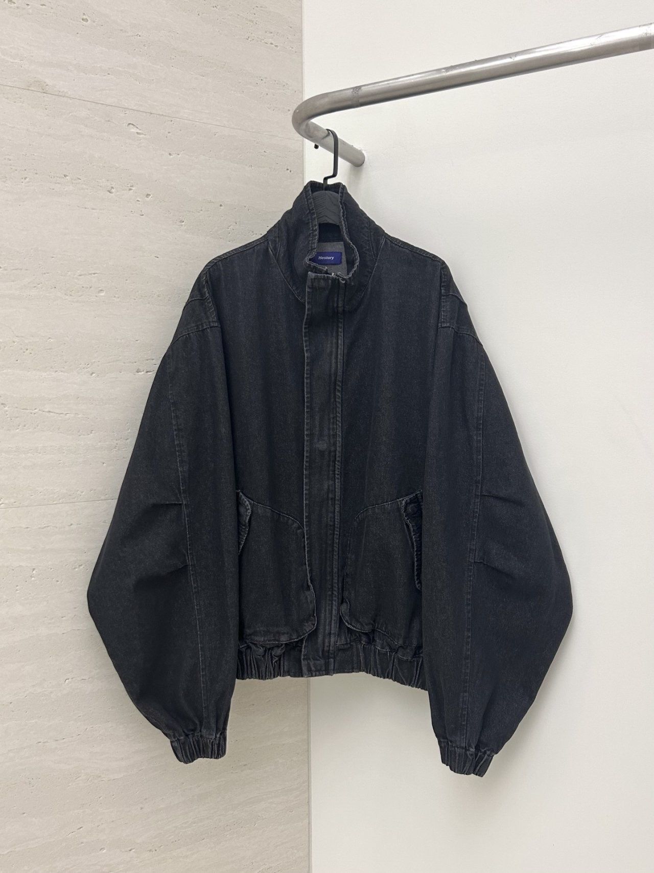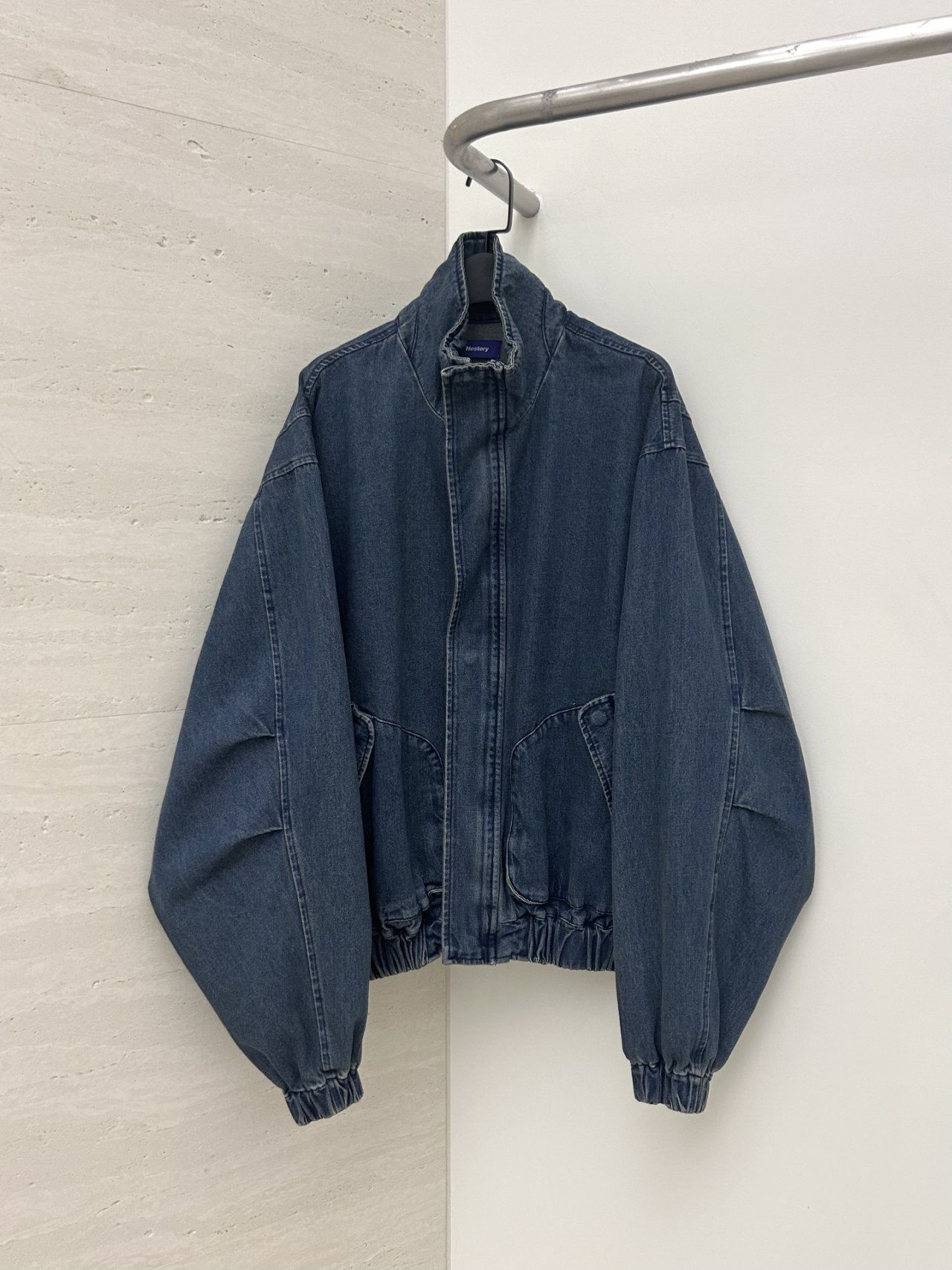 淨色企領拉鍊牛仔外套 Hestory-095JK