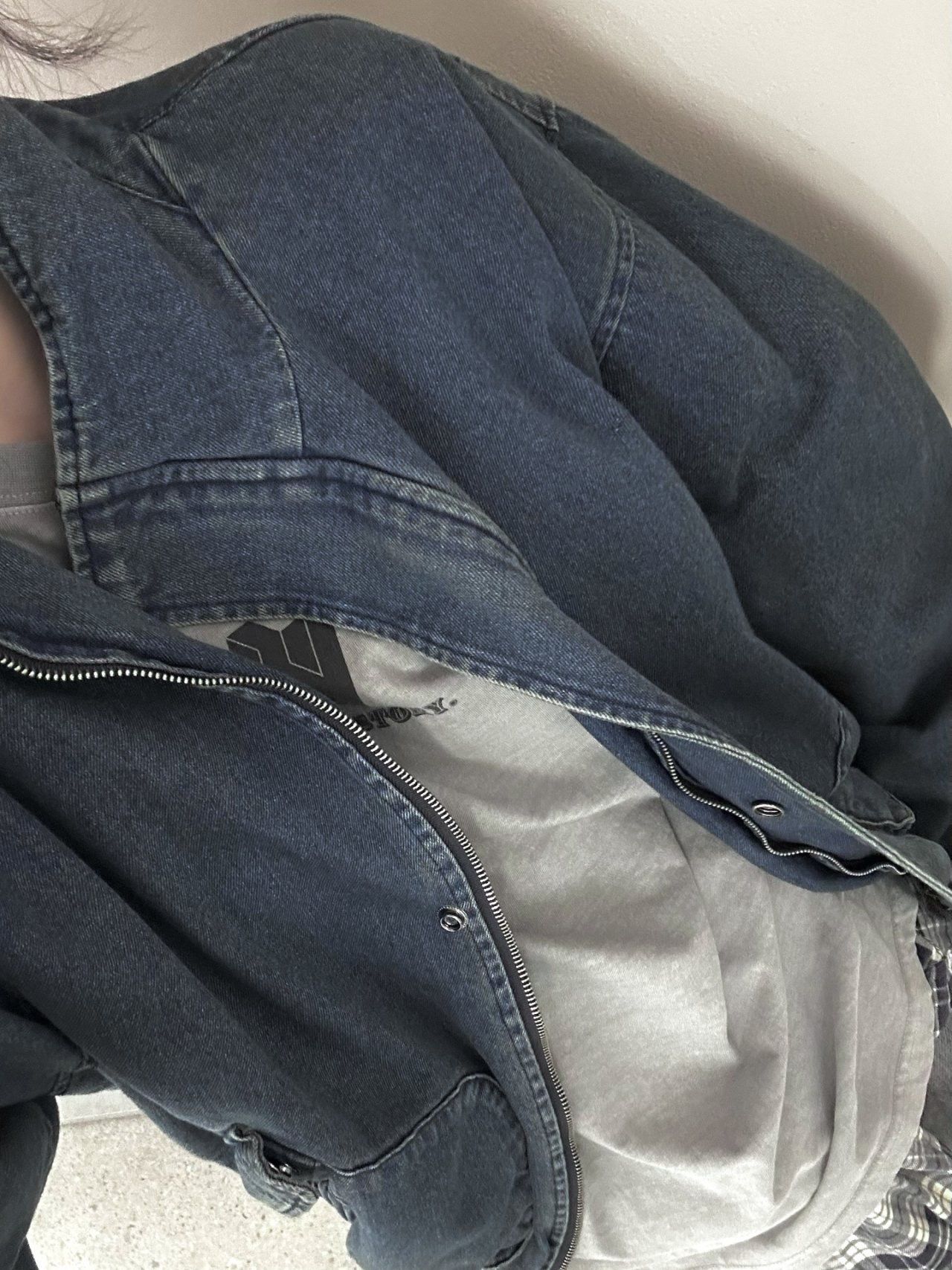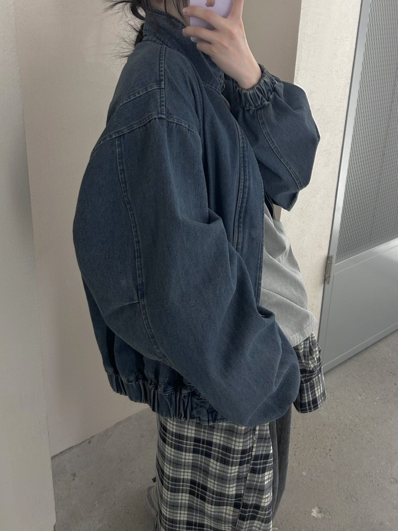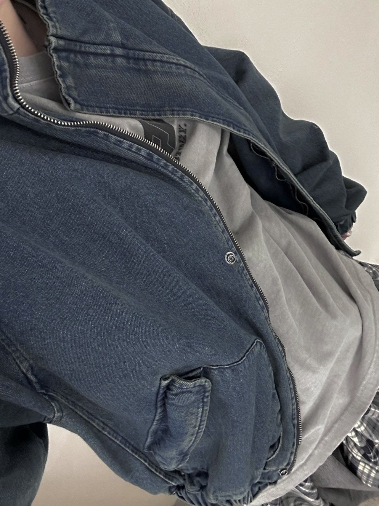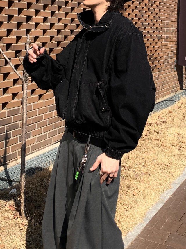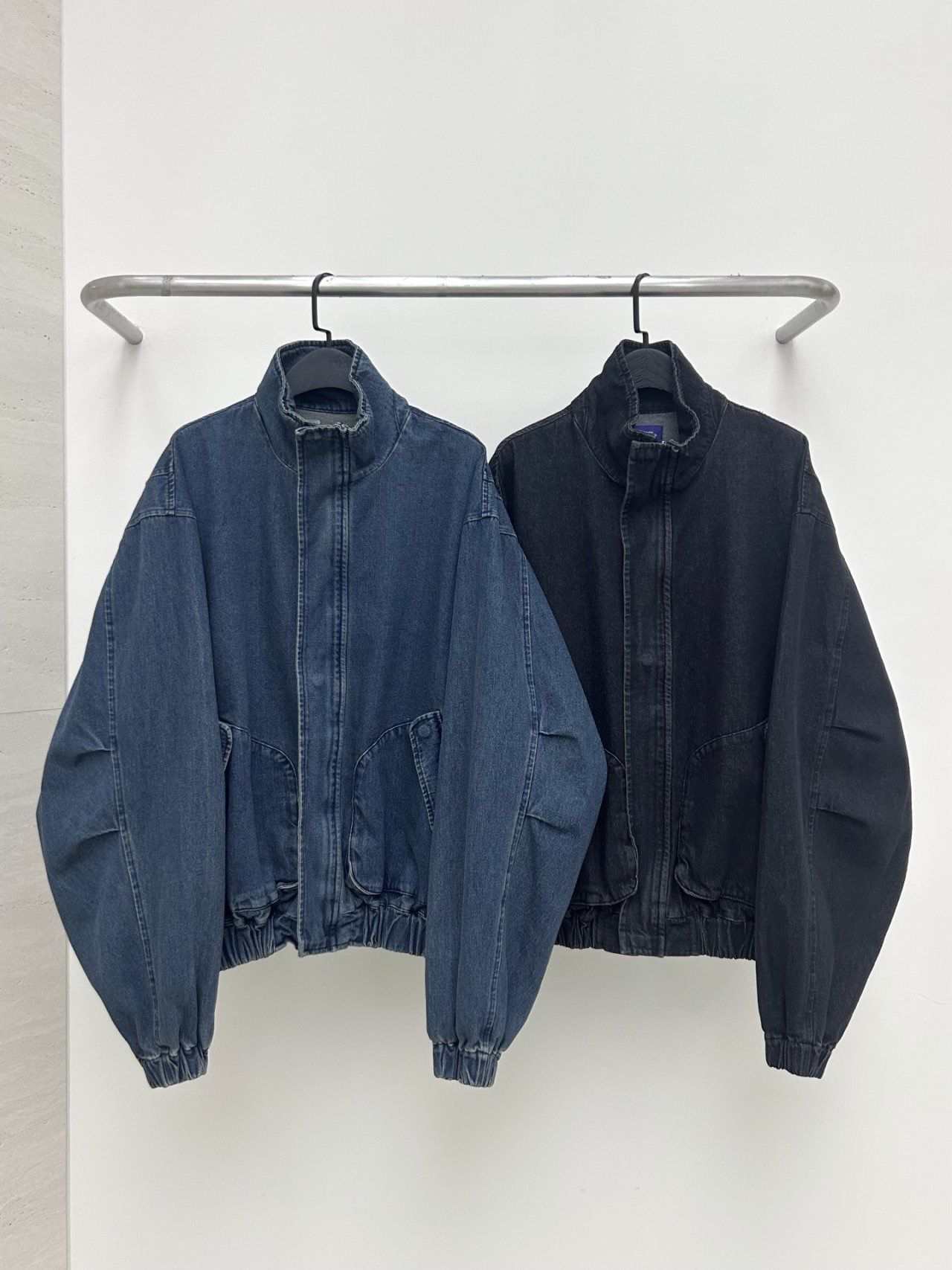 淨色企領拉鍊牛仔外套 Hestory-095JK