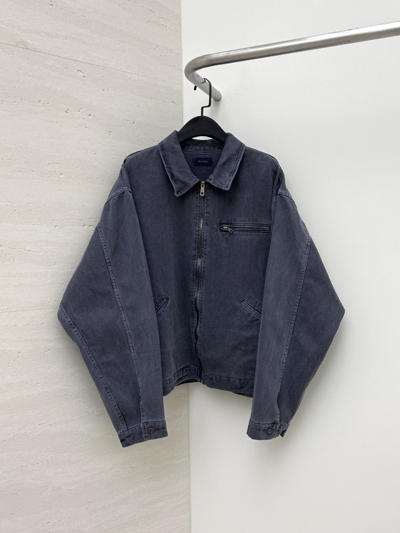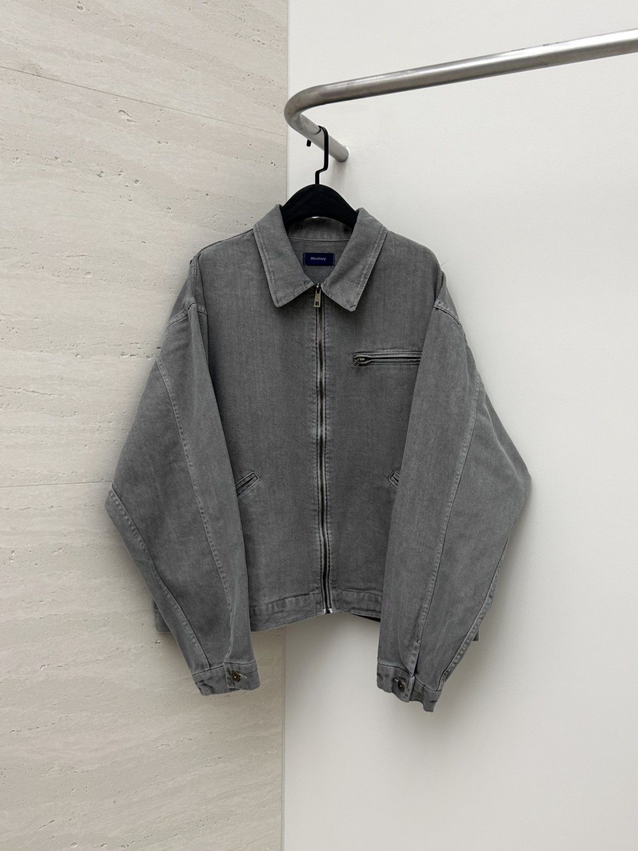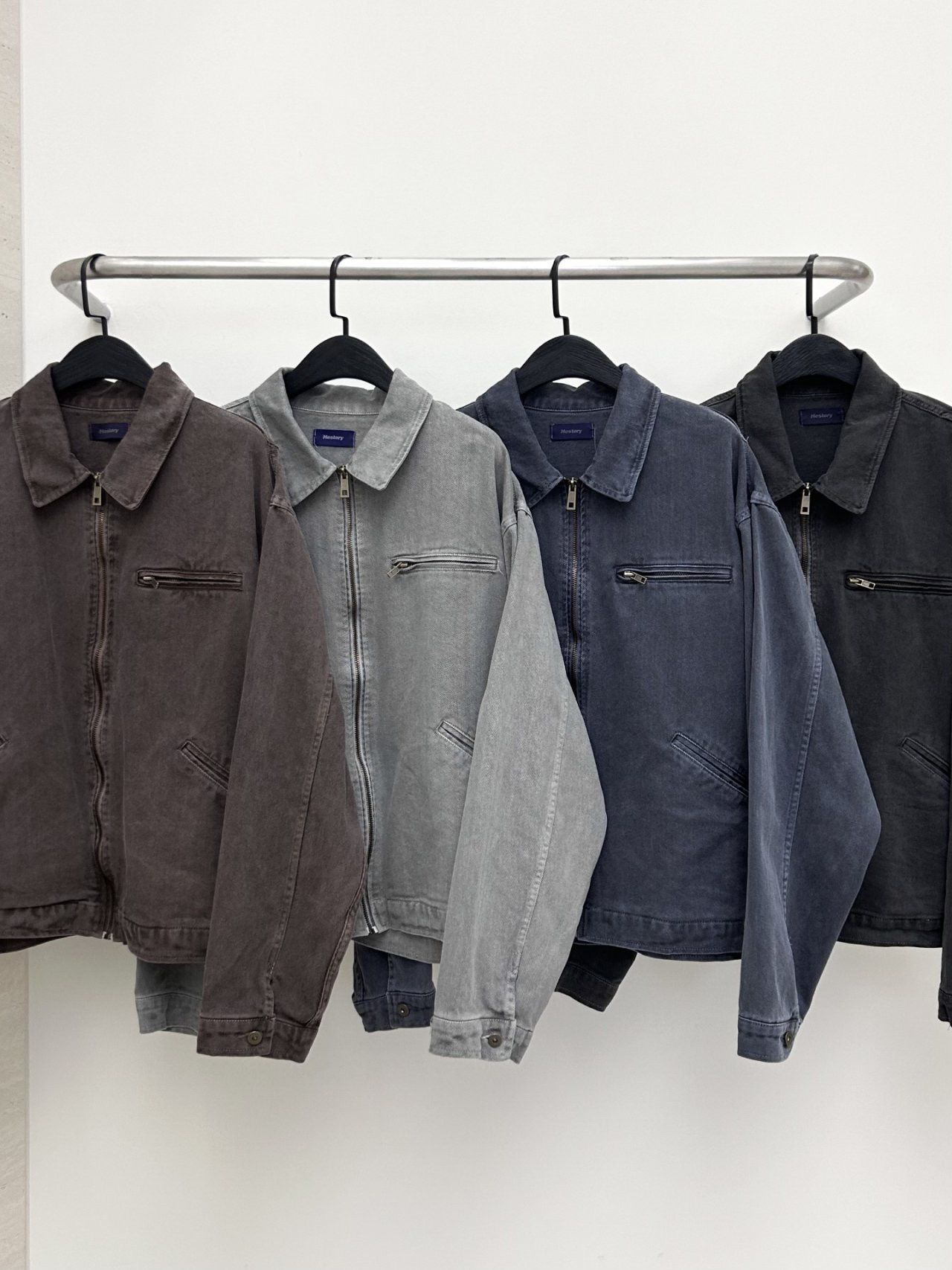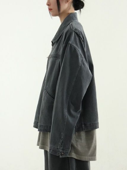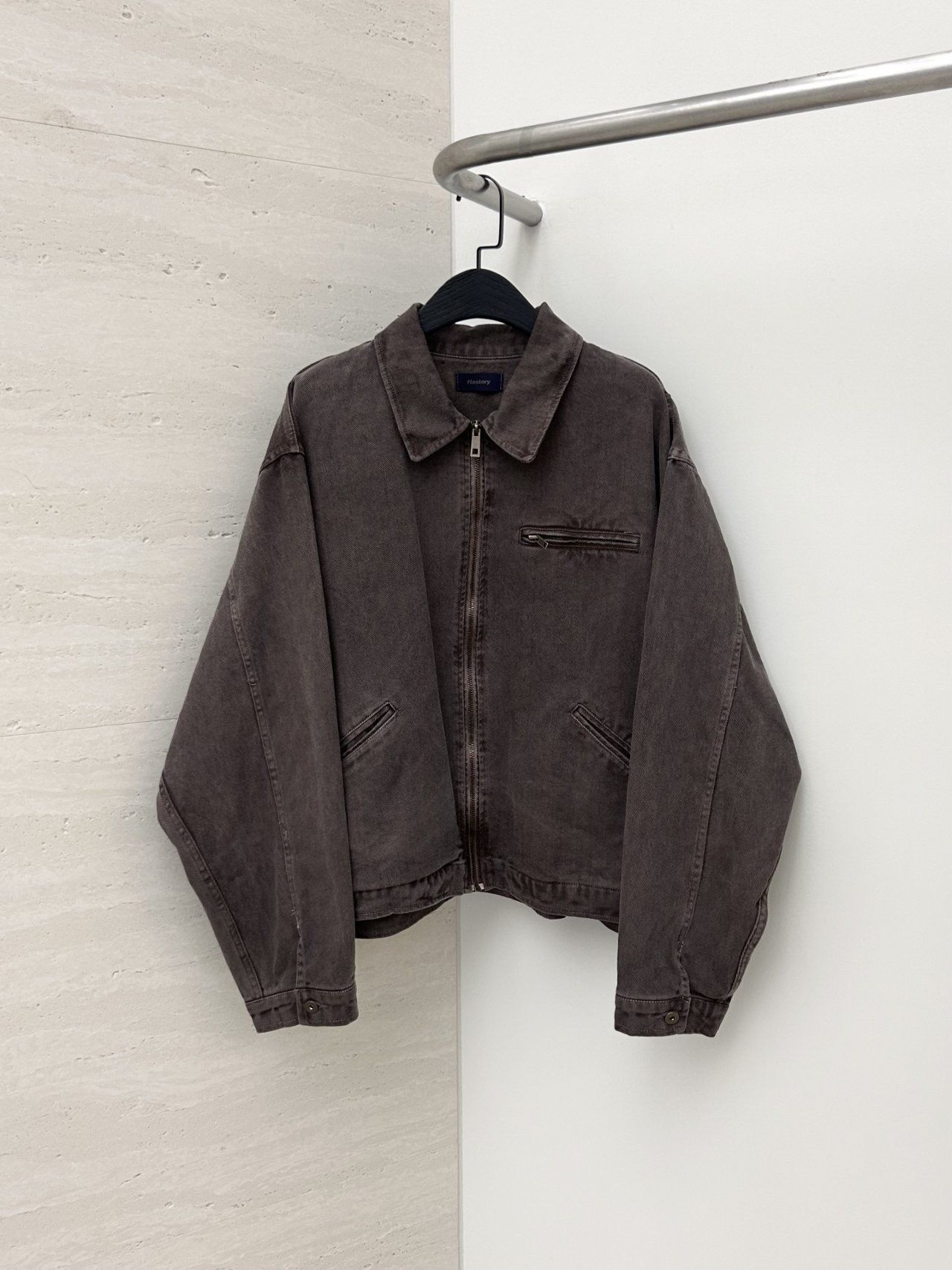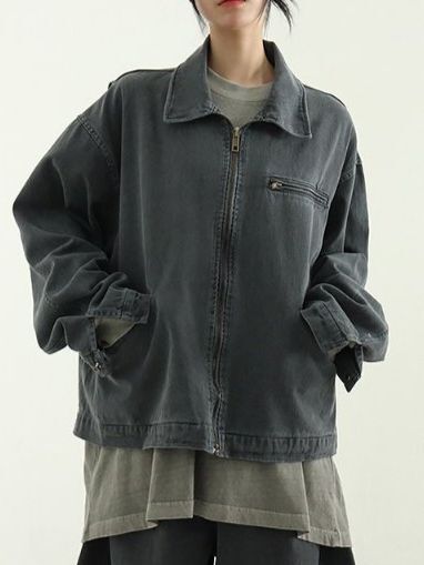 洗水淨色反領拉鍊外套 Hestory-096JK
