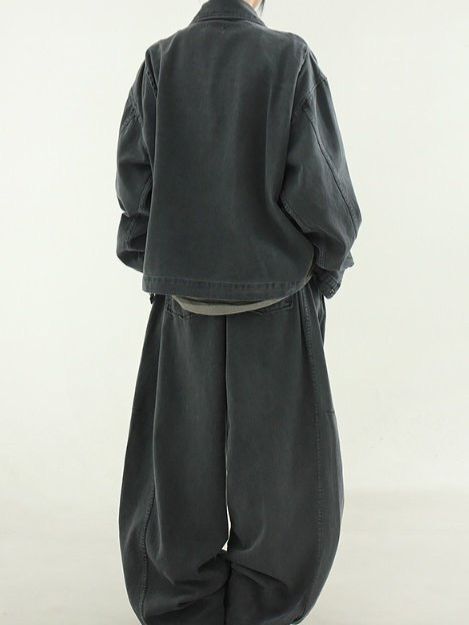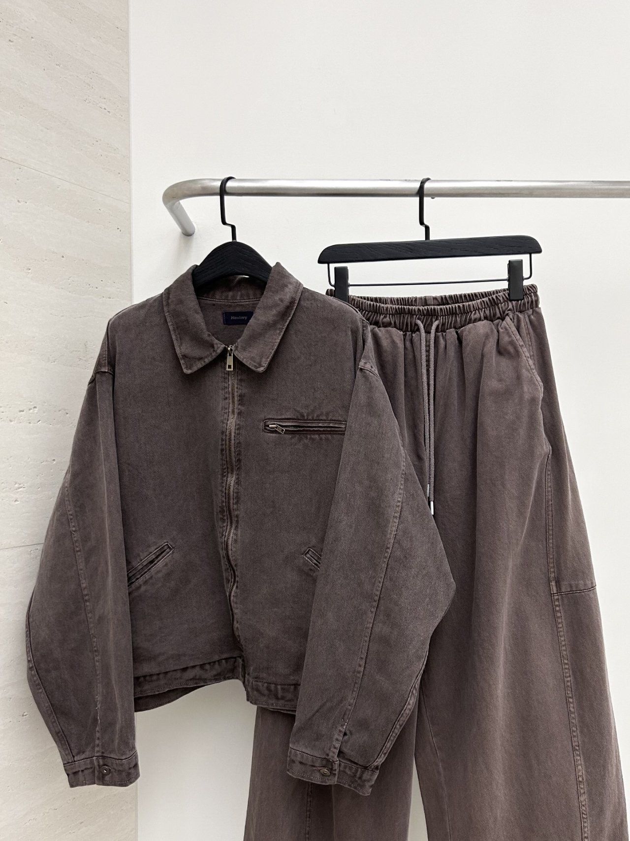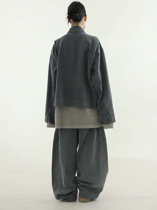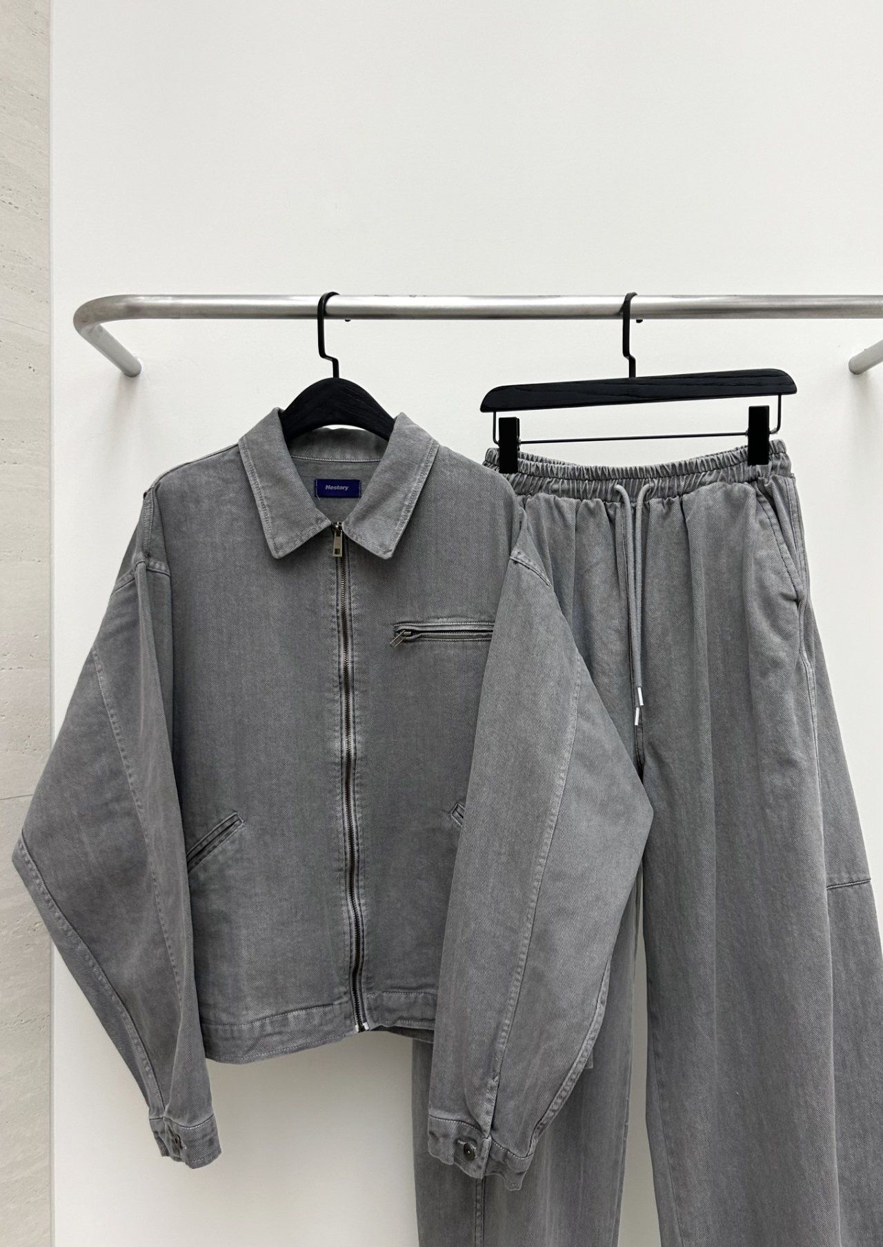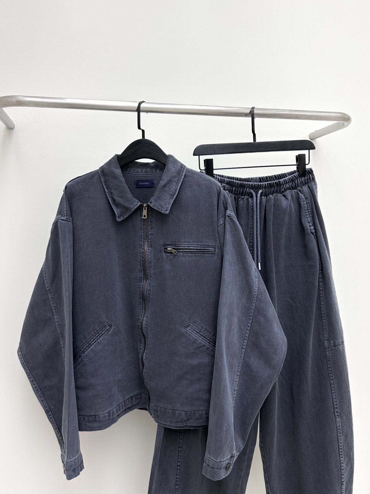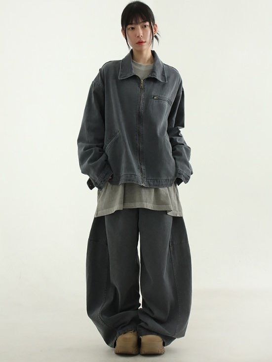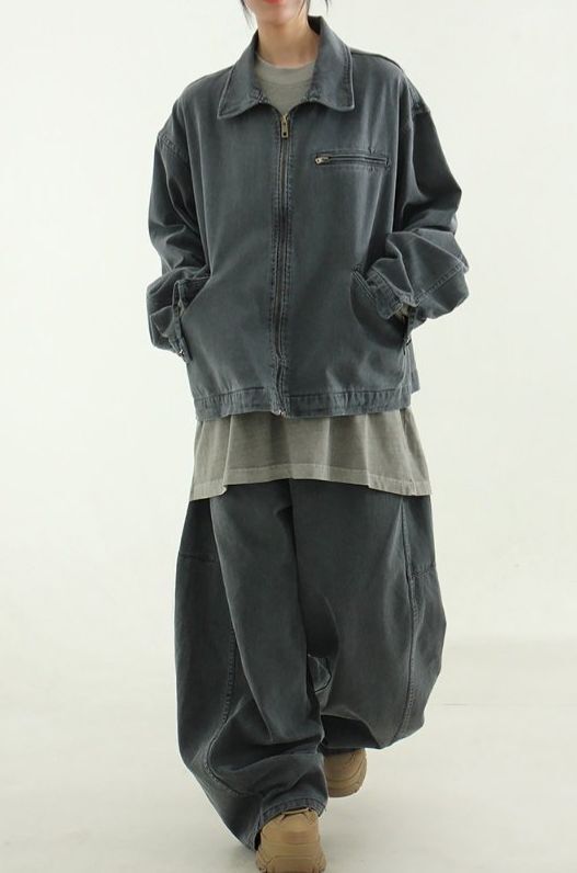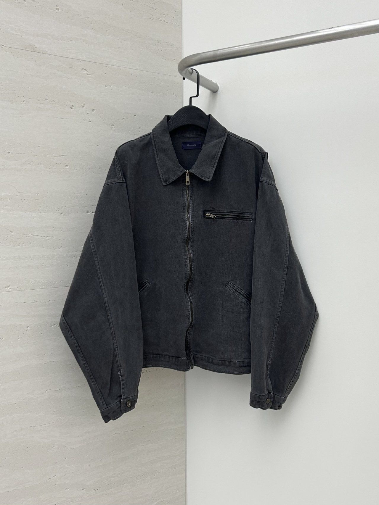 洗水淨色反領拉鍊外套 Hestory-096JK