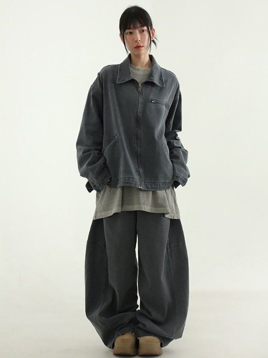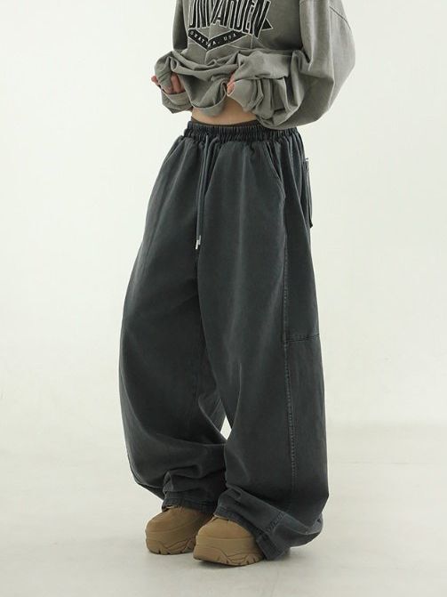 洗水洗水淨色鬆身褲 Hestory-097P